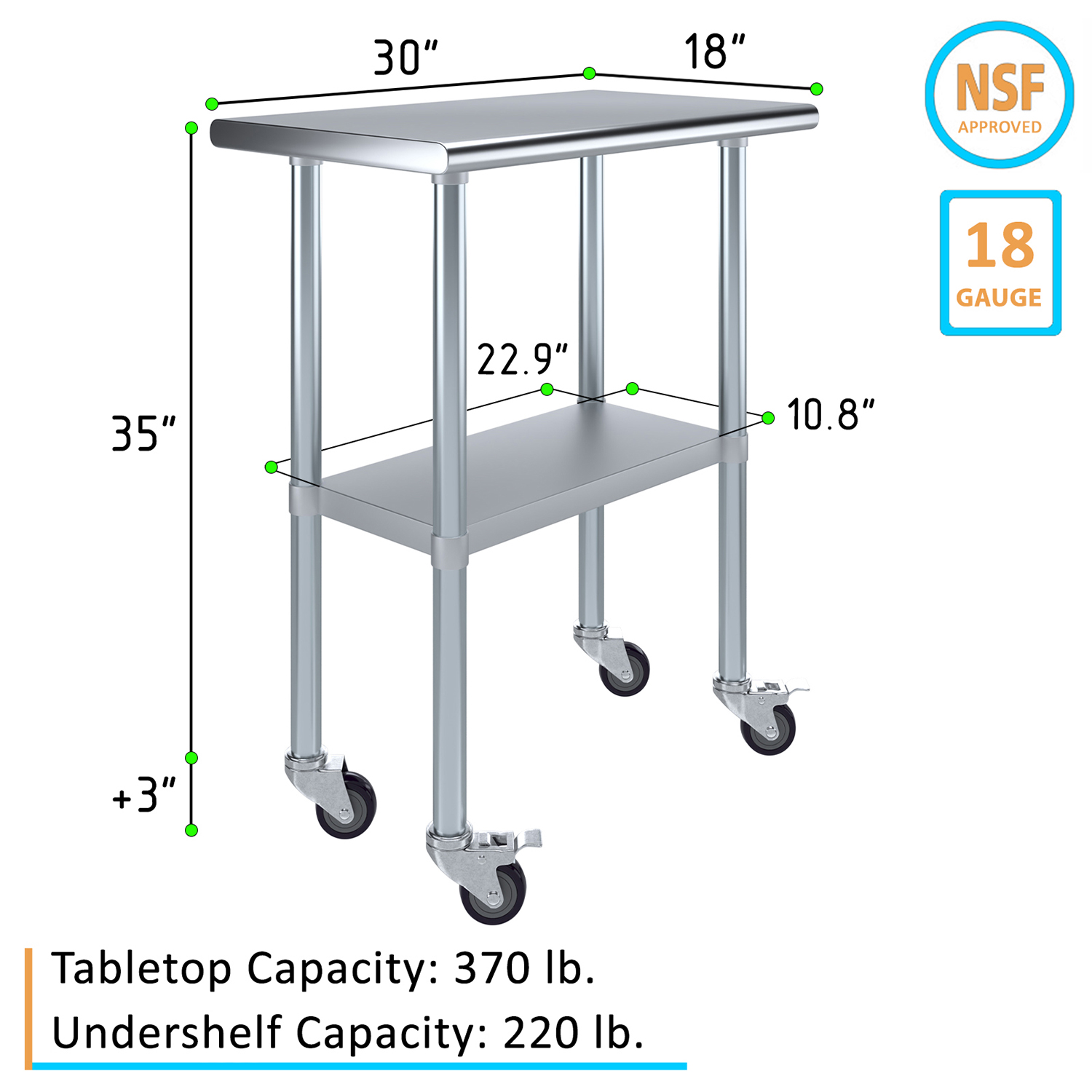 18″ X 30″ Stainless Steel Work Table With Undershelf & Wheels
