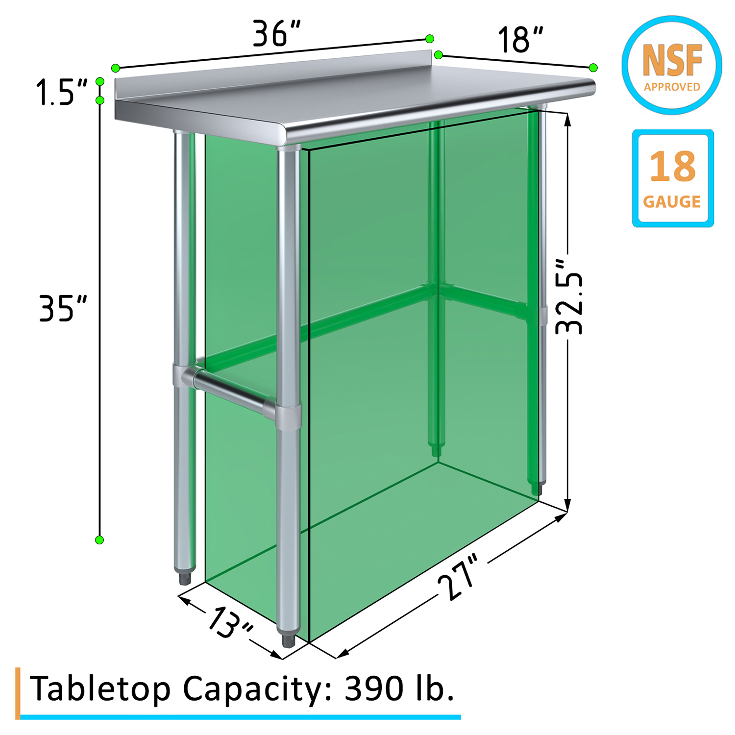 18″ X 36″ Stainless Steel Work Table Open Base with 1.5″ Backsplash