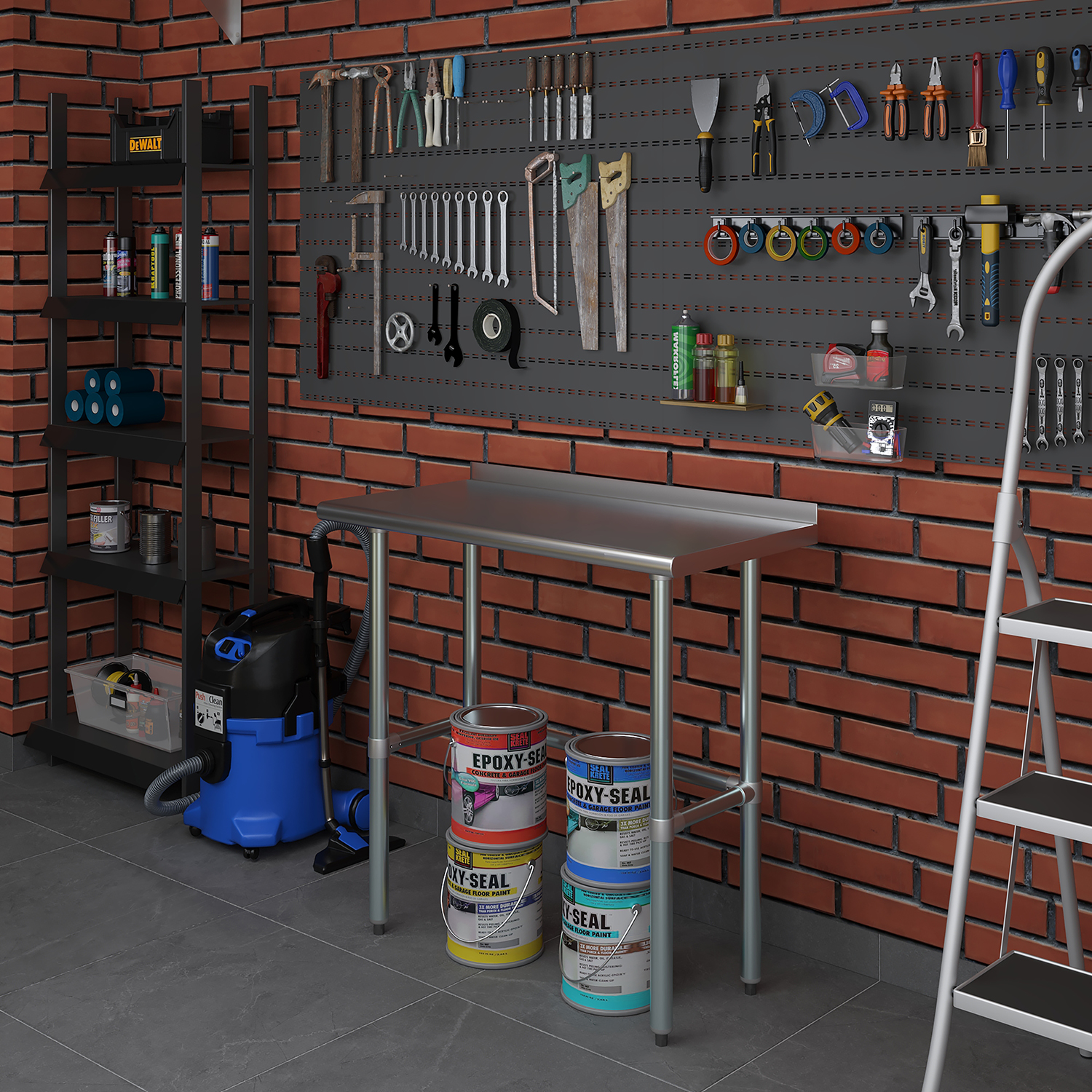 Measuring 18 inches by 36 inches, this work table provides an extended workspace that accommodates a variety of tasks. The generous length offers ample space for food preparation, assembly work, experiments, and other detailed projects. Despite its extensive size, the table maintains a compact design that fits well into different settings without occupying excessive space.