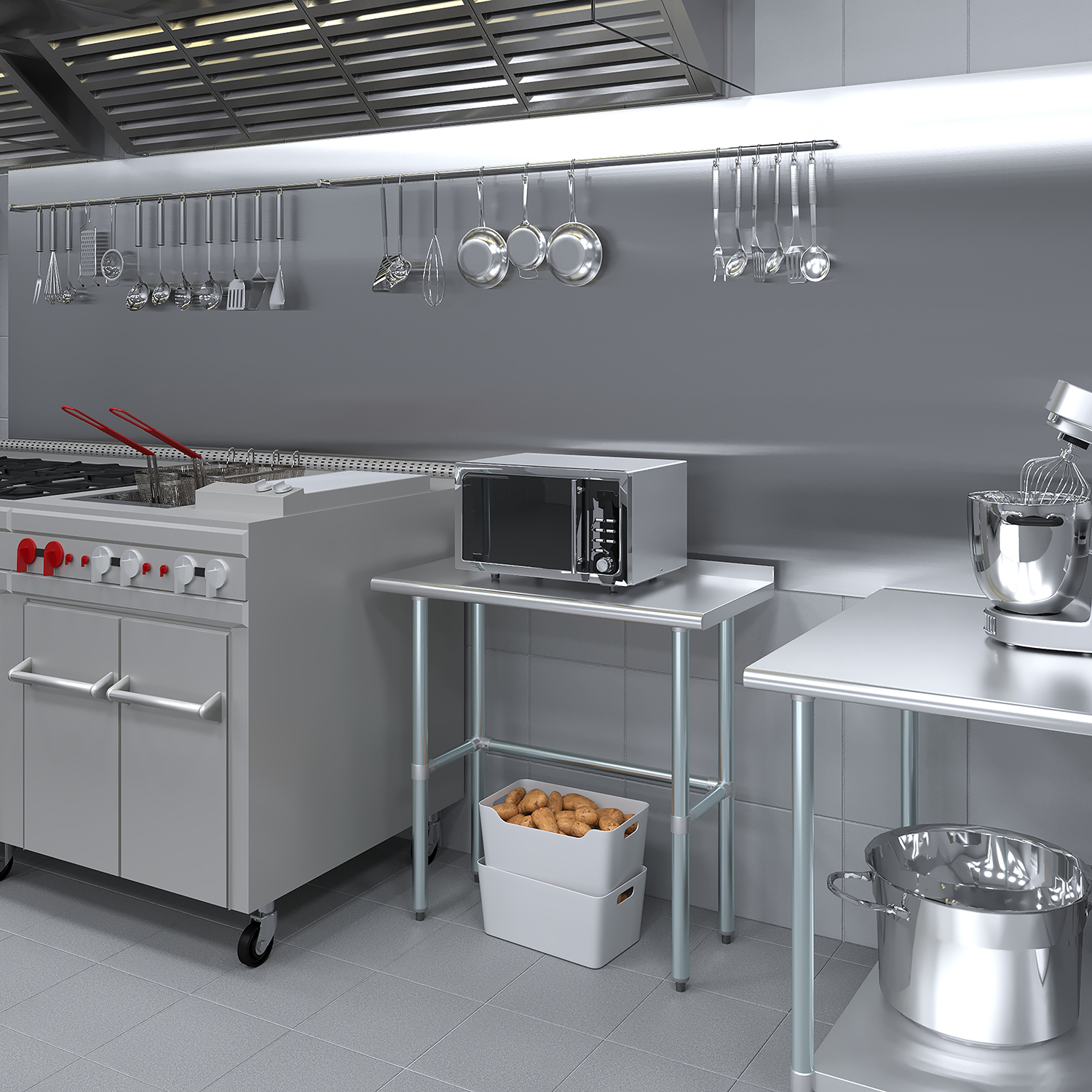 The 1.5″ backsplash is designed to contain spills and splashes, protecting your walls and maintaining a clean and sanitary work area. This feature is especially useful in food preparation settings, where hygiene is paramount. The sleek, smooth surface of the table allows for effortless cleaning, helping you maintain high standards of cleanliness with minimal effort.