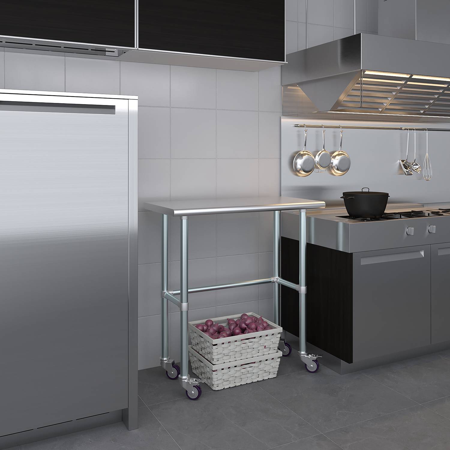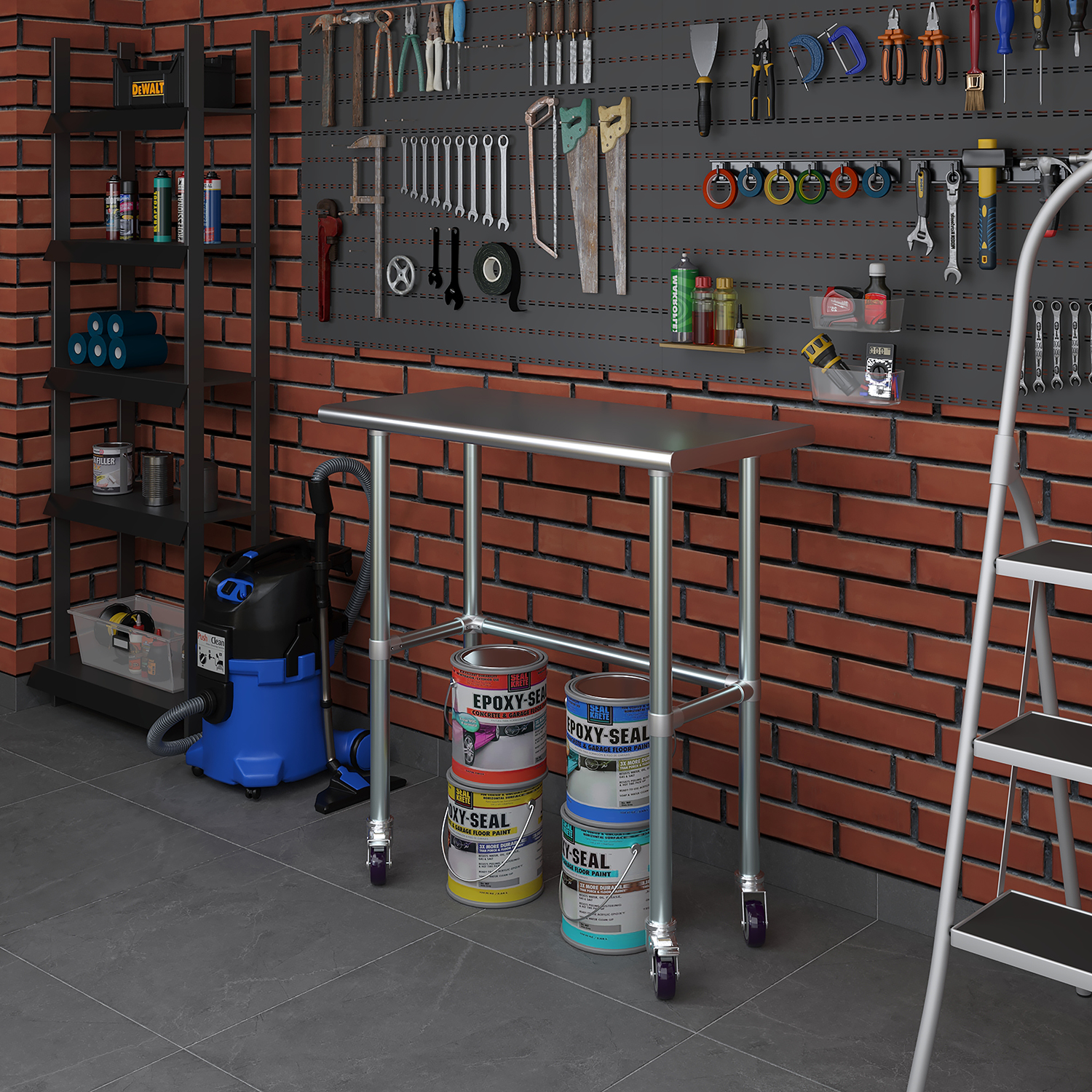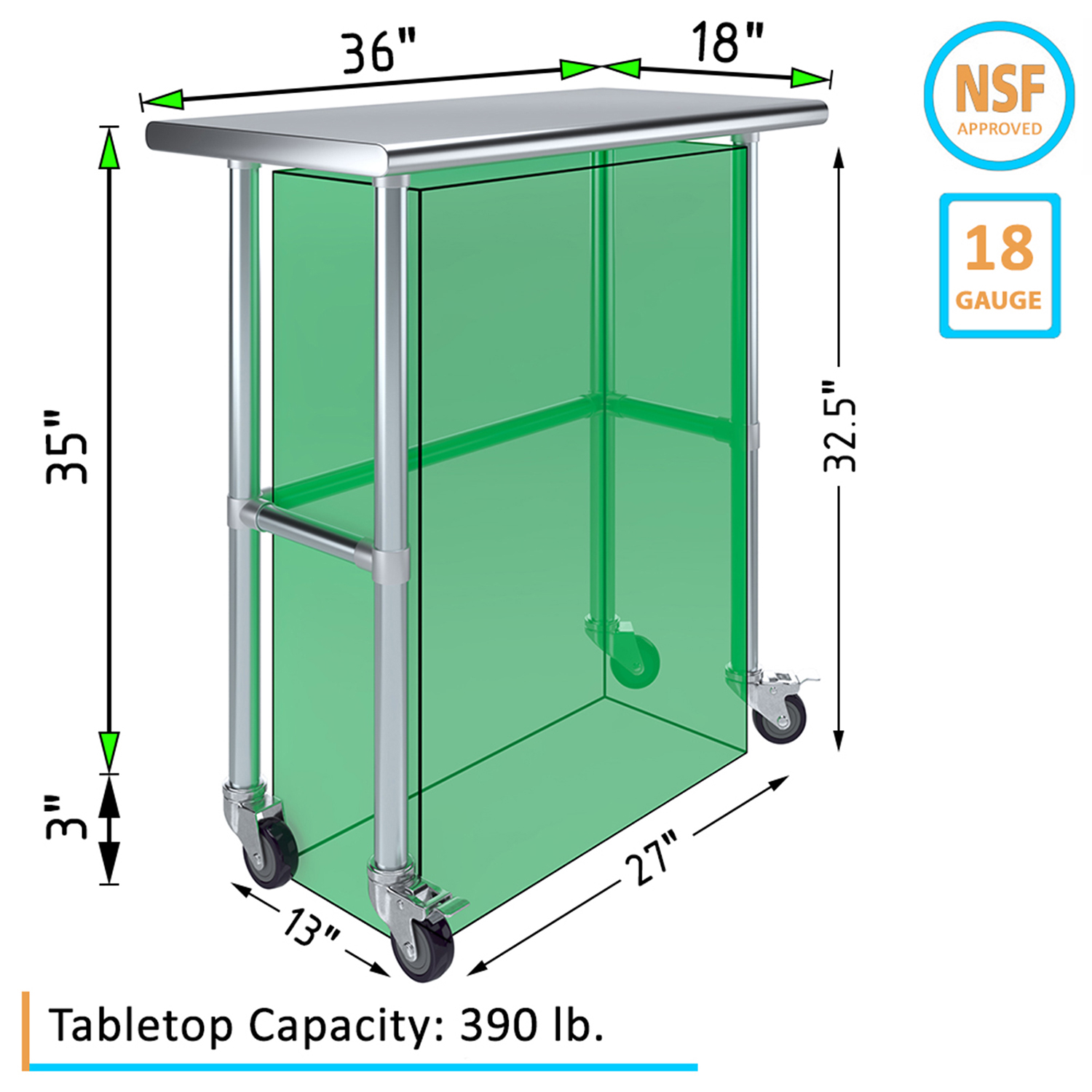 18″ X 36″ Stainless Steel Work Table With Open Base & Wheels