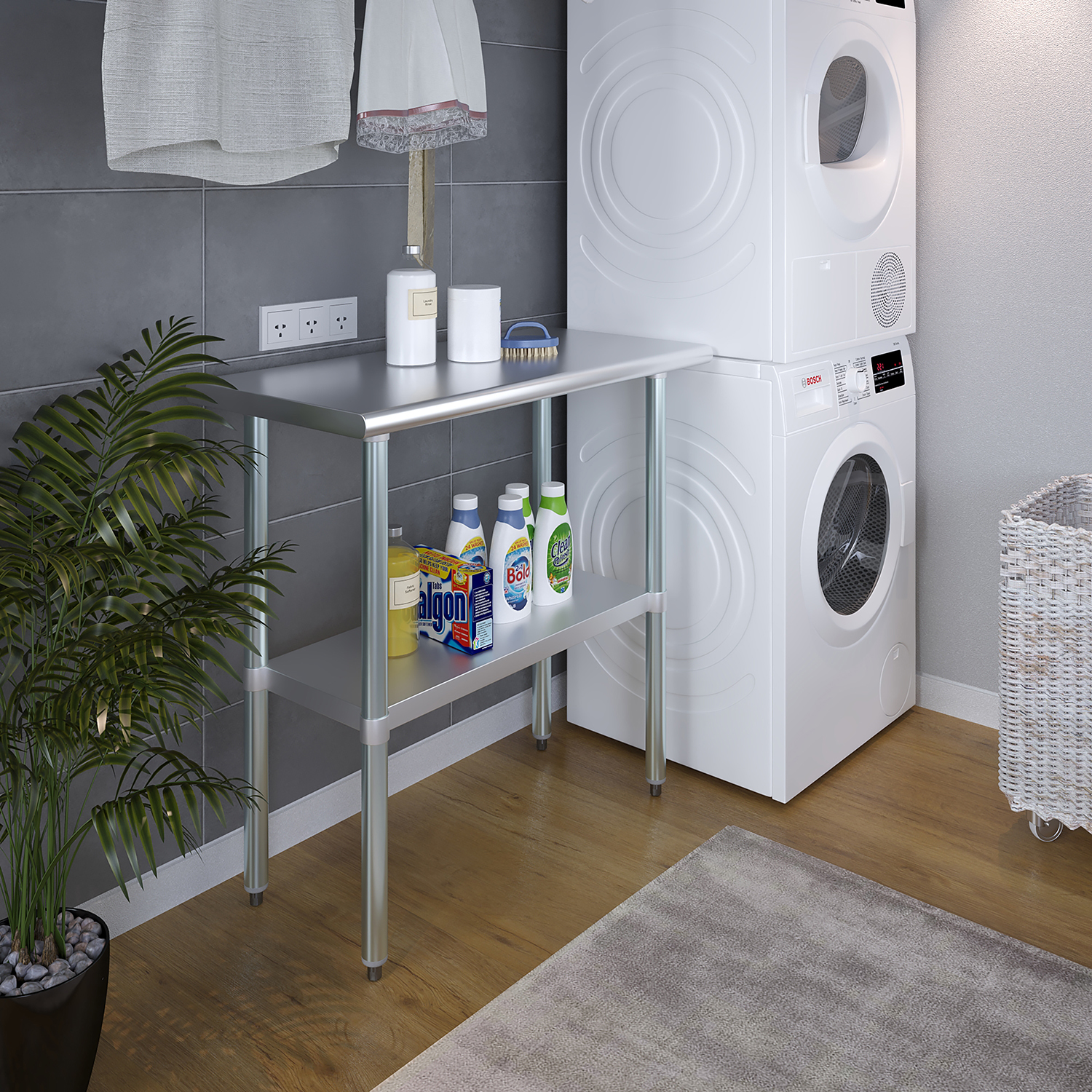 A key feature of this work table is the adjustable undershelf, which offers additional storage space for tools, supplies, and equipment. This undershelf can be positioned at your preferred height, allowing for customized storage solutions that meet your specific needs. Whether you need to store heavy equipment or small utensils, this versatile shelf enhances the functionality of your workspace by keeping essential items within easy reach.