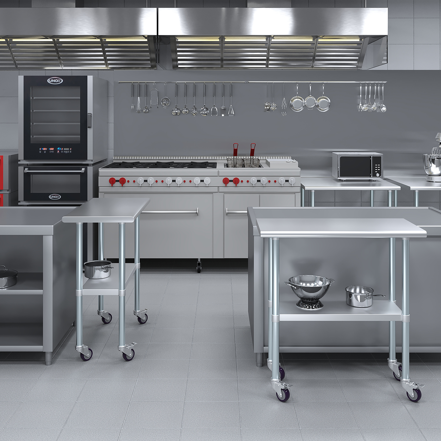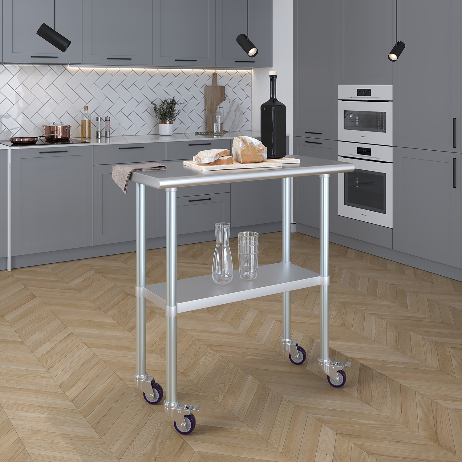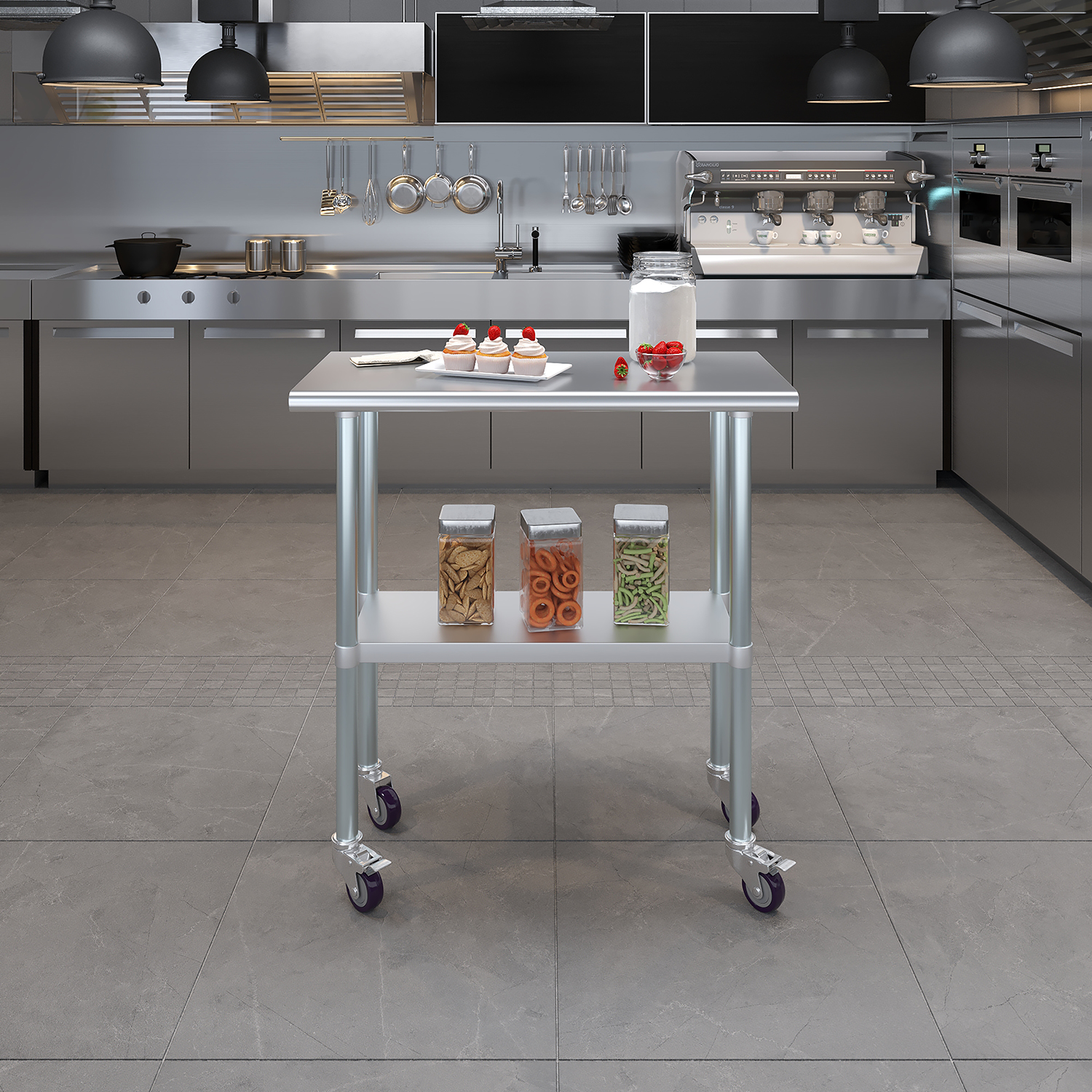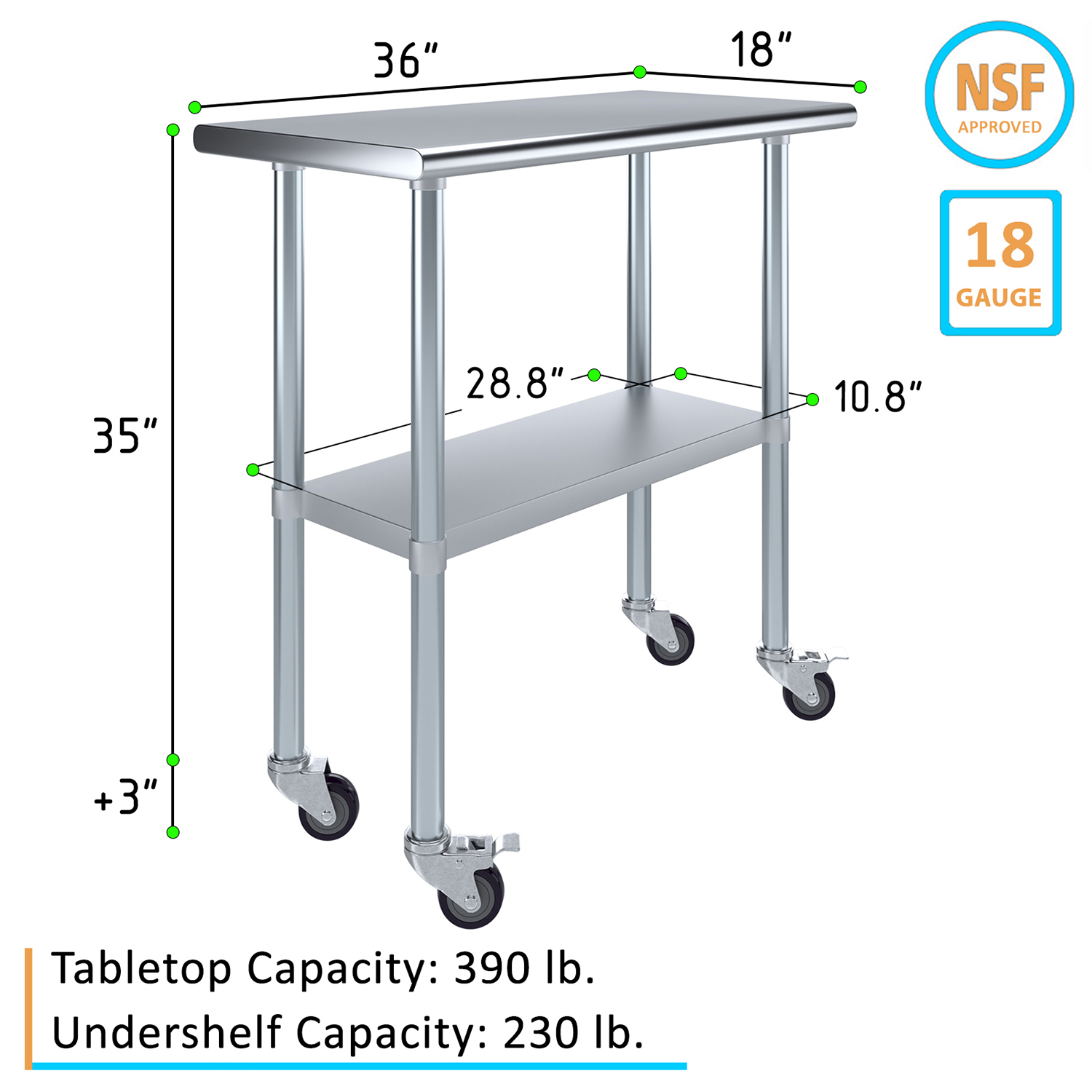 18″ X 36″ Stainless Steel Work Table With Undershelf & Wheels