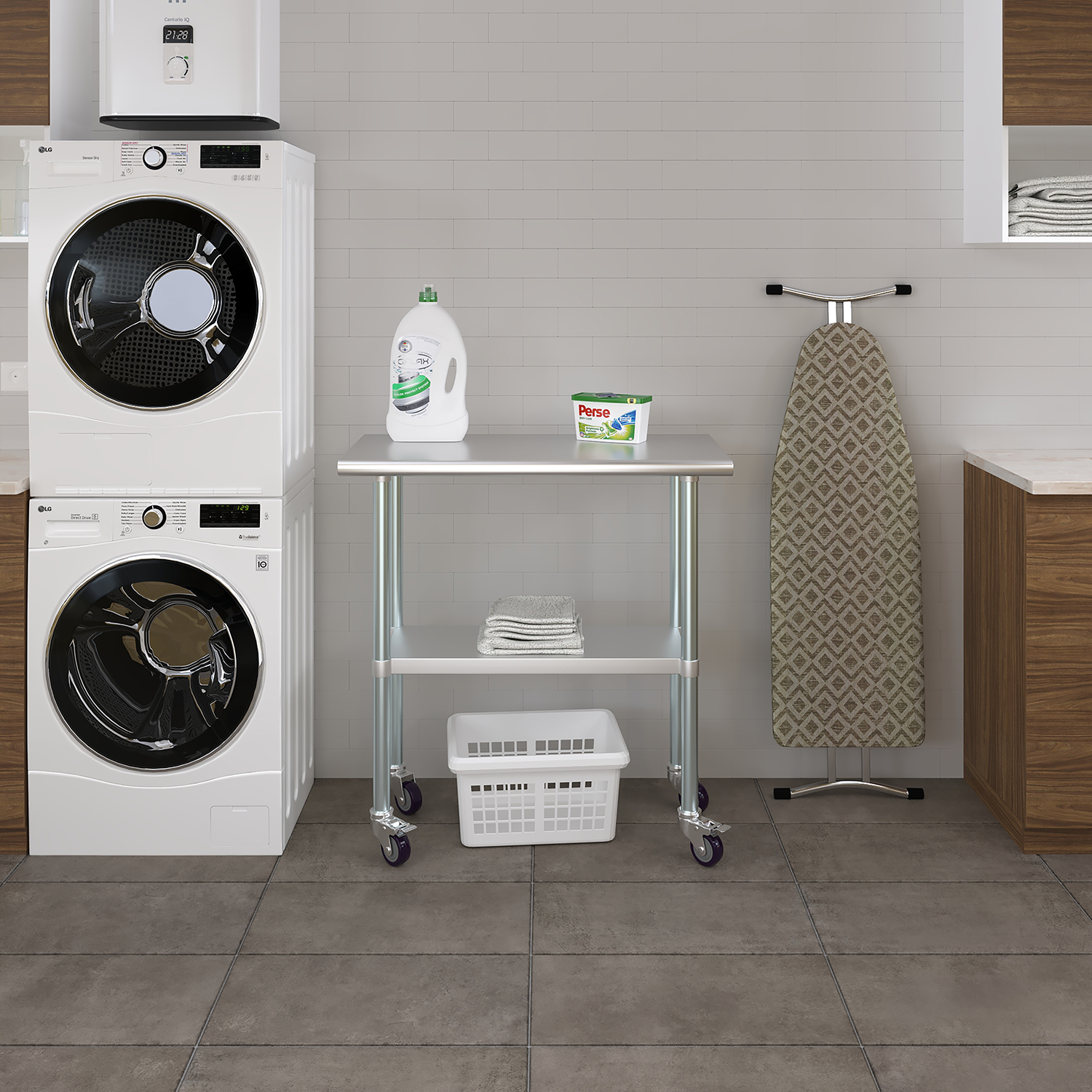 Upgrade your workspace with this versatile and practical work table that combines high functionality with contemporary design. Perfect for enhancing productivity and organization, the 18″ x 36″ Stainless Steel Work Table with Undershelf and Wheels is an indispensable asset for any professional setting, providing durability, convenience, and efficiency in a compact, mobile unit.