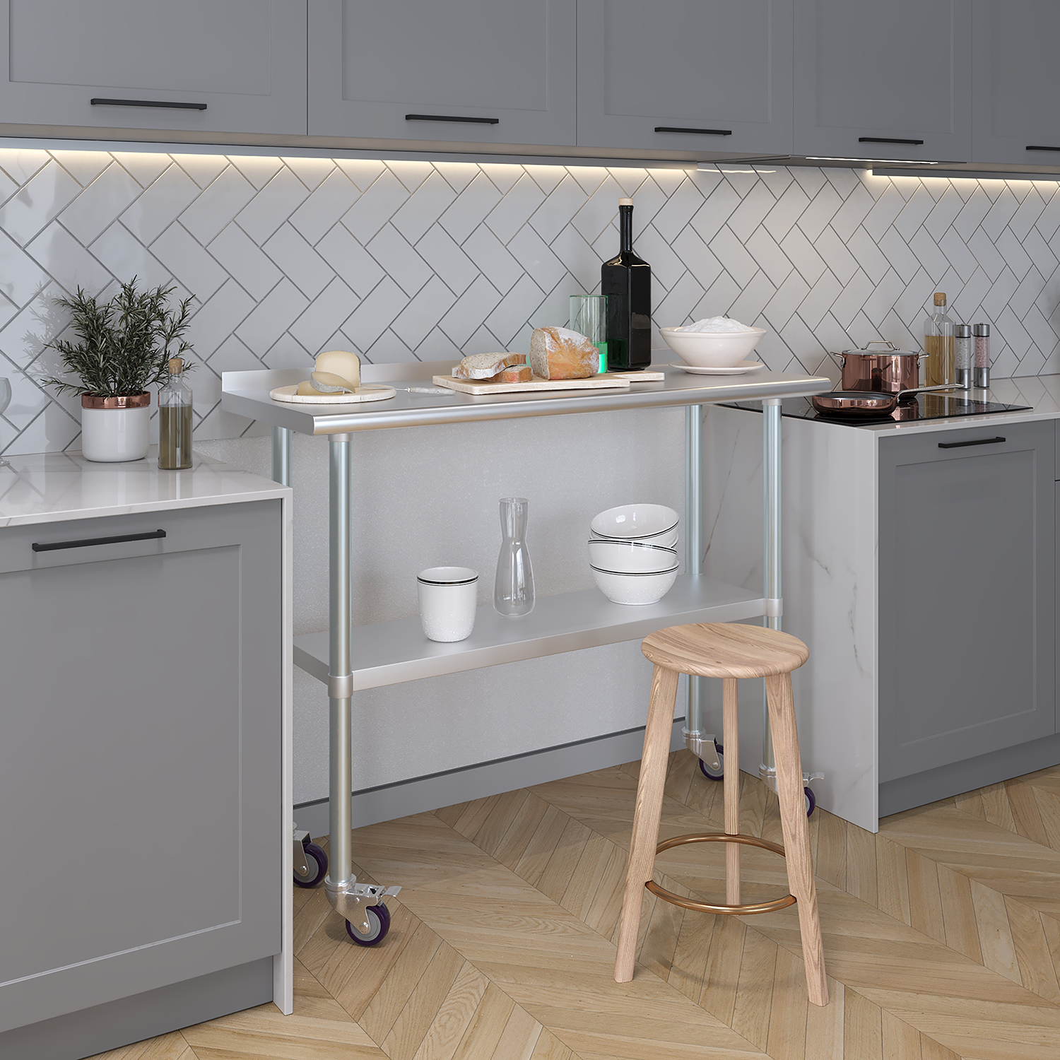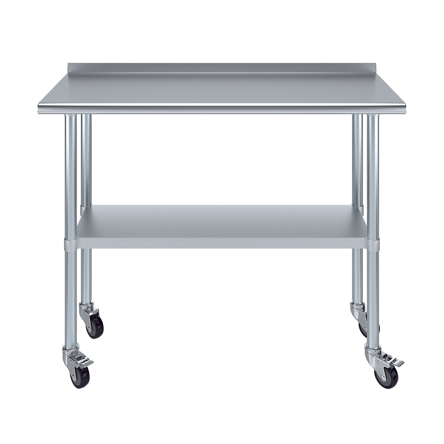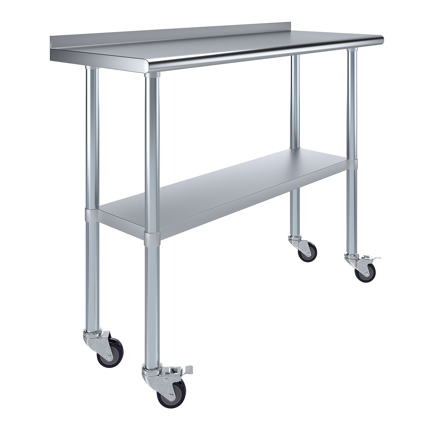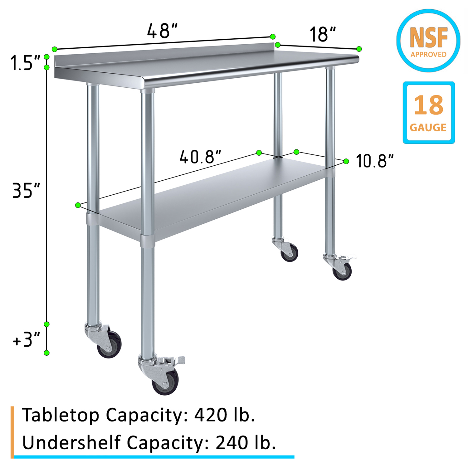 18″ X 48″ Stainless Steel Work Table with 1.5″ Backsplash and Wheels