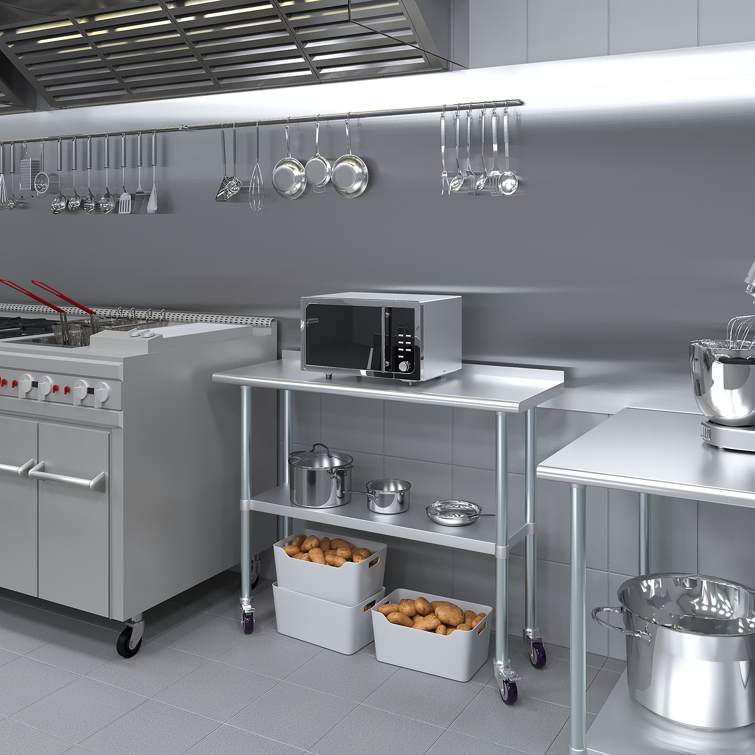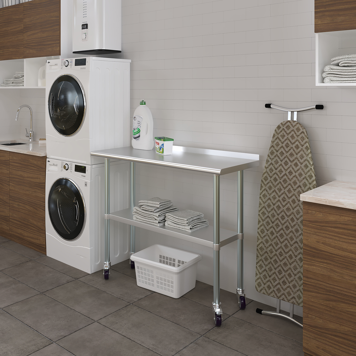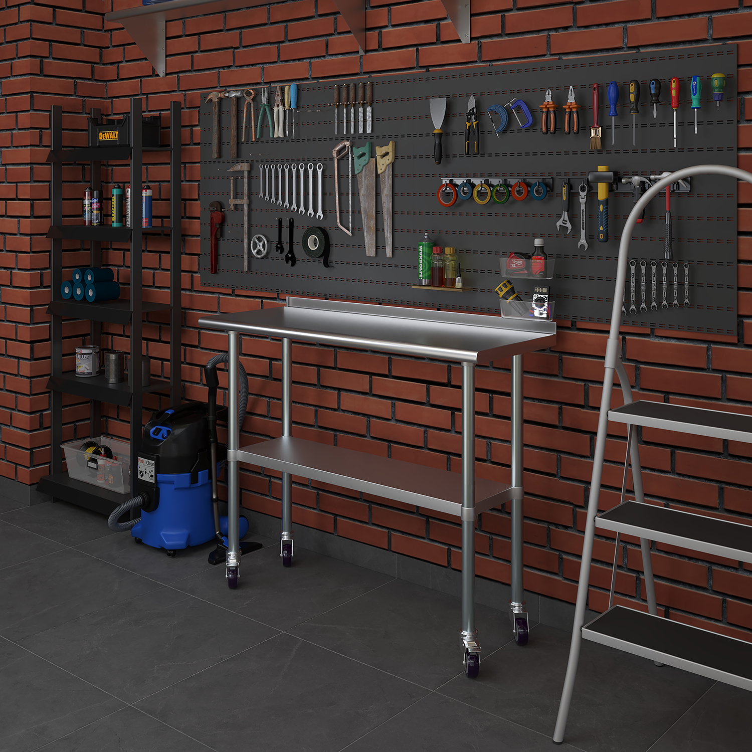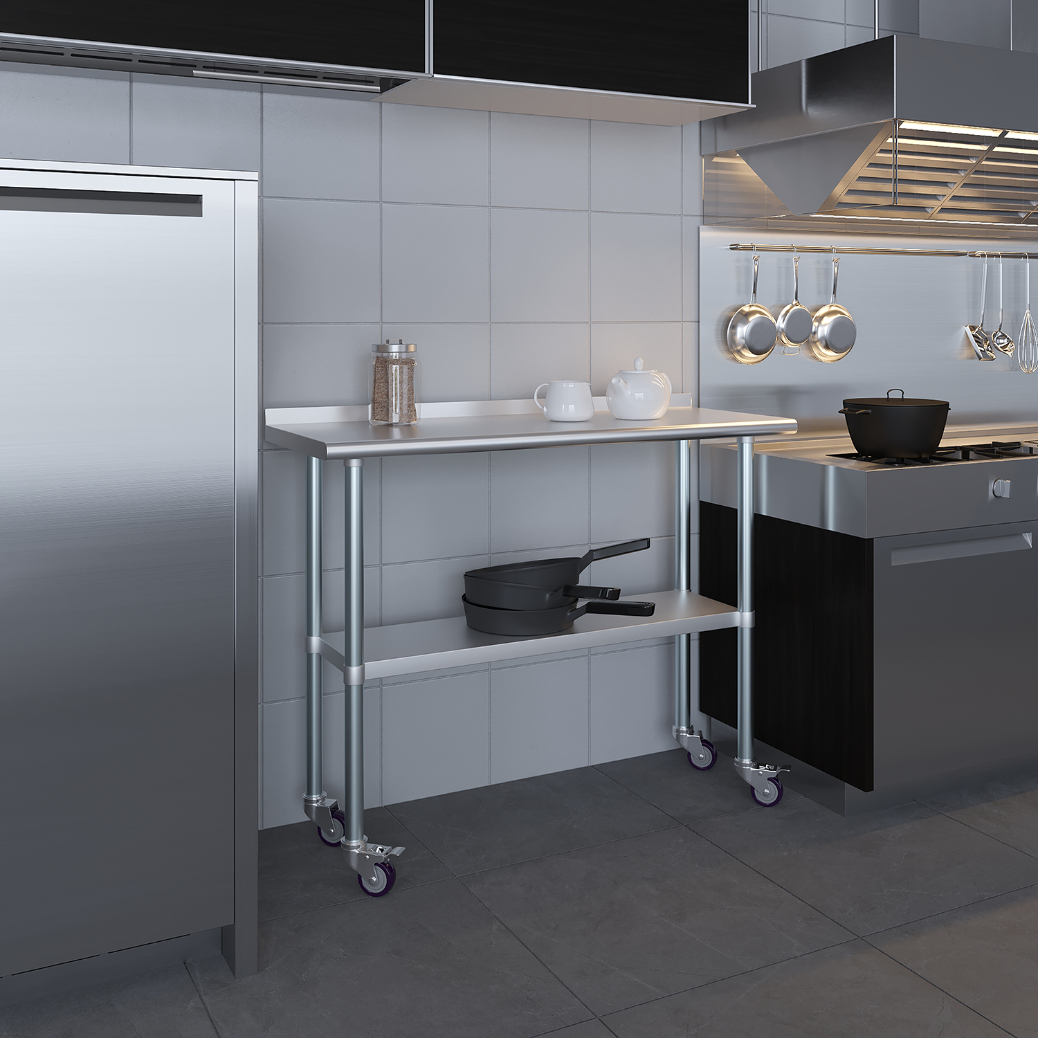18″ X 48″ Stainless Steel Work Table with 1.5″ Backsplash and Wheels