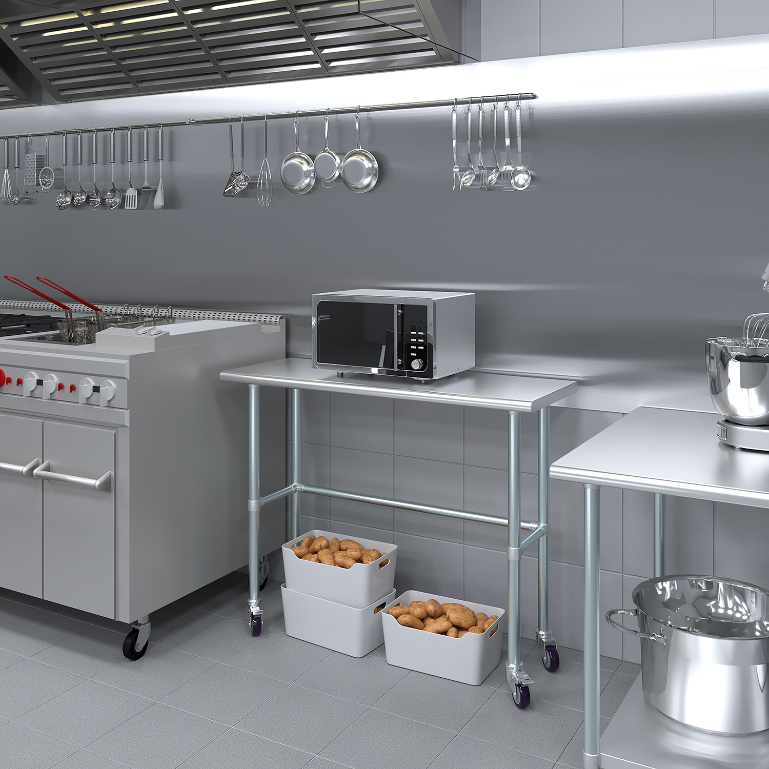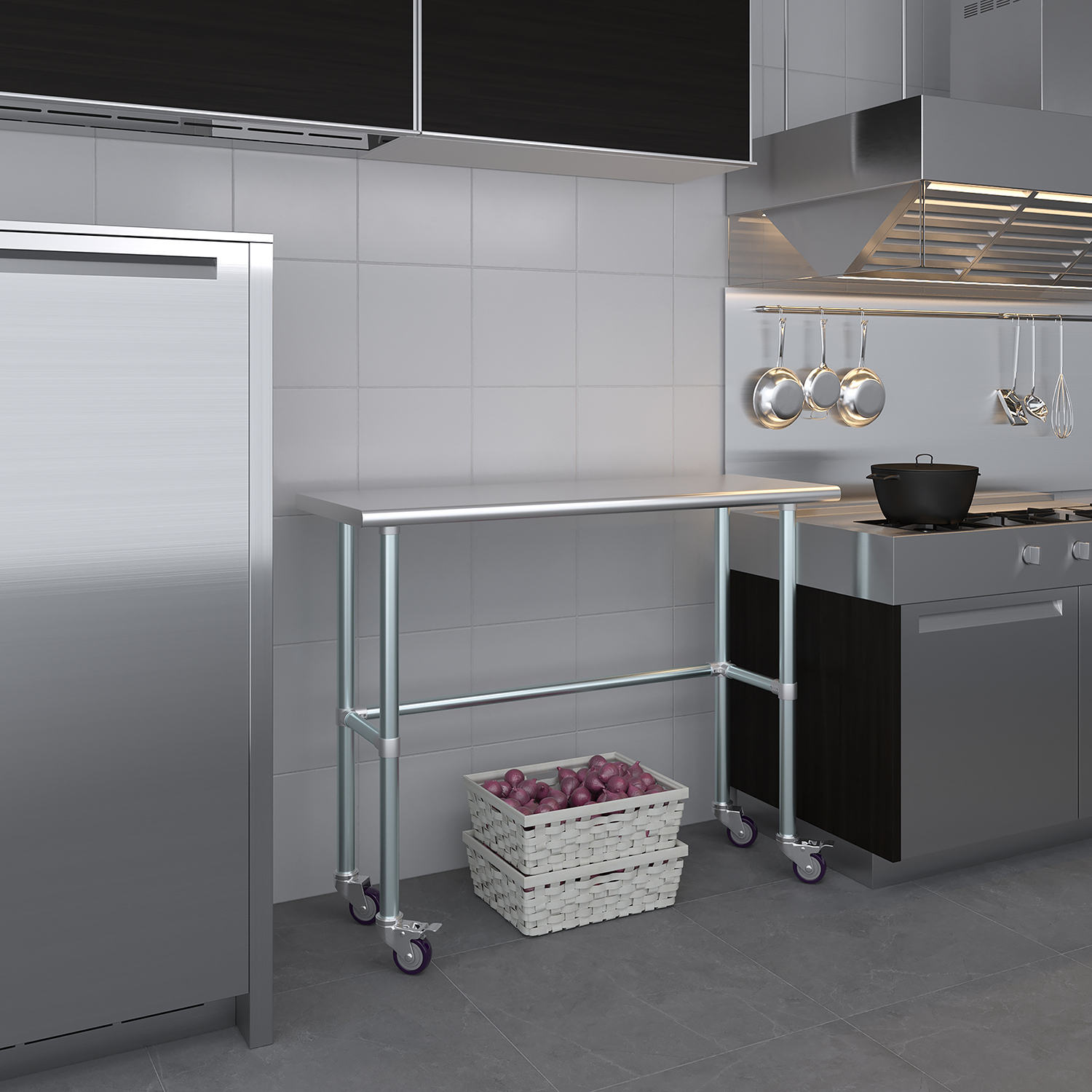 18″ X 48″ Stainless Steel Work Table With Open Base & Wheels