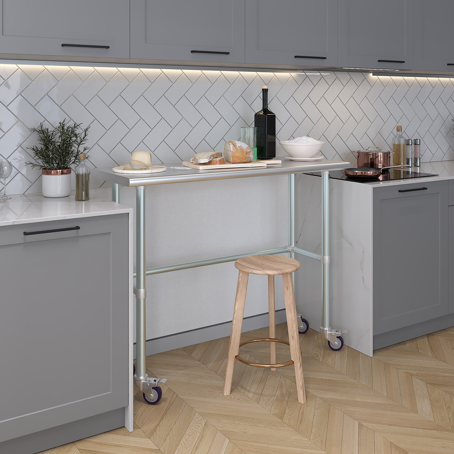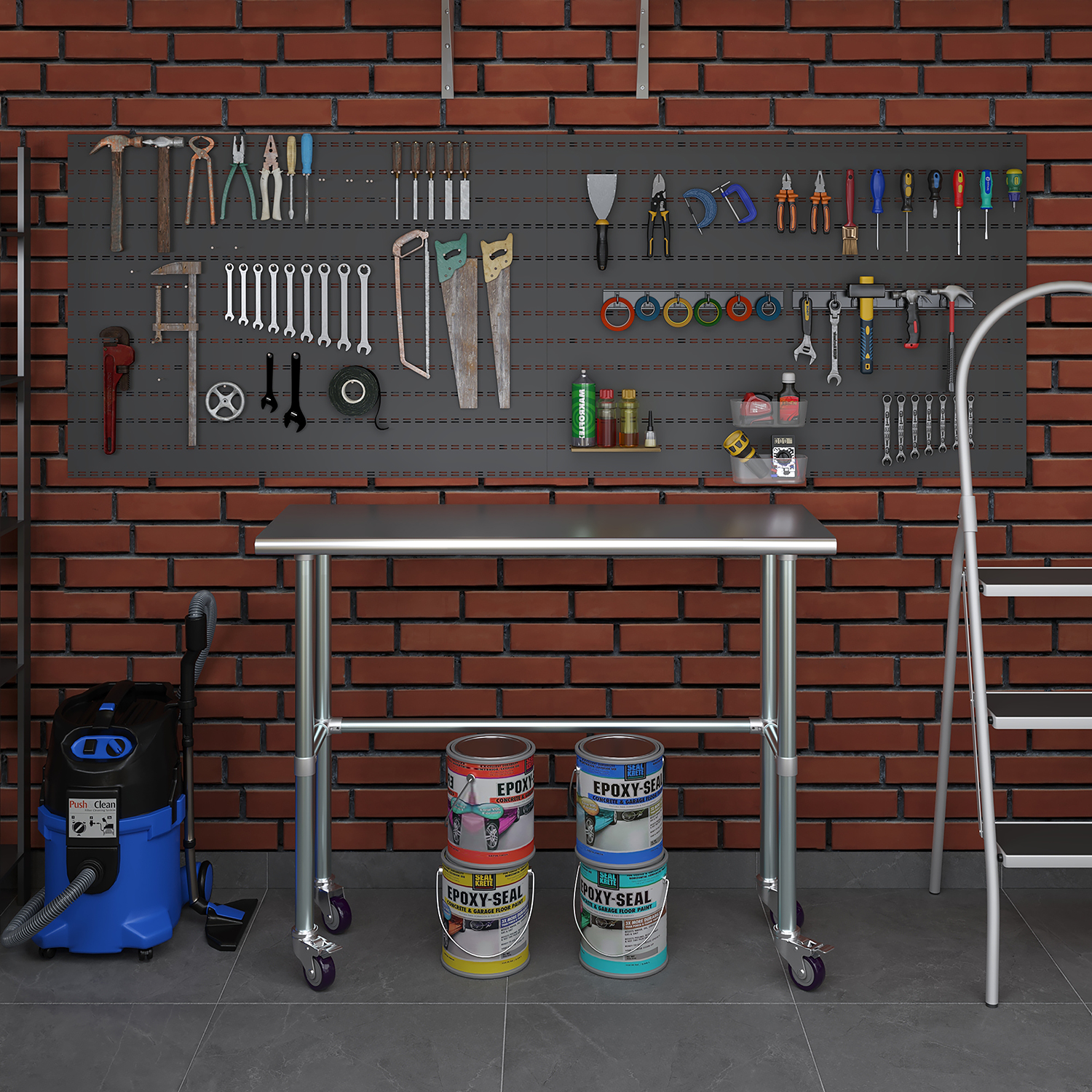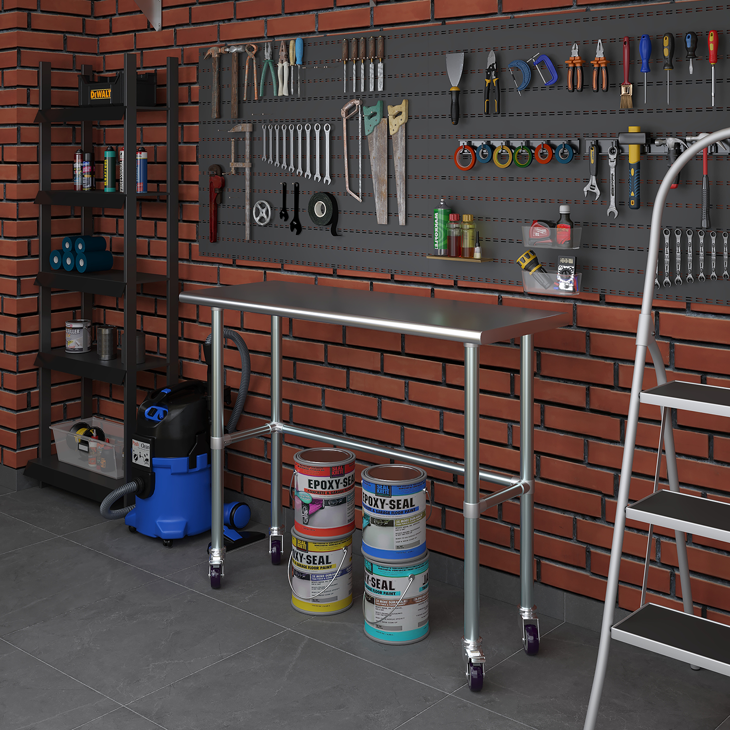 Equipped with a set of four wheels, this work table offers unparalleled mobility. The wheels are designed to glide smoothly across different surfaces, allowing you to reposition the table effortlessly as needed. This mobility is particularly beneficial in dynamic environments where flexibility and adaptability are crucial. Additionally, the wheels are equipped with locking mechanisms to ensure stability and prevent unwanted movement during use.