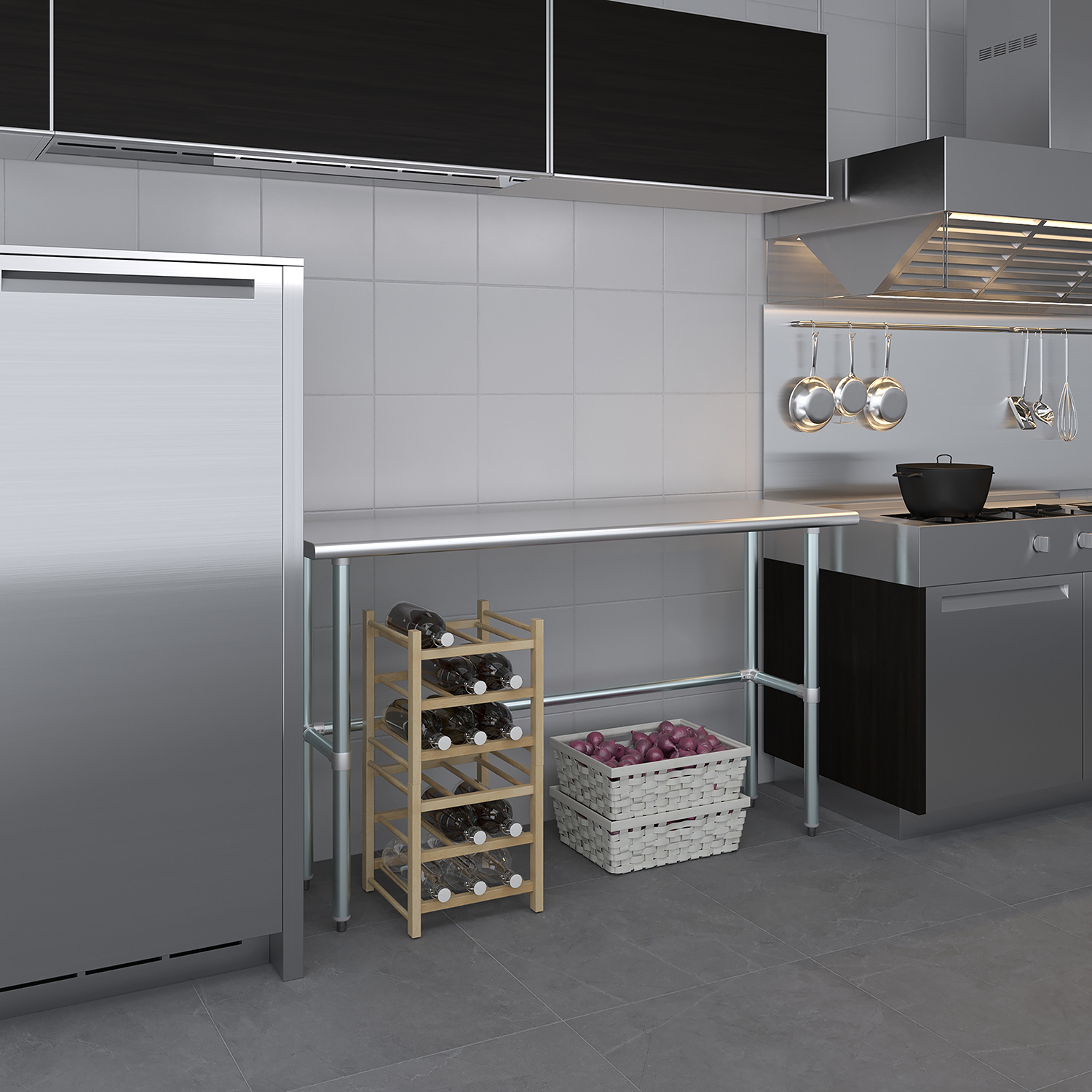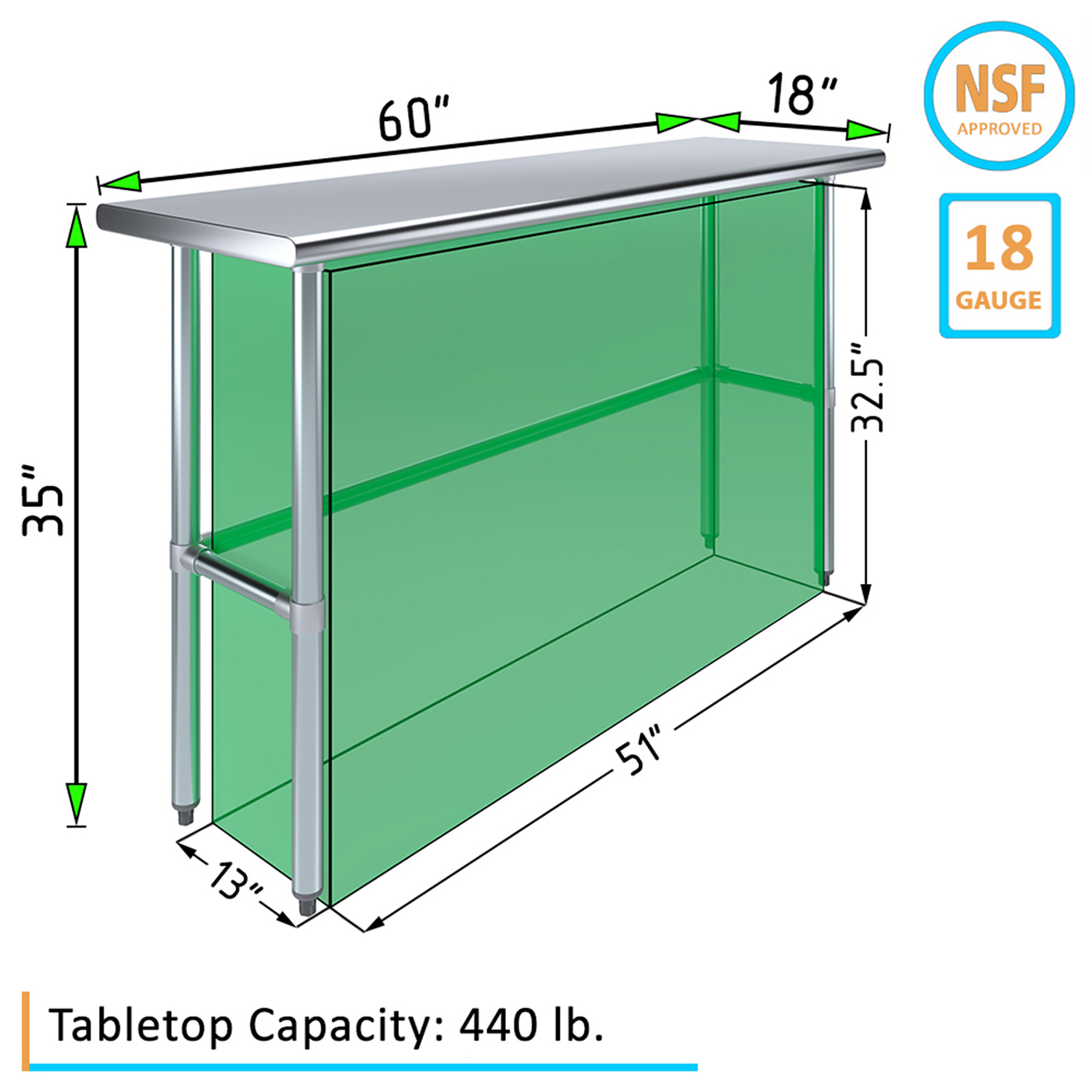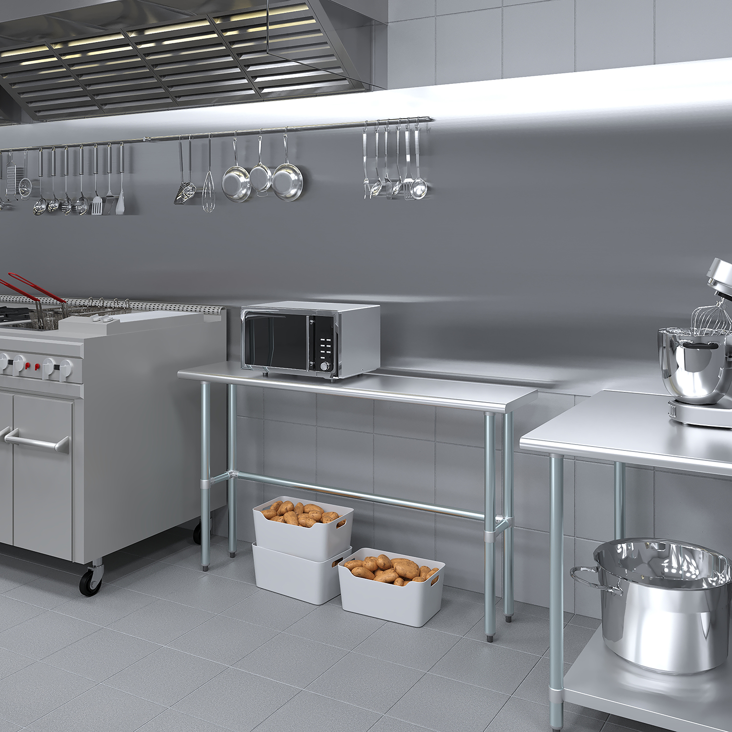 Enhance your workspace with the versatile and durable 18″ x 60″ Stainless Steel Work Table with Open Base. Crafted from 18GA/430 stainless steel, this work table is designed to withstand the rigors of daily use in commercial kitchens, workshops, laboratories, and other demanding environments. Its sleek, smooth surface is not only easy to clean but also resistant, ensuring long-lasting performance and hygiene.