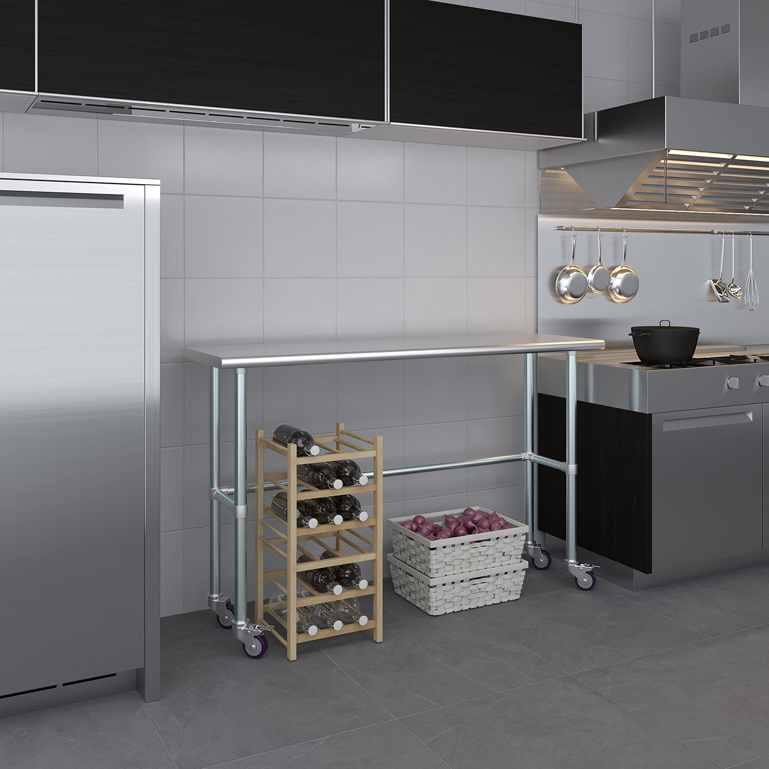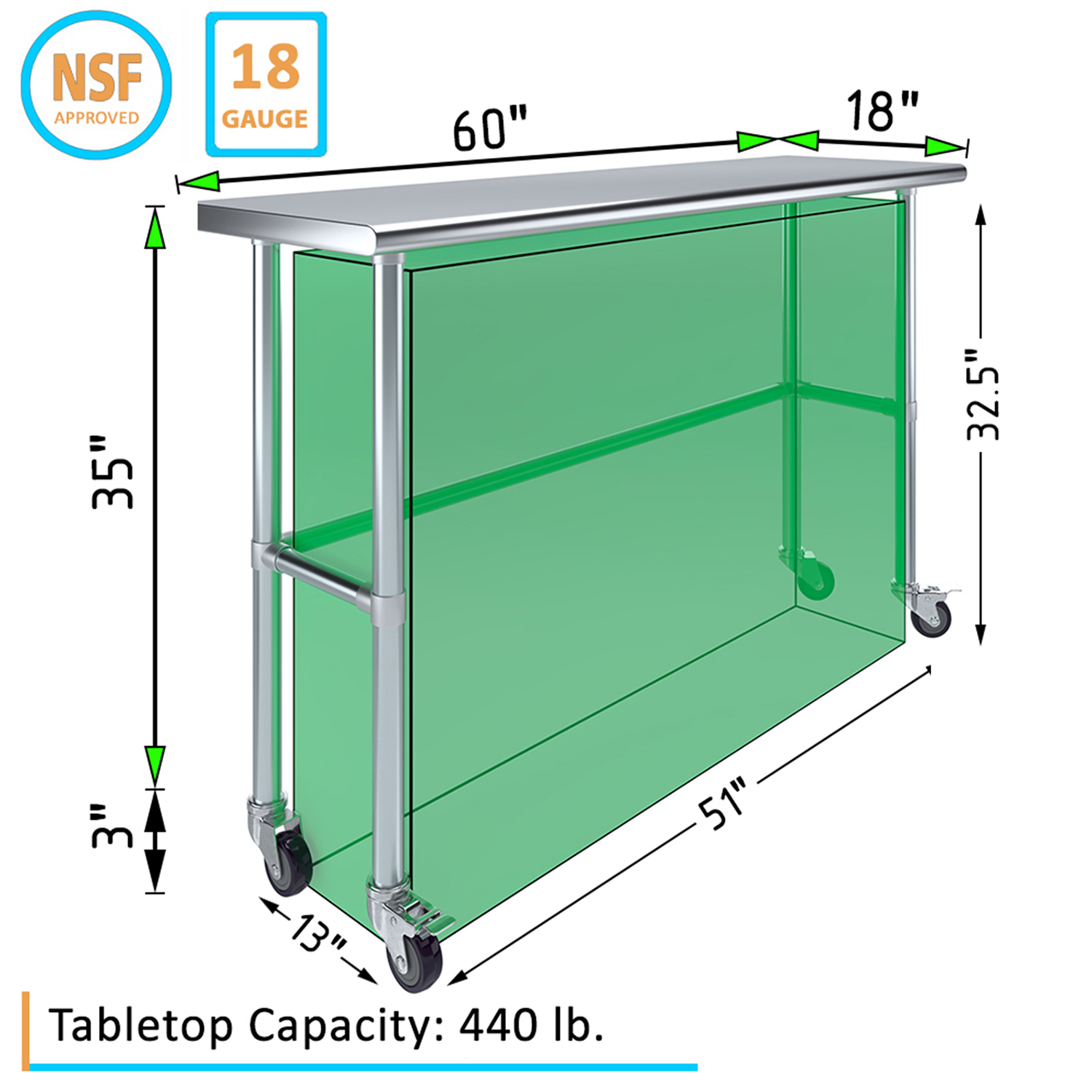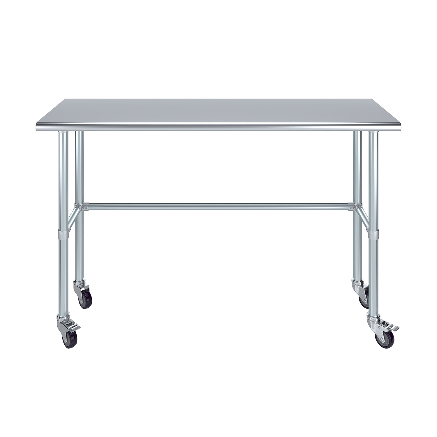 18″ X 60″ Stainless Steel Work Table With Open Base & Wheels