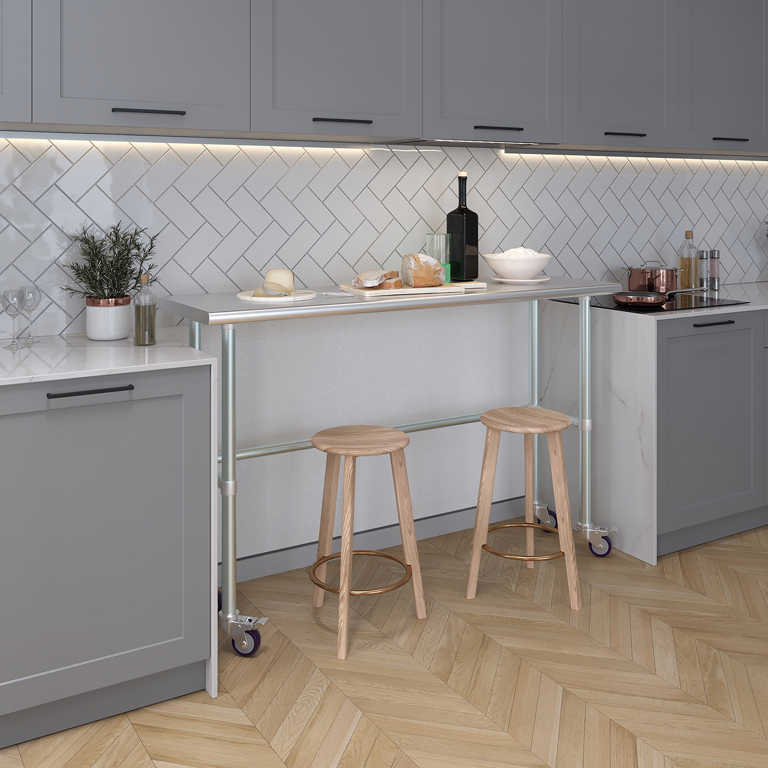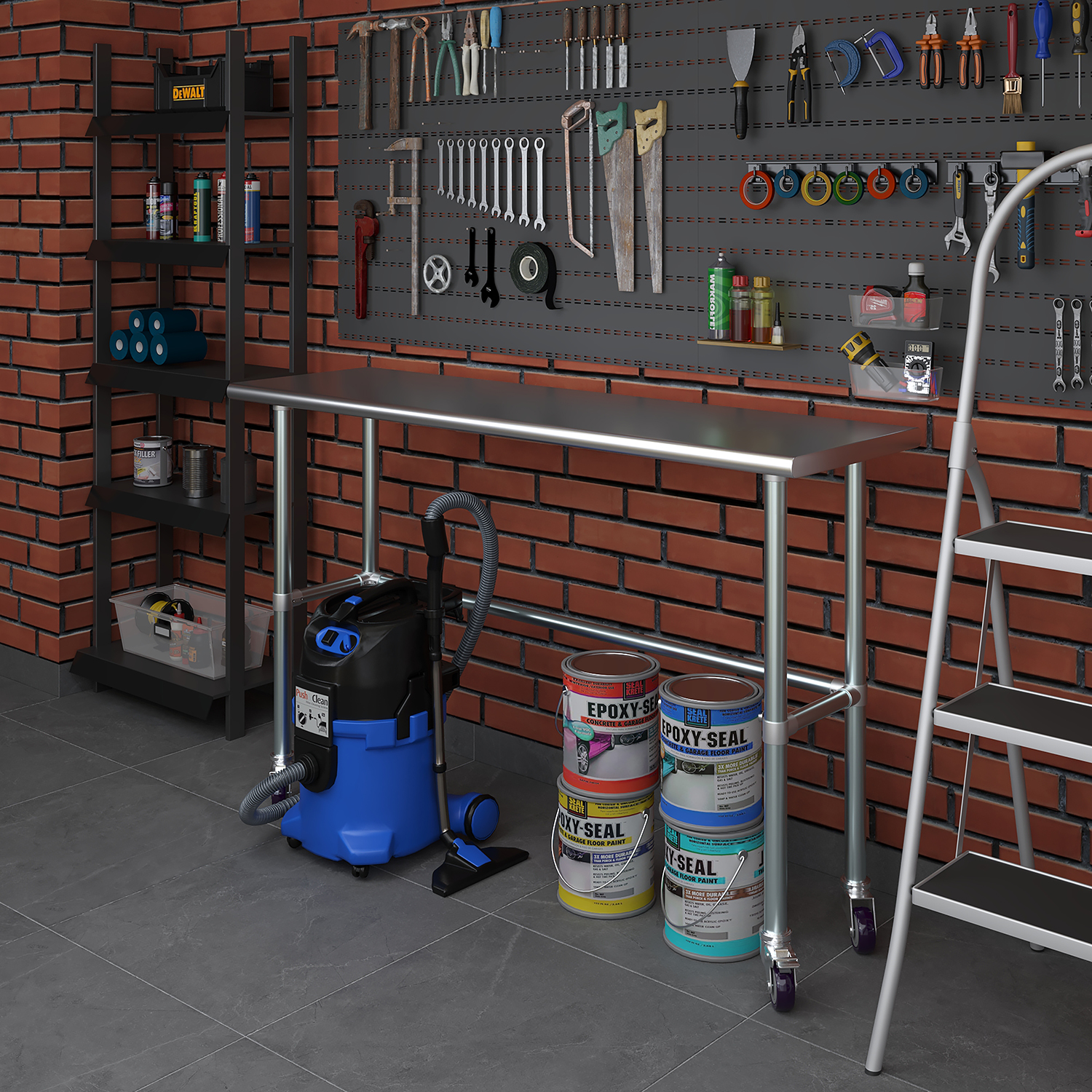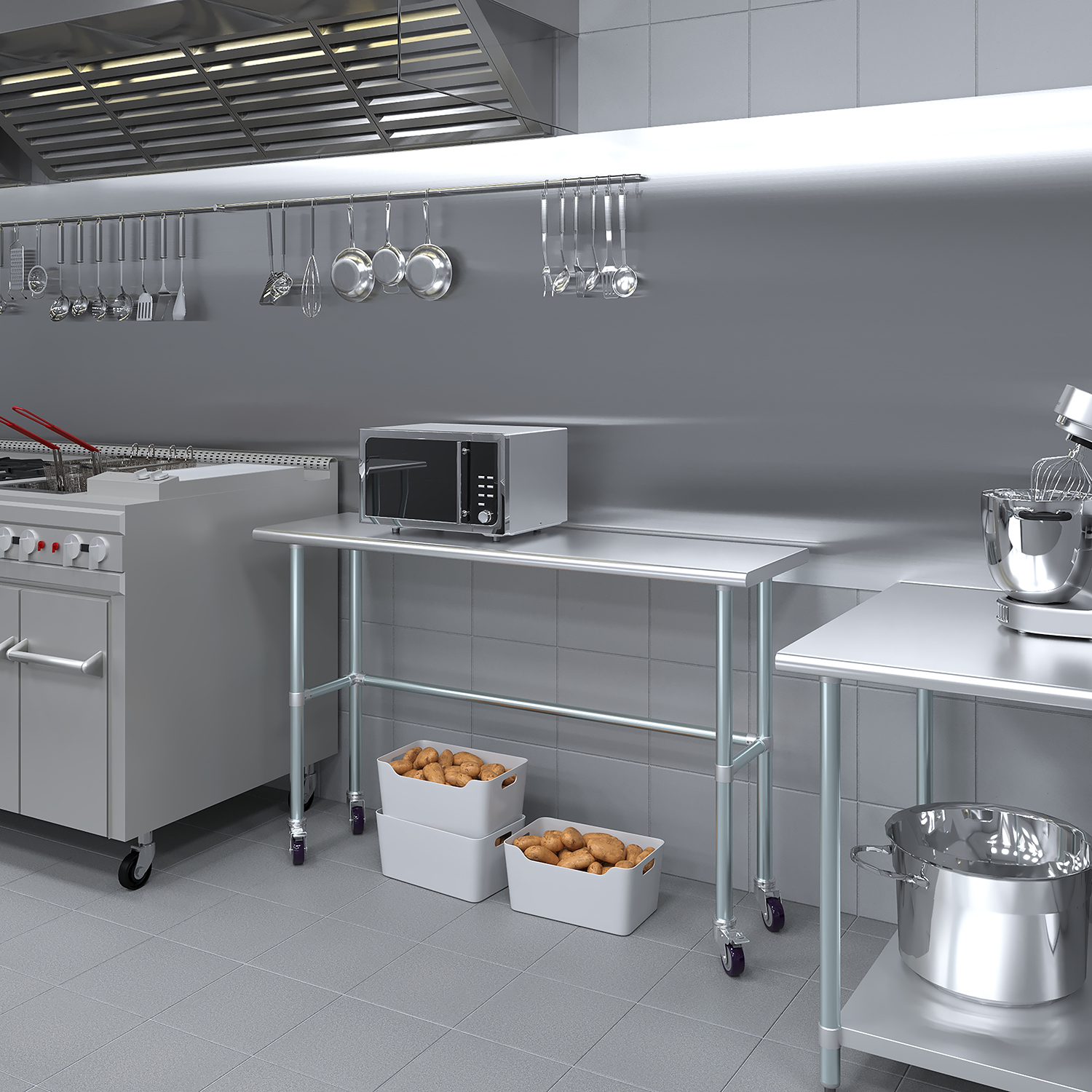 18″ X 60″ Stainless Steel Work Table With Open Base & Wheels