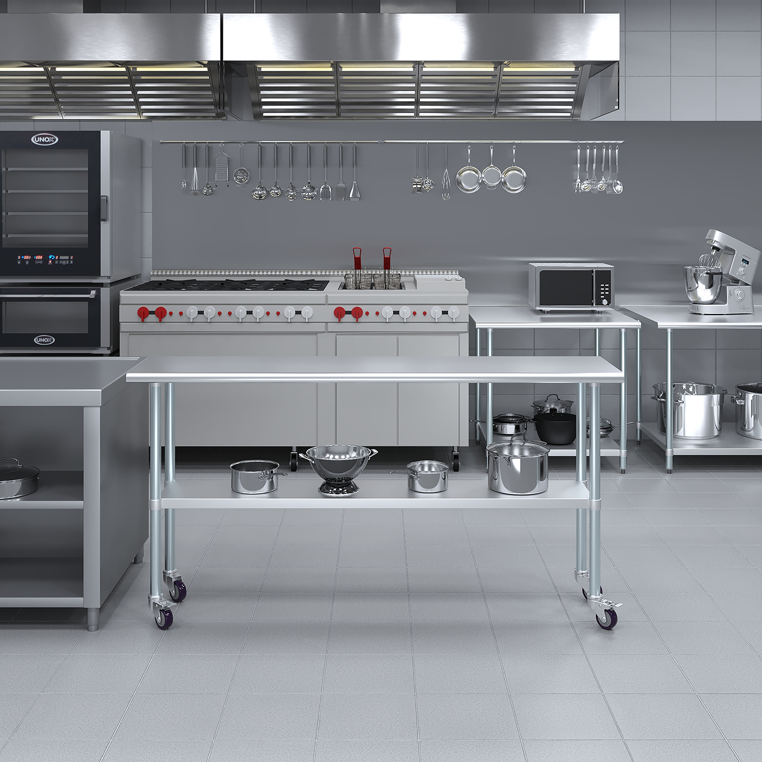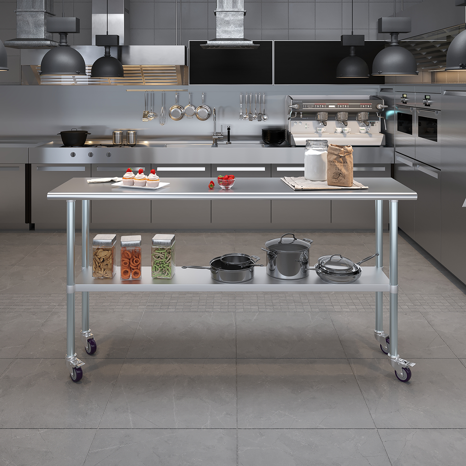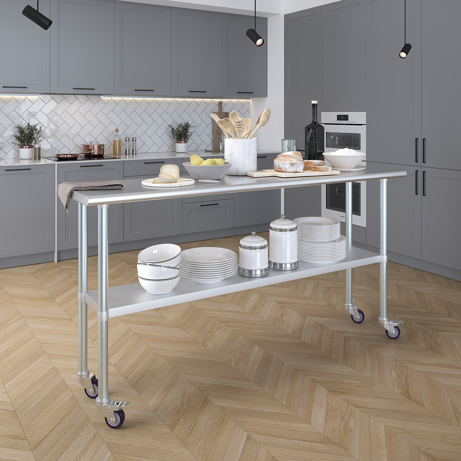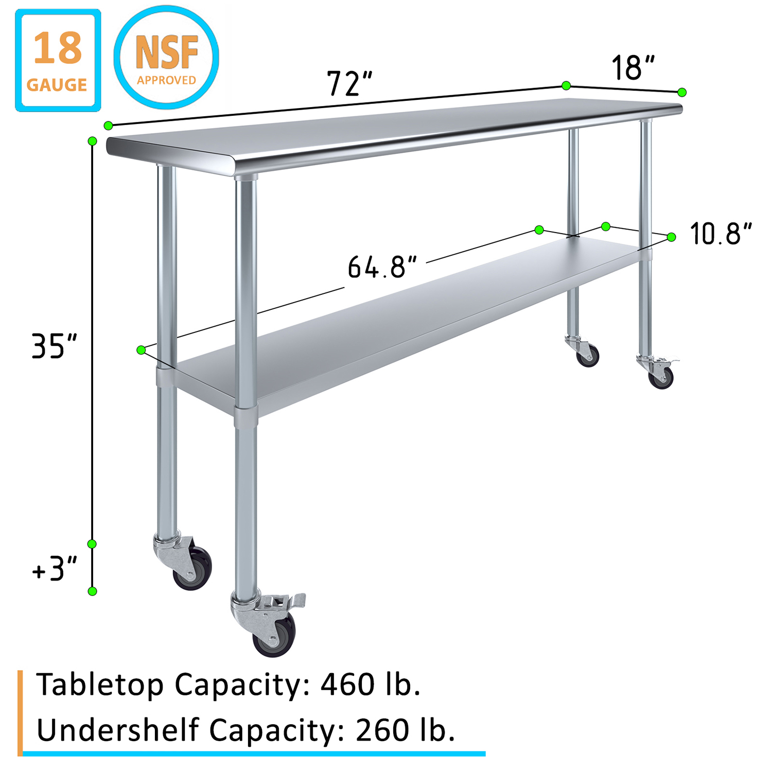 18″ X 72″ Stainless Steel Work Table With Undershelf & Wheels