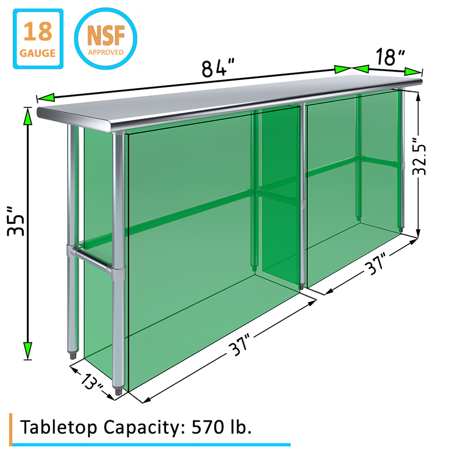 18″ X 84″ Stainless Steel Work Table With Open Base