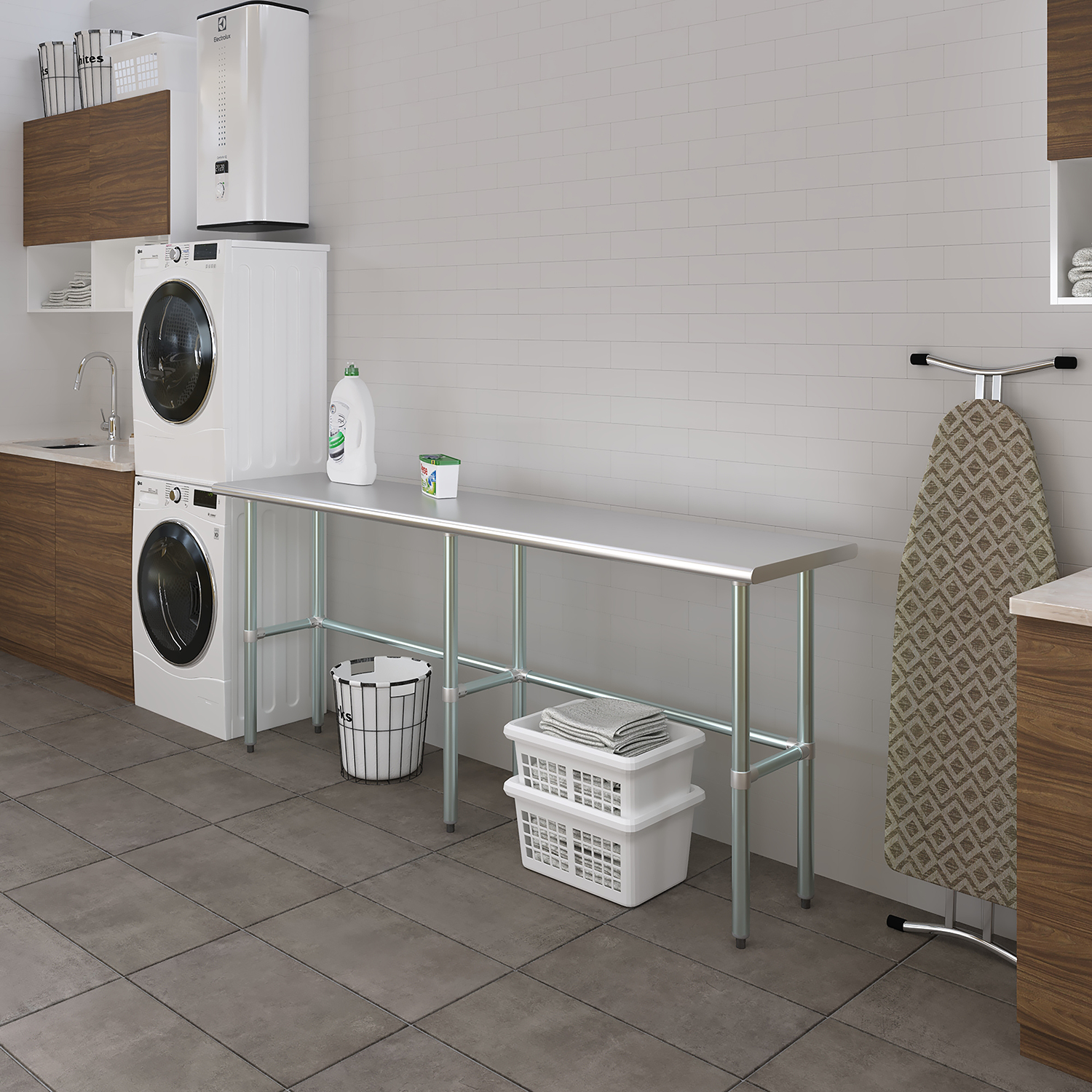 Measuring 18 inches by 84 inches, this work table offers a compact footprint that fits seamlessly into smaller spaces while still providing ample workspace for your projects. The clean, modern design complements any setting, adding a touch of professionalism to your environment. Whether you’re slicing ingredients in a busy kitchen, assembling components in a workshop, or conducting experiments in a lab, this stainless steel work table is a reliable and stylish addition to your workspace.