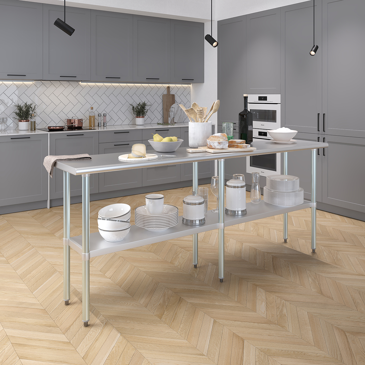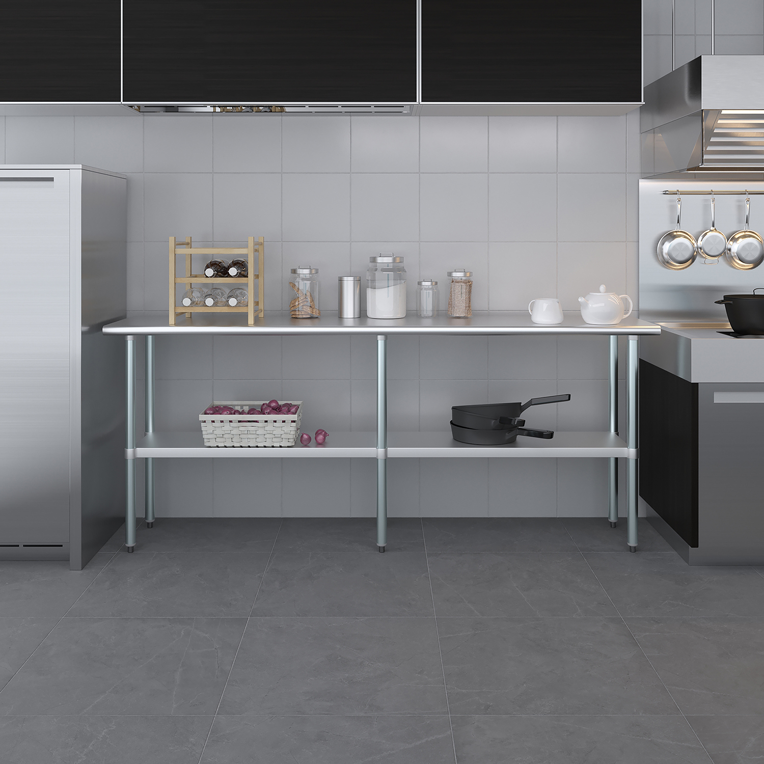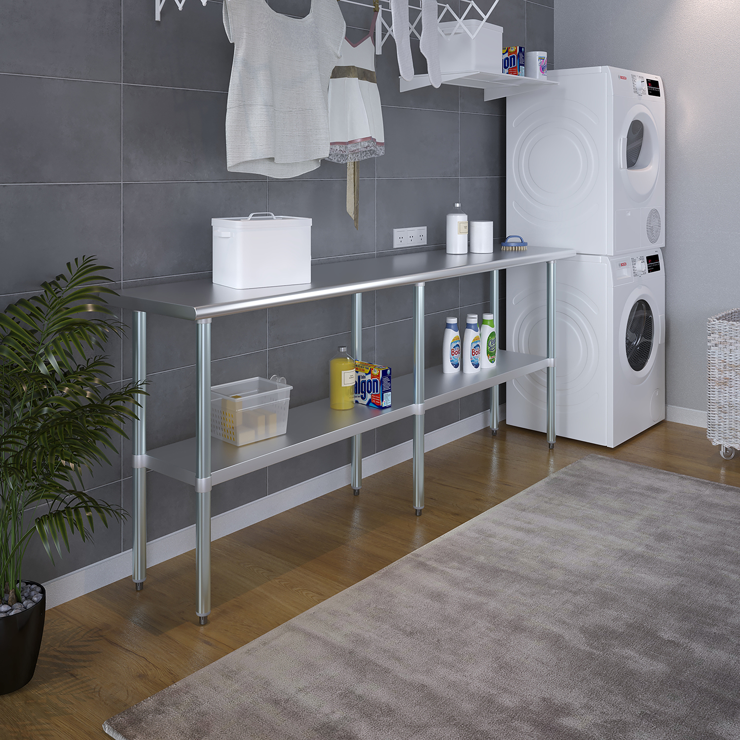 Ideal for a wide range of applications, from commercial kitchens and catering services to laboratories and workshops, the 18″ X 84″ Stainless Steel Work Table with Undershelf is a practical and stylish addition that enhances productivity and organization. Its sleek, professional appearance complements any setting, while its durable construction guarantees long-lasting performance.