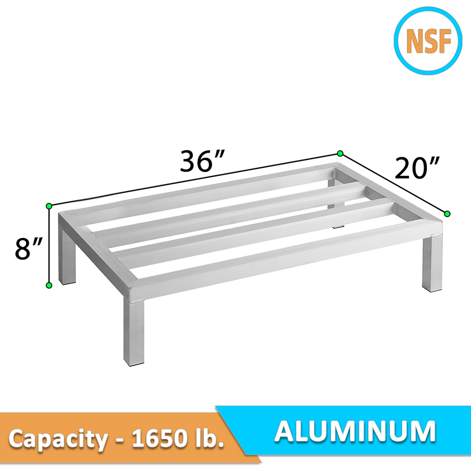 20″ Wide X 36″ Length X 8″ Height Aluminum Dunnage Rack