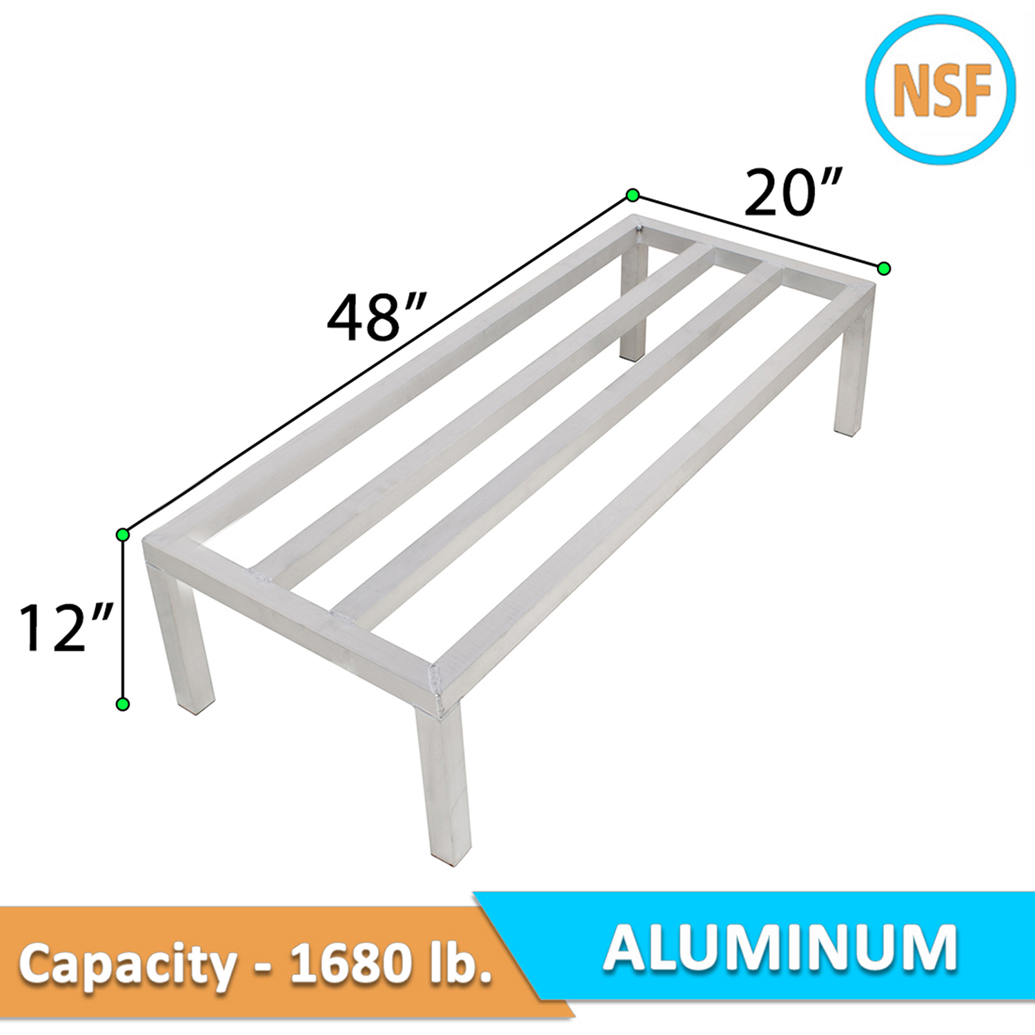Introducing the 20″ Wide x 48″ Length x 12″ Height Aluminum Dunnage Rack, a premium storage solution designed to enhance the efficiency and organization of your commercial kitchen, warehouse, or storage room. Constructed from aluminum, this dunnage rack is built to last, offering exceptional, making it ideal for environments where durability and hygiene are paramount.