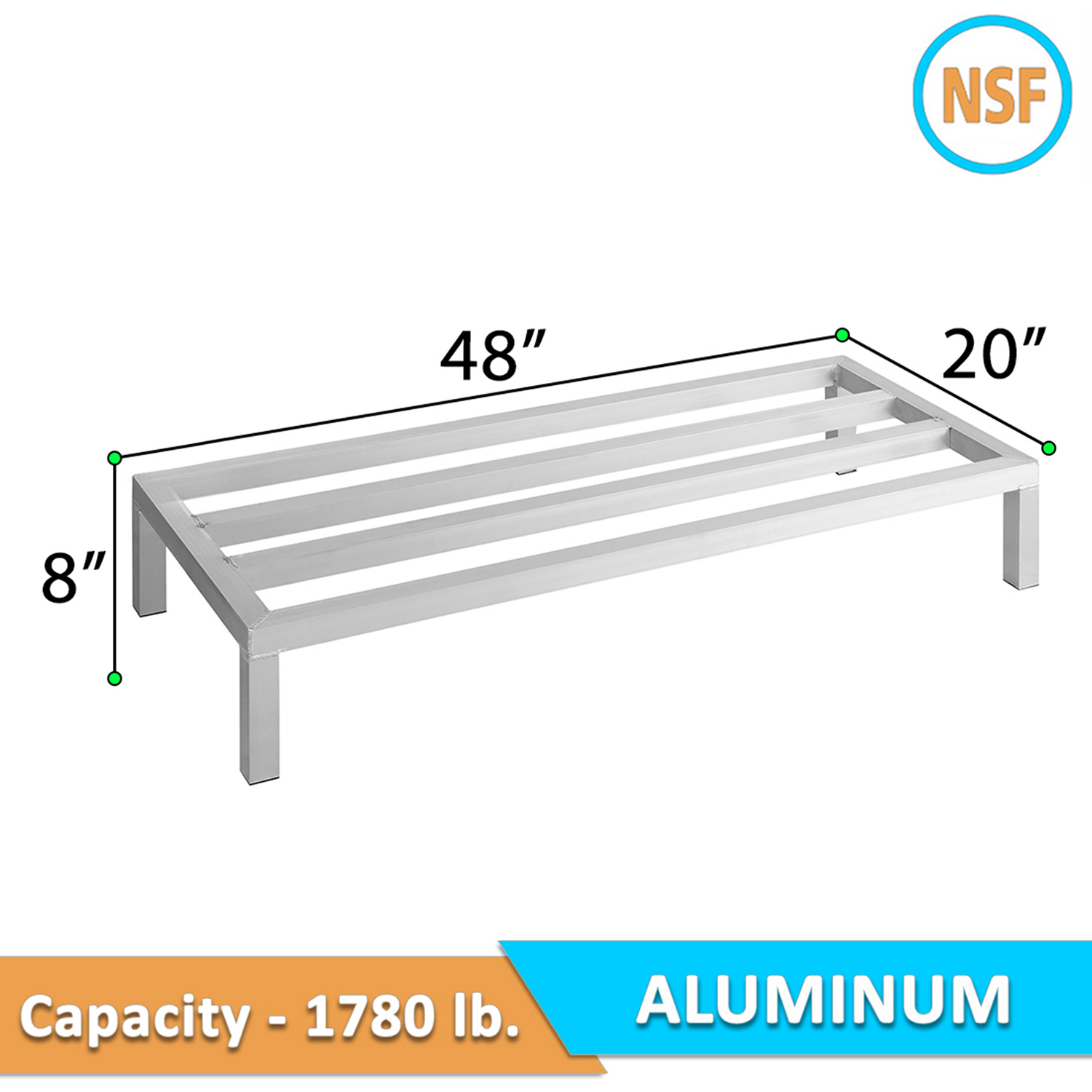 Introducing the 20″ Wide x 48″ Length x 8″ Height Aluminum Dunnage Rack, a premium storage solution designed to enhance the efficiency and organization of your commercial kitchen, warehouse, or storage room. Constructed from aluminum, this dunnage rack is built to last, offering exceptional, making it ideal for environments where durability and hygiene are paramount.