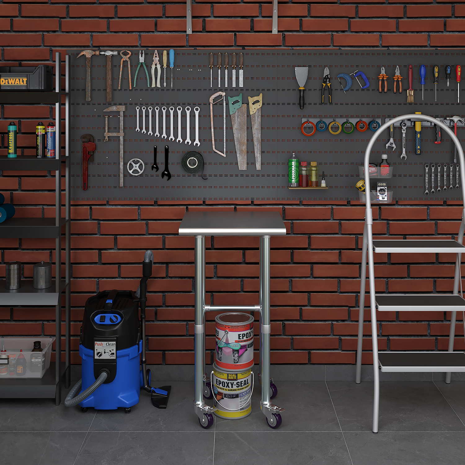The compact dimensions of 20 inches by 20 inches make this work table an excellent choice for smaller spaces while still providing a robust and functional workspace. Despite its compact footprint, the table offers ample space for a variety of tasks, from food preparation and assembly work to scientific experiments and crafting projects.