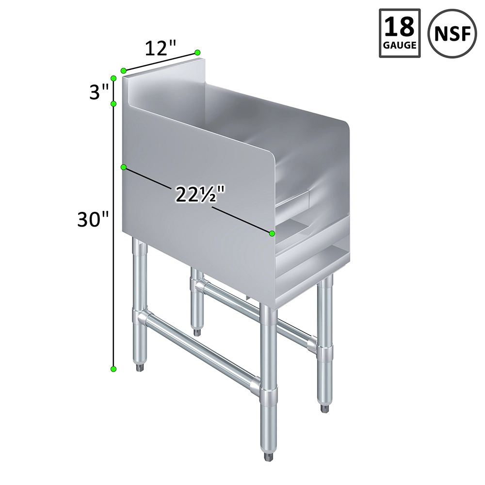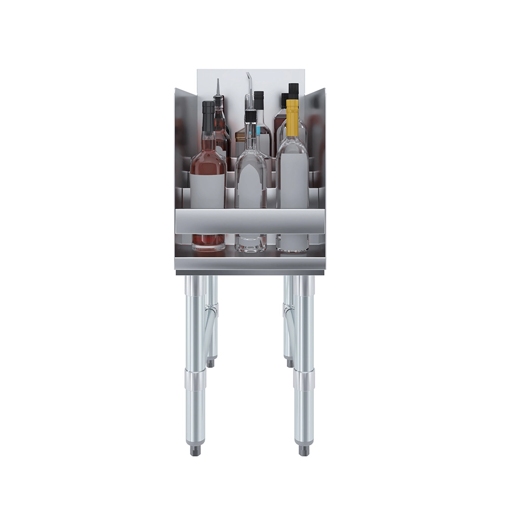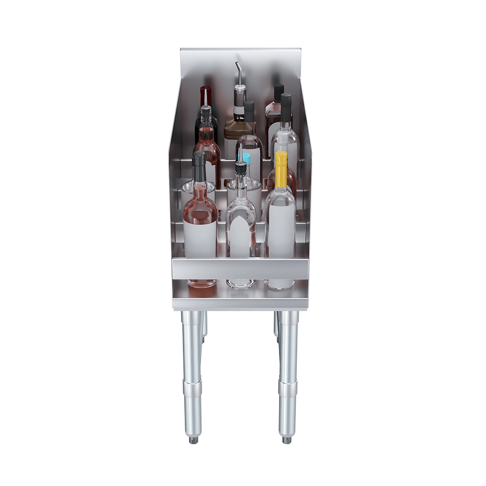 Measuring 22 1/2 inches wide and 12 inches deep, this rack fits neatly on countertops or back bars without taking up excessive space. Its modern 20GA/304 stainless steel finish complements any décor and adds a clean, polished look. Whether you’re displaying top-shelf spirits or organizing your home collection, this display rack combines functionality with sleek design.