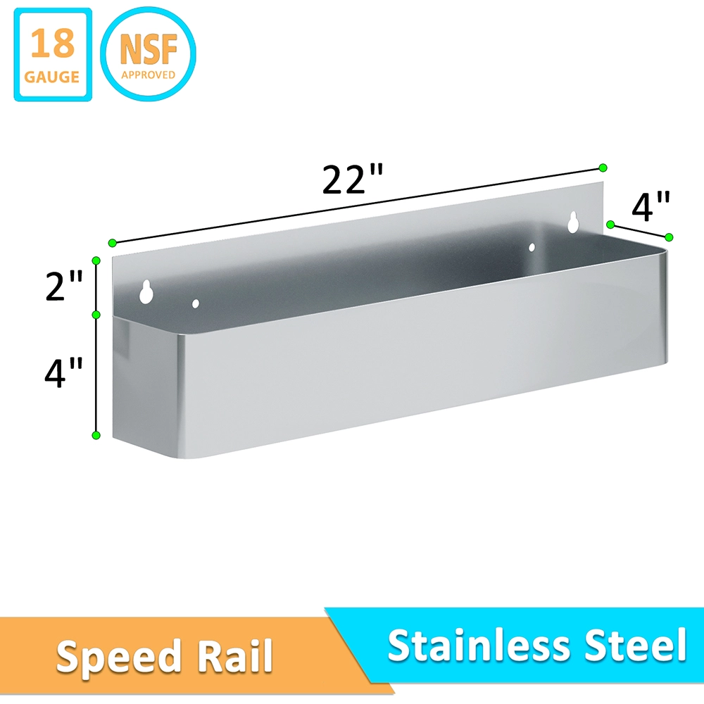 The single-tier design of this speed rail rack provides easy and quick access to frequently used bottles, making it a practical solution for busy bartenders and kitchen staff. Measuring 22 inches in length, it offers ample space to accommodate multiple bottles, from spirits and mixers in a bar setting to oils and sauces in a kitchen. This allows for a well-organized and streamlined workspace, helping you serve customers faster and with greater efficiency.