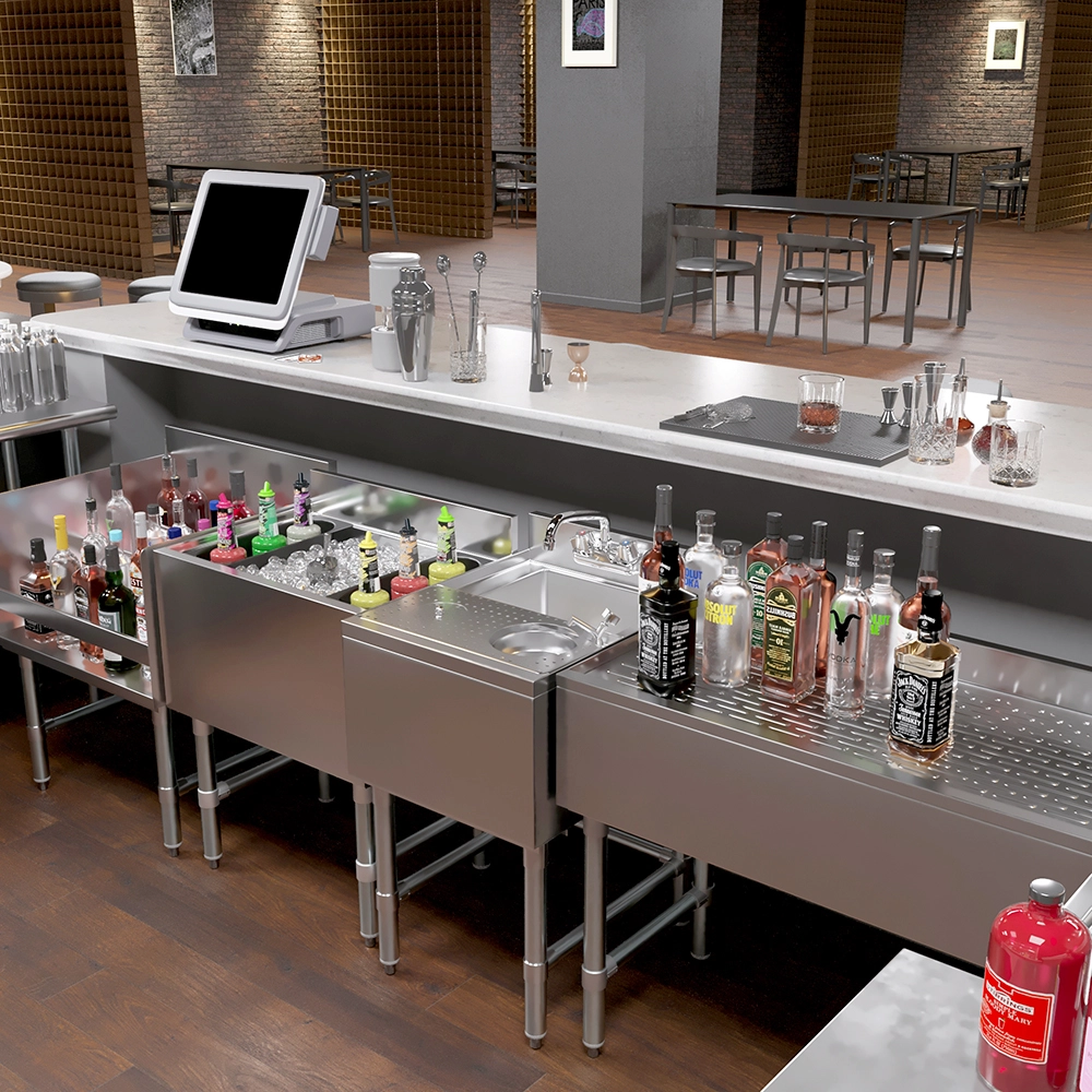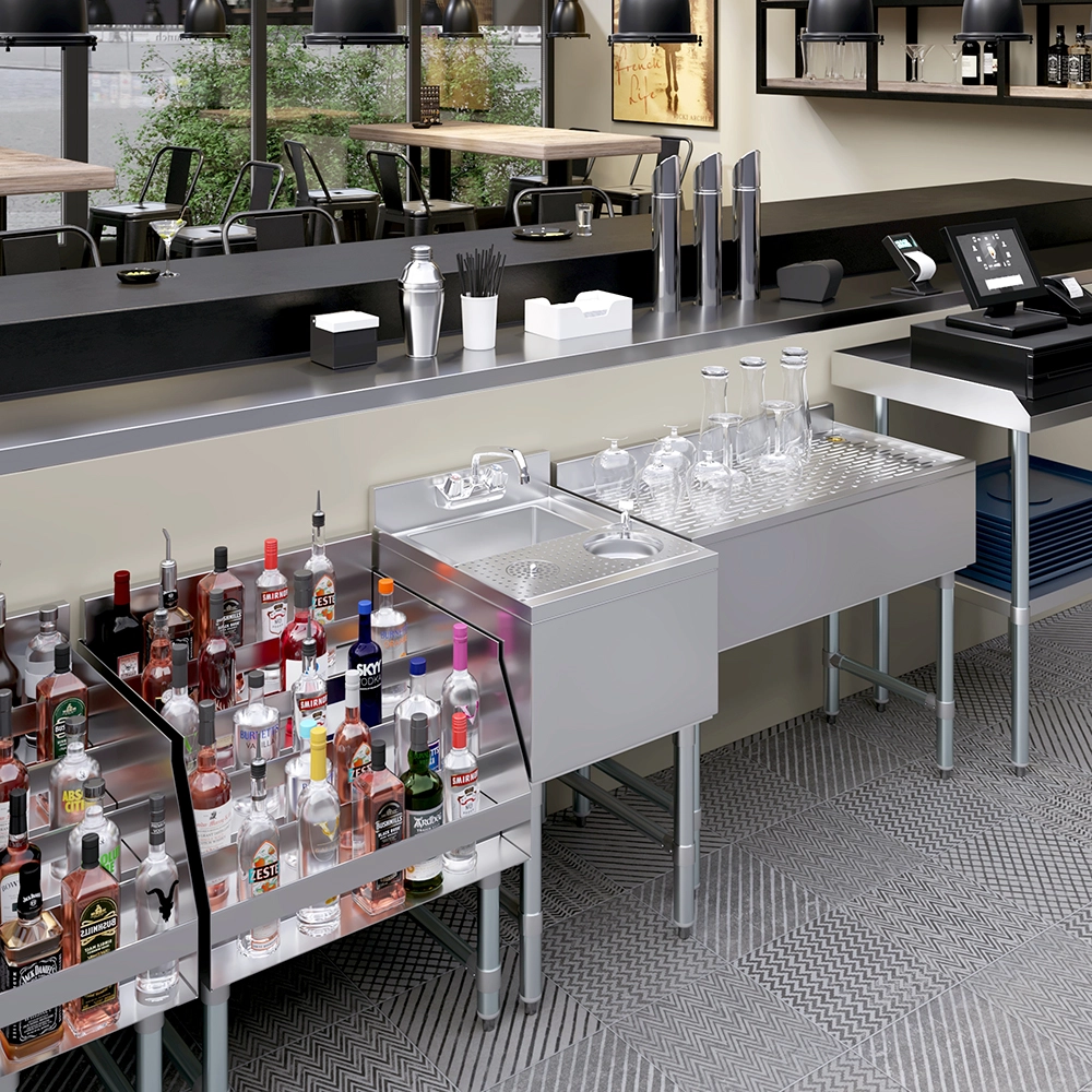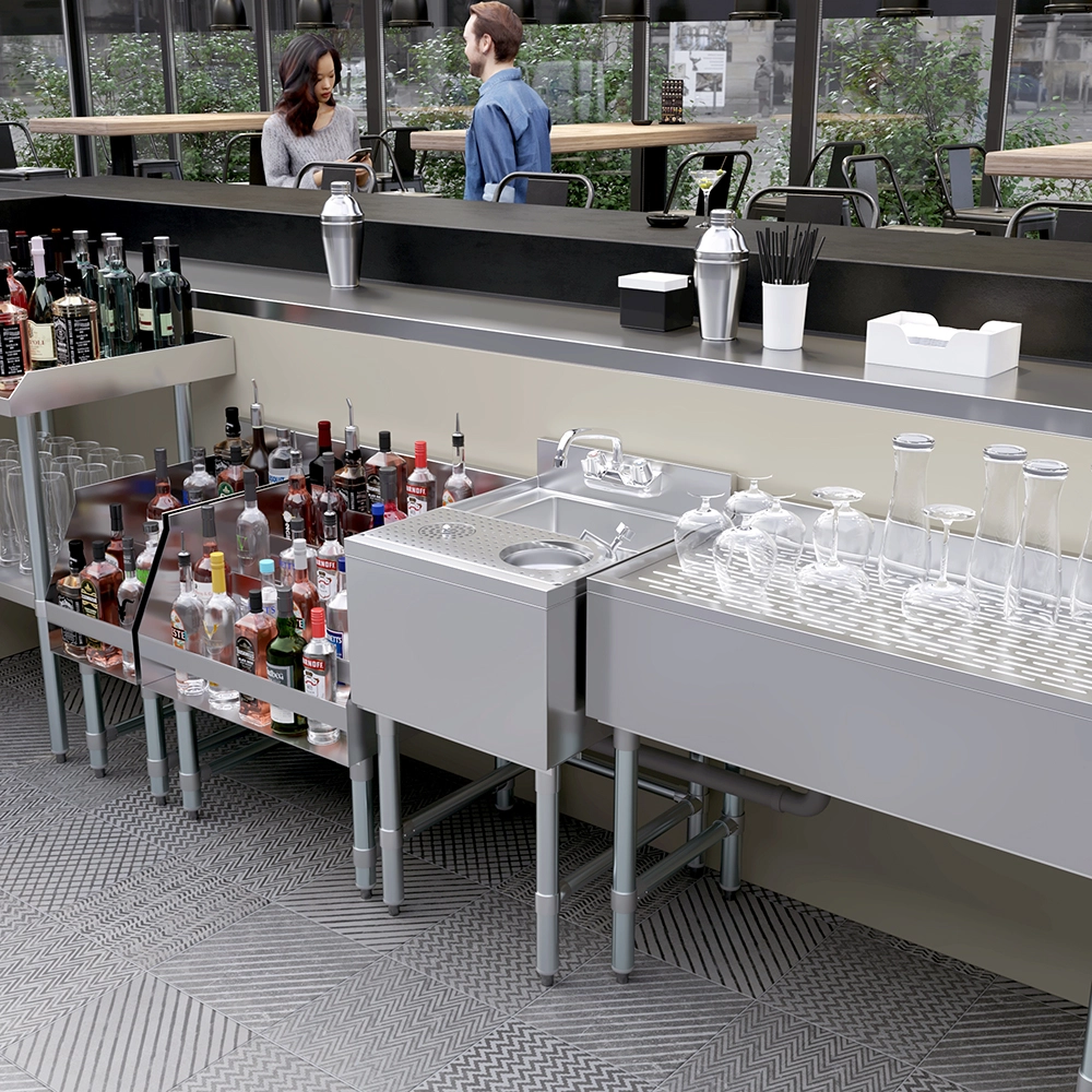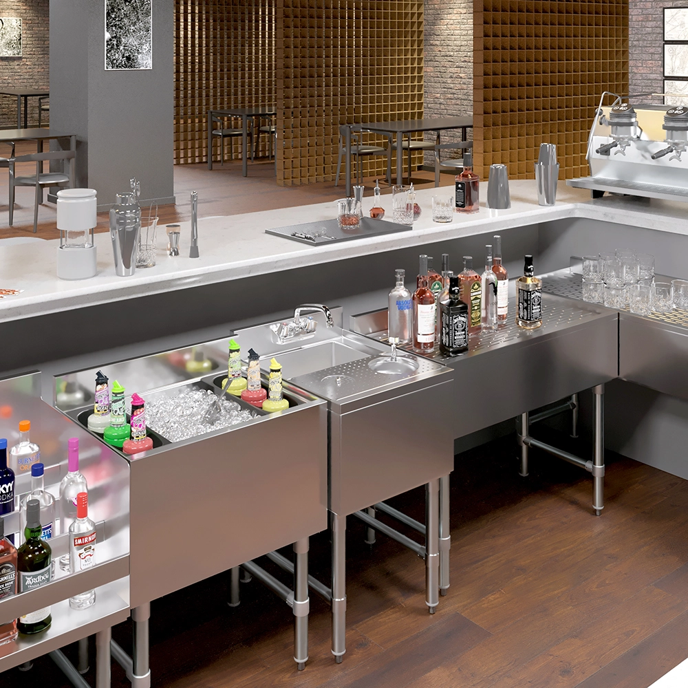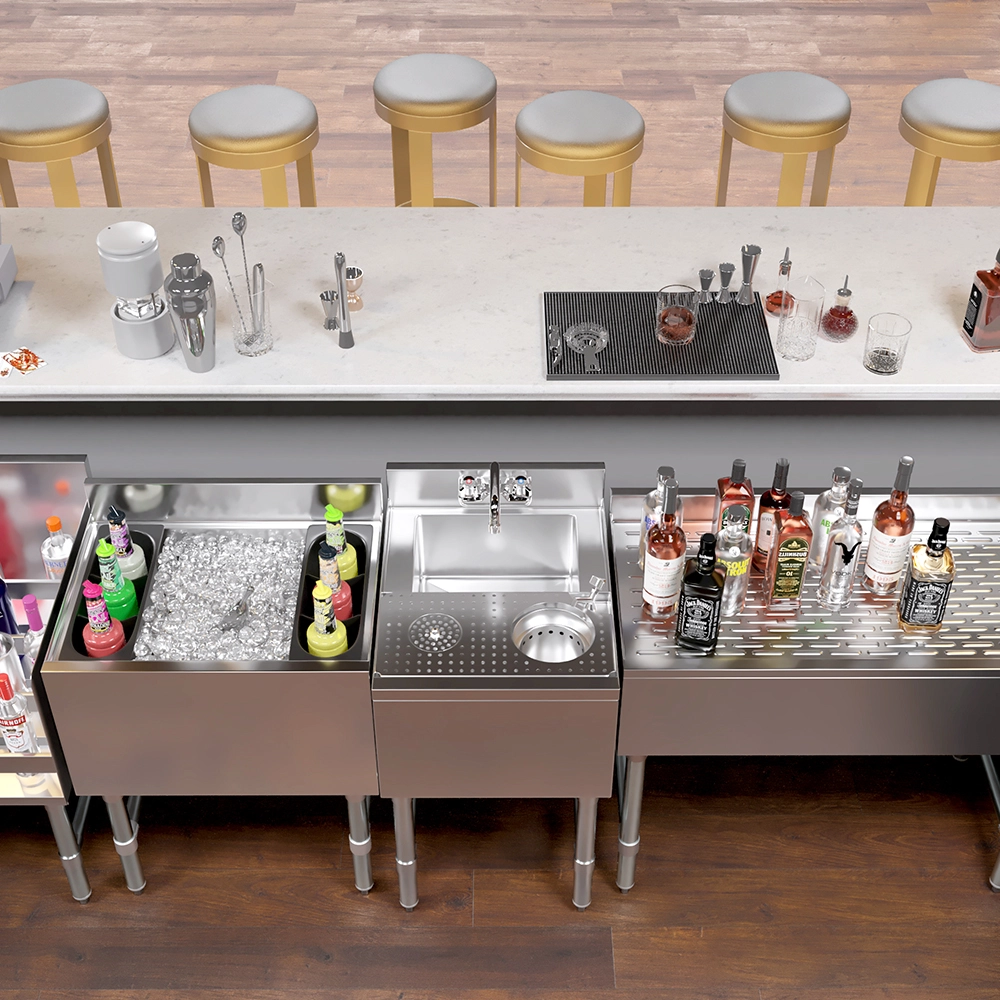 Designed for underbar installation, the 22 in. x 18 in. footprint conserves valuable workspace while enhancing efficiency behind the bar. Whether you’re serving cocktails in a high-volume venue or operating a small craft bar, this mixology station is a smart solution for maintaining cleanliness and speed in any beverage service operation.
