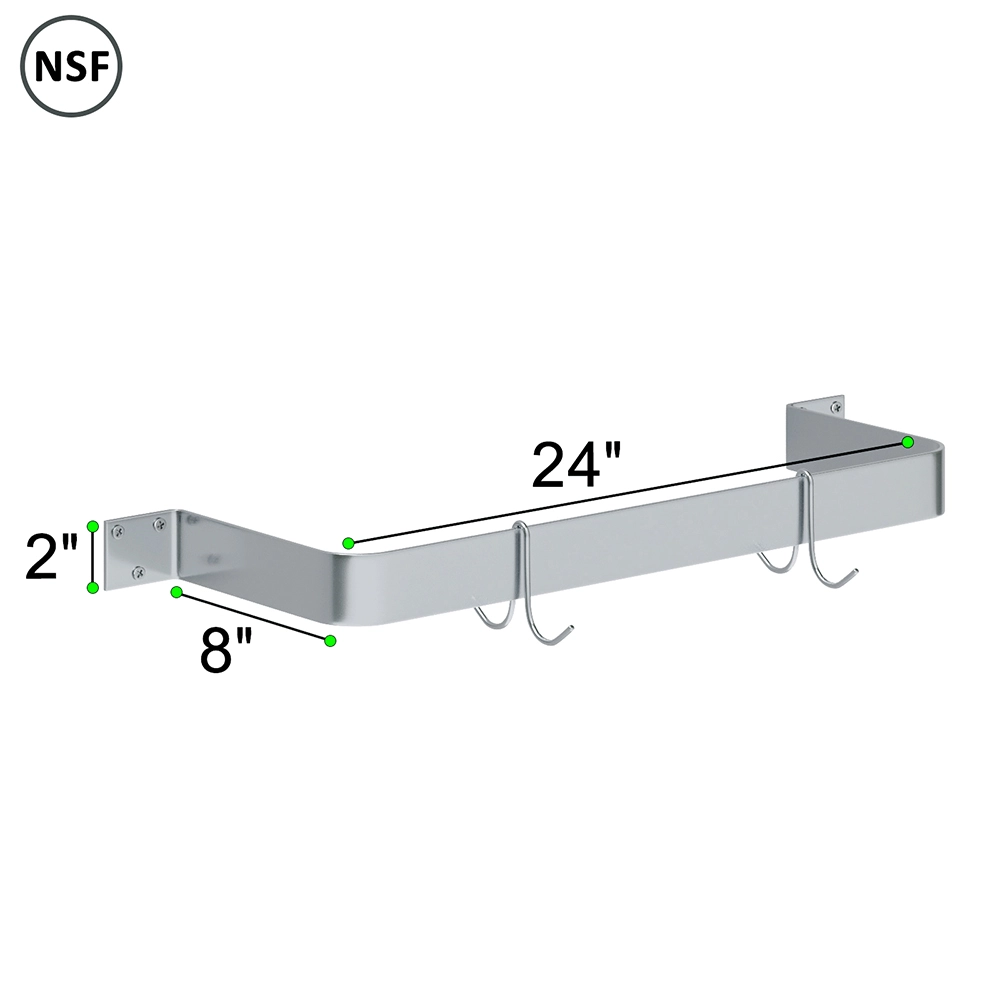Maximize your kitchen space with the 24 in. Wall-Mounted Stainless Steel Single-Line Pot Rack, designed to provide an efficient and durable solution for organizing cookware. Crafted from 18GA/430 stainless steel, this pot rack is built to resist corrosion, rust, and stains, ensuring long-lasting performance in both home and commercial kitchens.