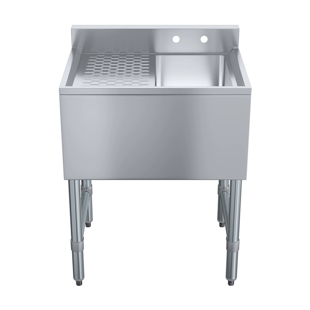 Designed for underbar installation, this unit fits neatly into compact spaces, making it an excellent choice for establishments with limited room. Easy to install and clean, the 24 in. x 19 in. underbar sink with left drainboard is a dependable and efficient addition to any foodservice operation seeking to improve productivity and cleanliness.