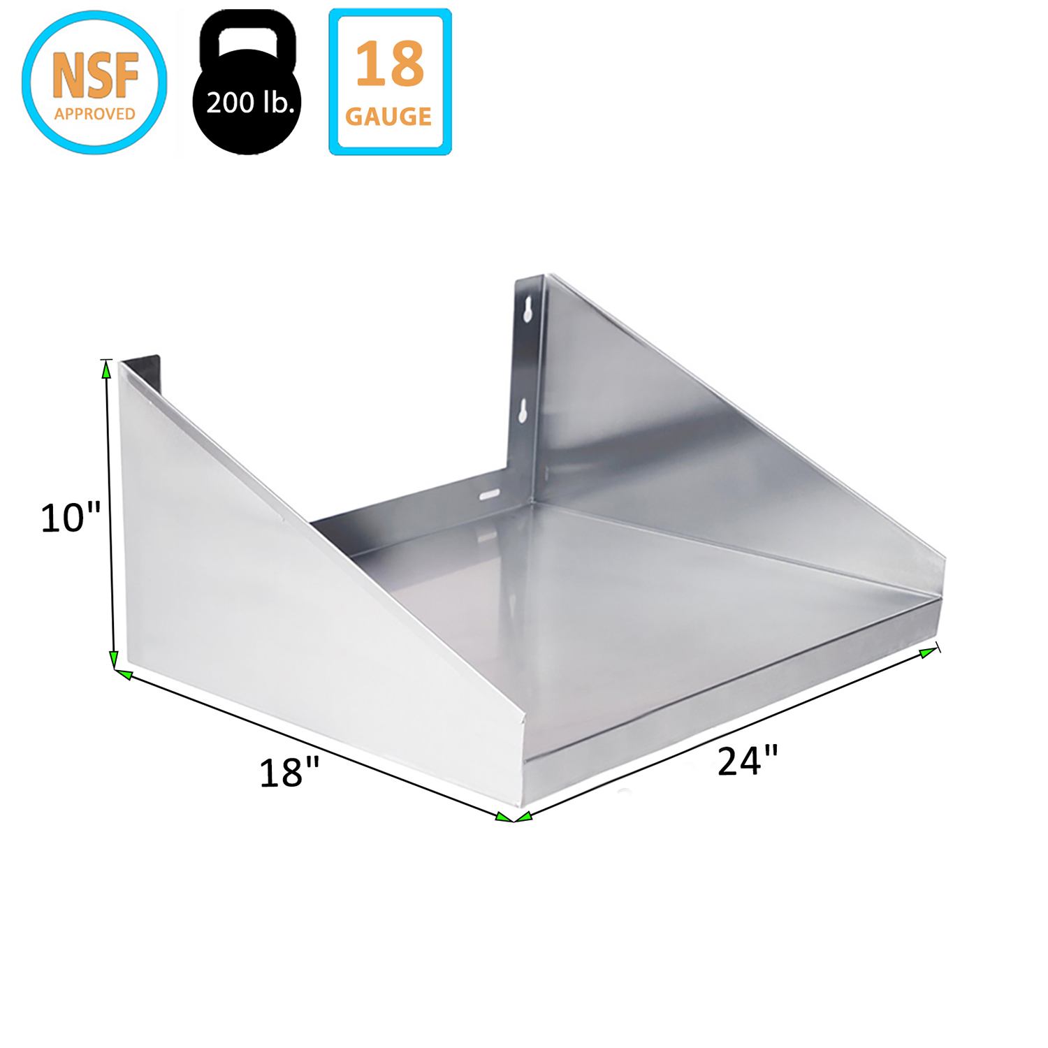 The shelf measures 24 inches in length and 18 inches in depth, providing ample space to store and display a variety of items, from kitchen utensils and appliances to tools and supplies. The addition of side guards is a thoughtful design feature that helps keep your items securely in place, preventing spills and ensuring a neat and orderly storage area. These side guards make the shelf particularly useful in busy kitchens, workshops, and other high-traffic areas where maintaining organization is crucial.