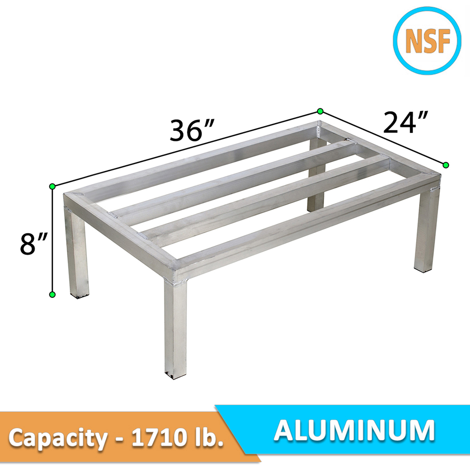 24″ Wide X 36″ Length X 8″ Height Aluminum Dunnage Rack