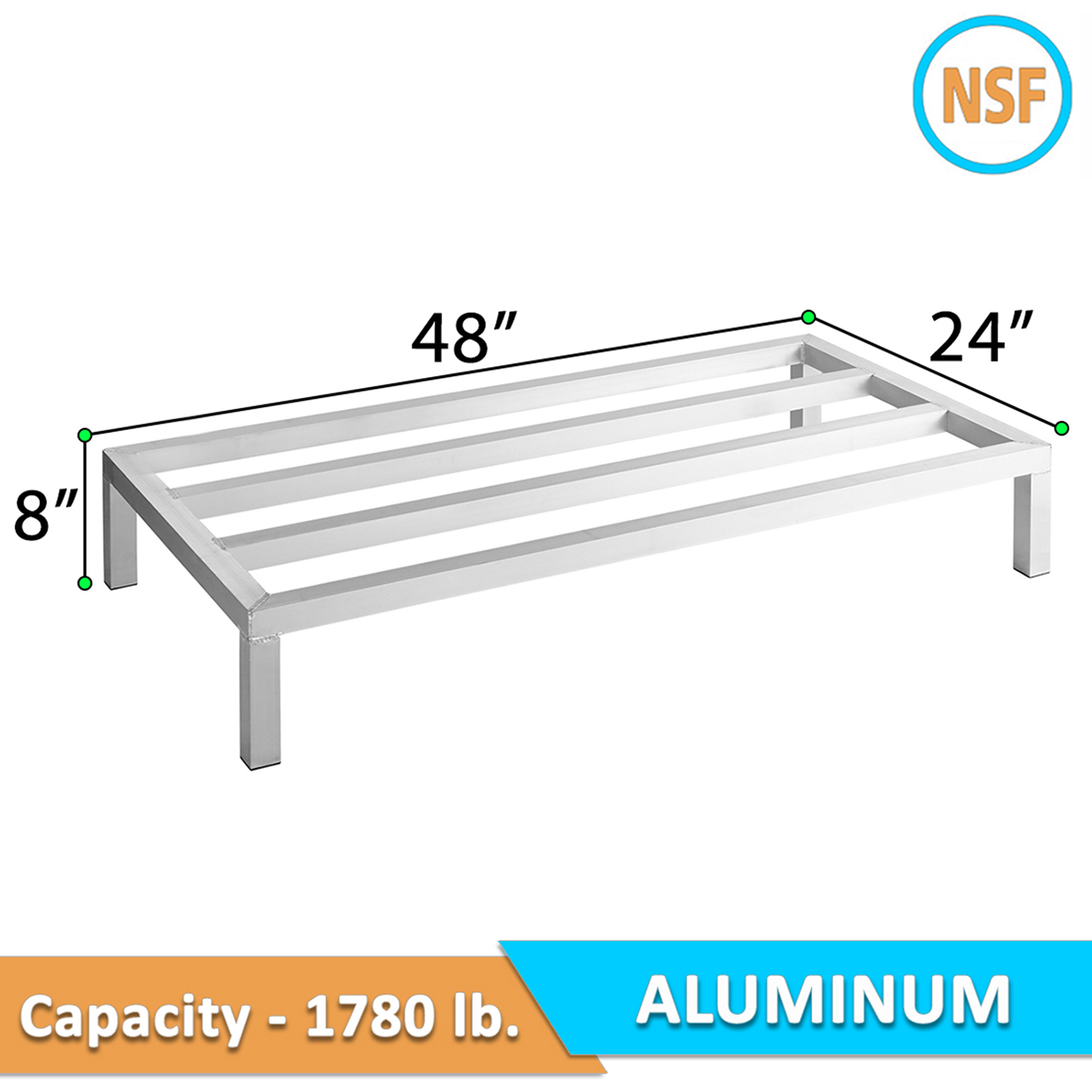 Introducing the 24″ Wide x 48″ Length x 8″ Height Aluminum Dunnage Rack, a premium storage solution designed to enhance the efficiency and organization of your commercial kitchen, warehouse, or storage room. Constructed from aluminum, this dunnage rack is built to last, offering exceptional, making it ideal for environments where durability and hygiene are paramount.