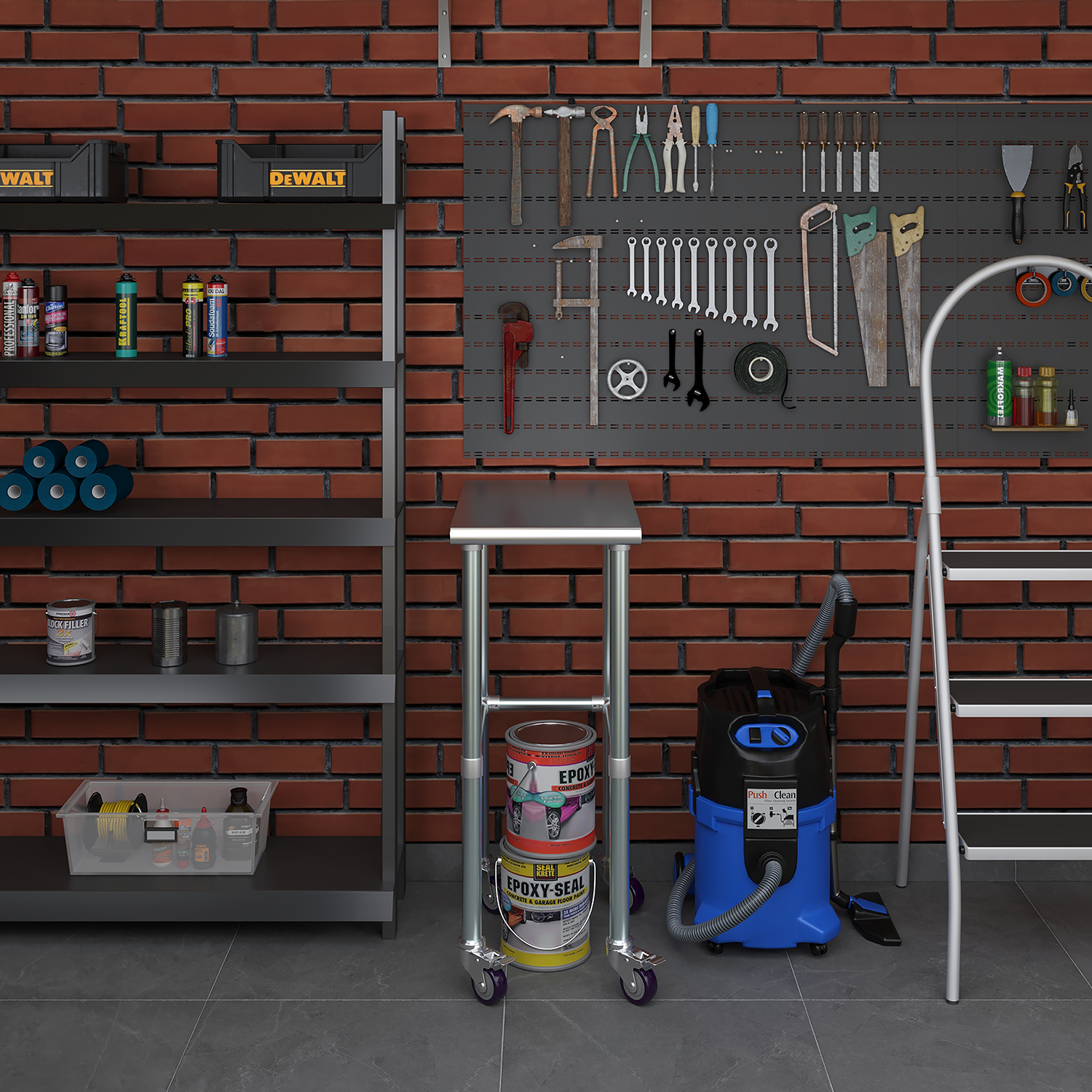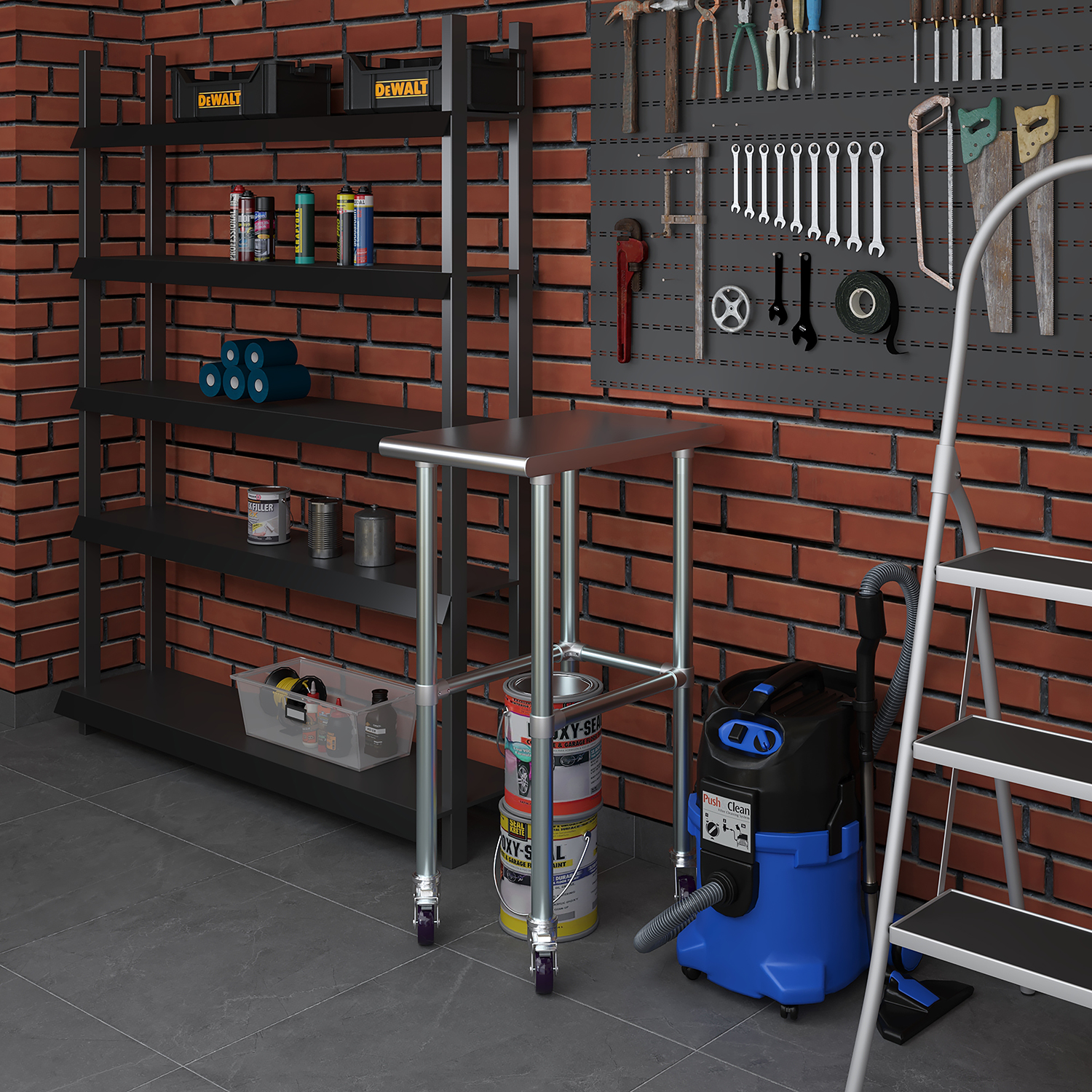 The compact dimensions of 24 inches by 15 inches make this work table an excellent choice for smaller spaces while still providing a robust and functional workspace. Despite its compact footprint, the table offers ample space for a variety of tasks, from food preparation and assembly work to scientific experiments and crafting projects.