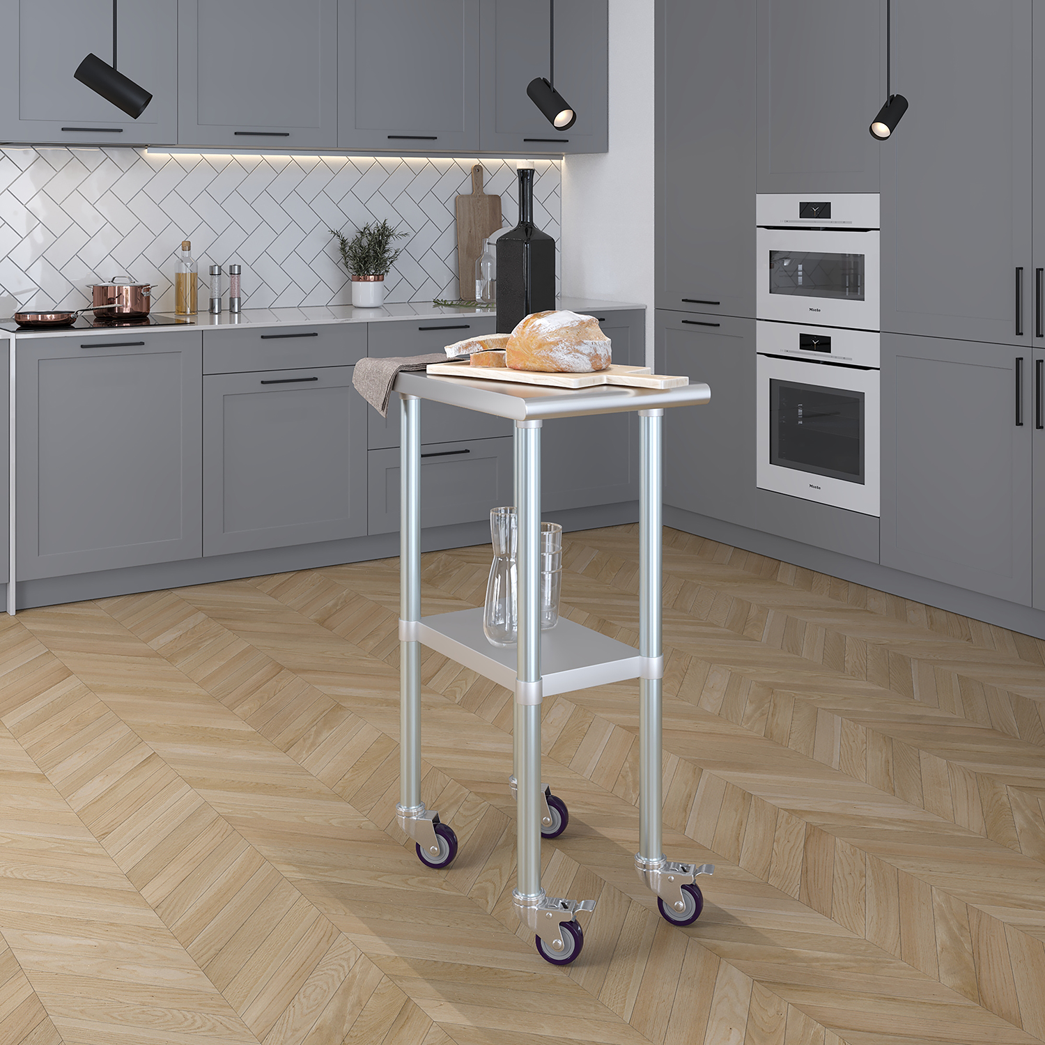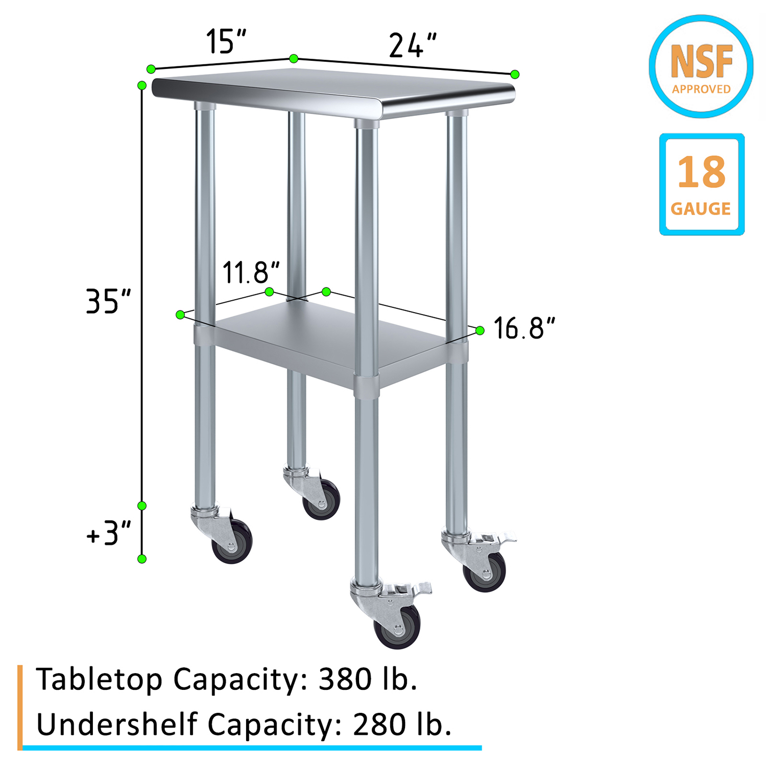 24″ X 15″ Stainless Steel Work Table With Undershelf & Wheels