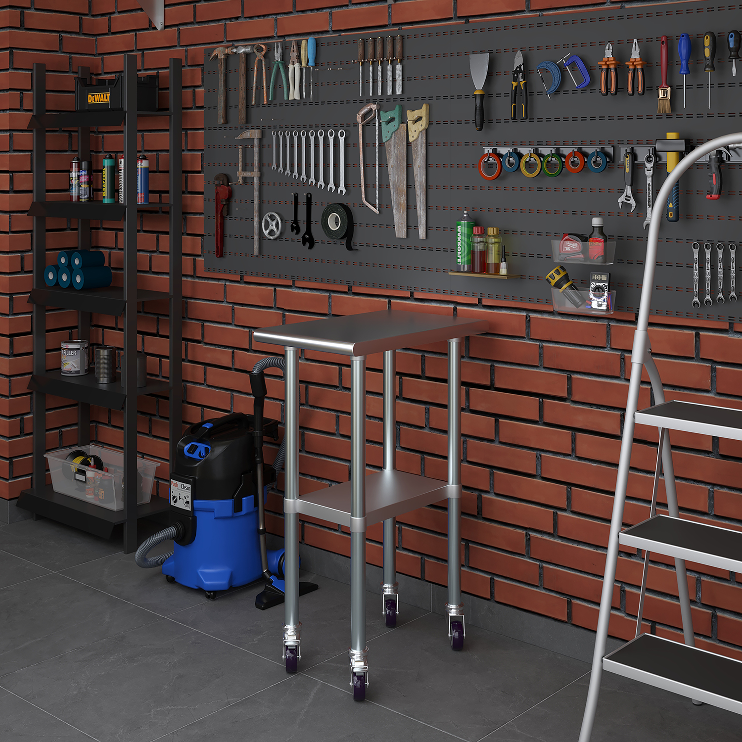 The compact dimensions of 24 inches by 15 inches make this work table an excellent choice for smaller spaces while still providing a robust and functional workspace. Despite its compact footprint, the table offers ample space for a variety of tasks, from food preparation and assembly work to scientific experiments and crafting projects.