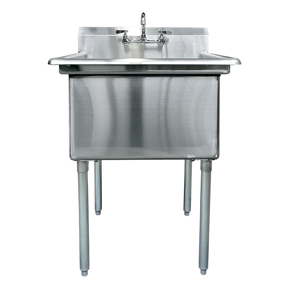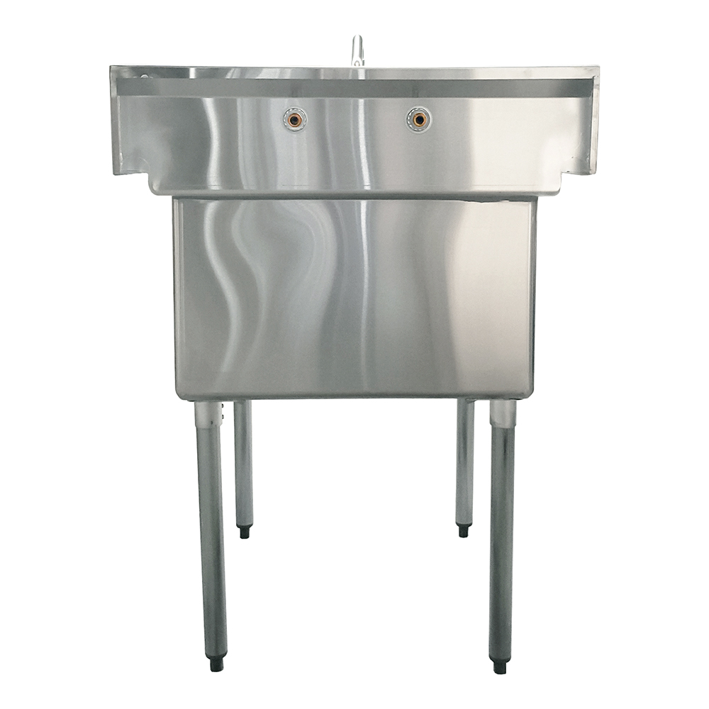 The sink boasts a spacious 24″ x 24″ compartment, designed to handle a variety of tasks such as washing dishes, rinsing produce, and prepping ingredients. The generous size makes it an ideal choice for busy environments where multiple tasks need to be performed efficiently and hygienically.