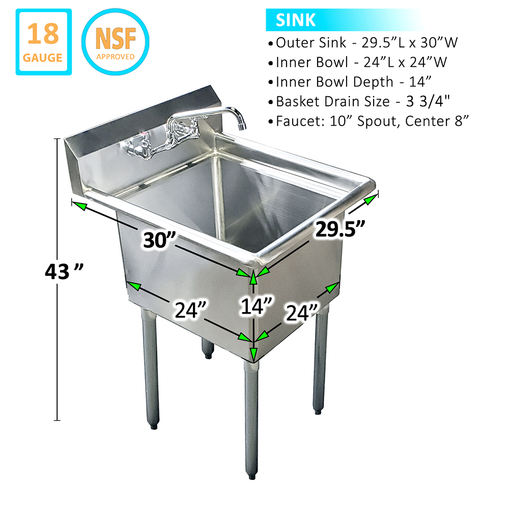 24″ X 24″ One Compartment Stainless Steel Prep & Utility Sink With Faucet