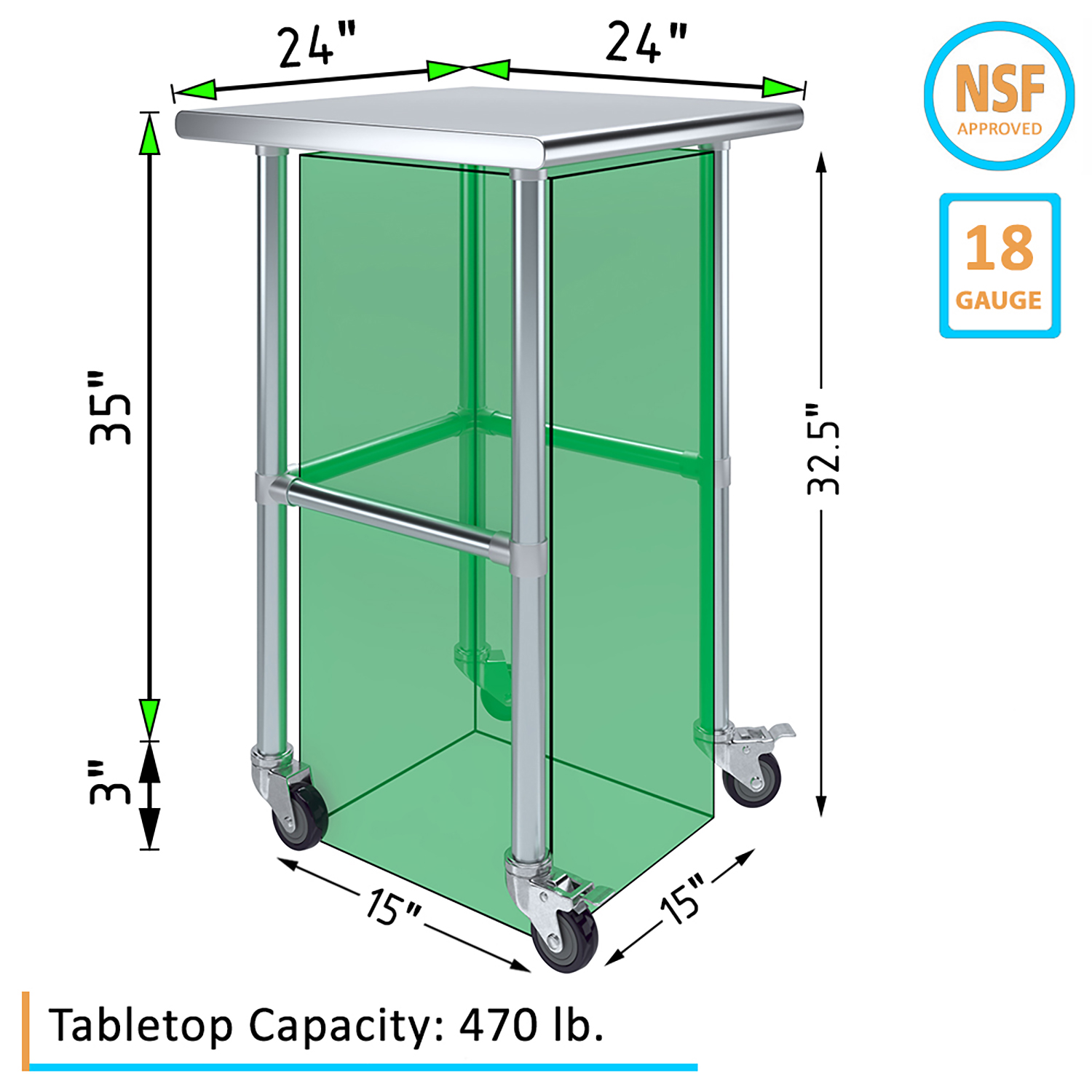 24″ X 24″ Stainless Steel Work Table With Open Base & Wheels