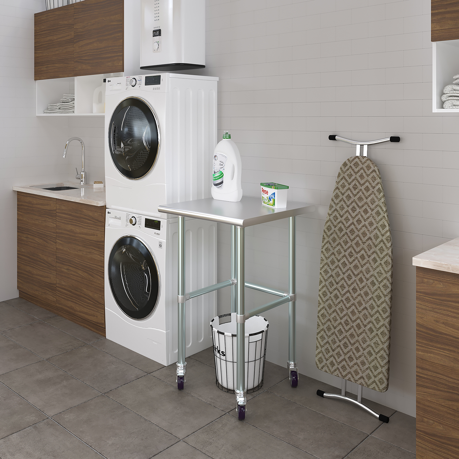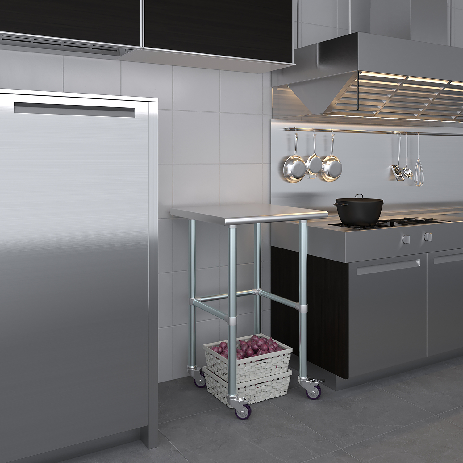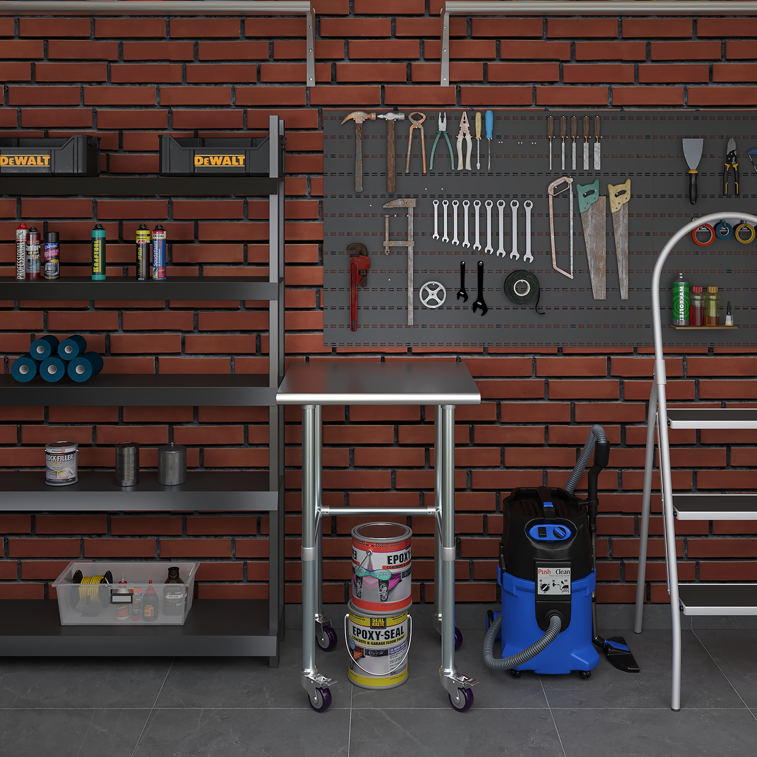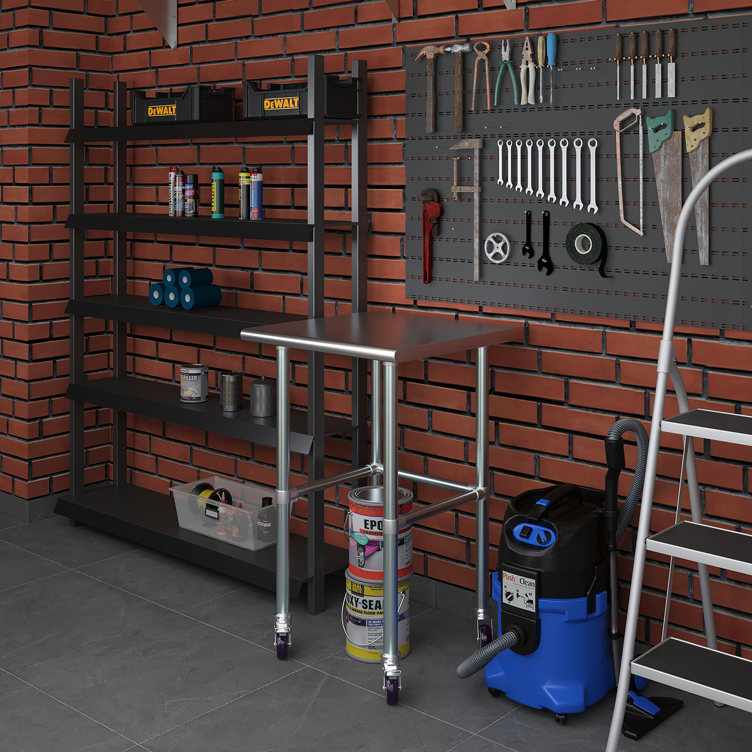 The compact dimensions of 24 inches by 24 inches make this work table an excellent choice for smaller spaces while still providing a robust and functional workspace. Despite its compact footprint, the table offers ample space for a variety of tasks, from food preparation and assembly work to scientific experiments and crafting projects.