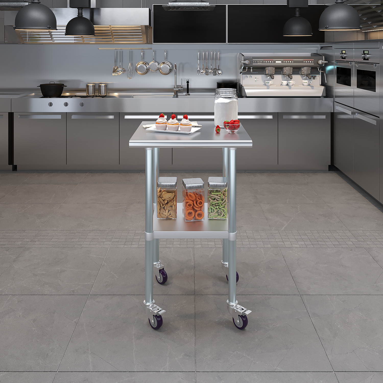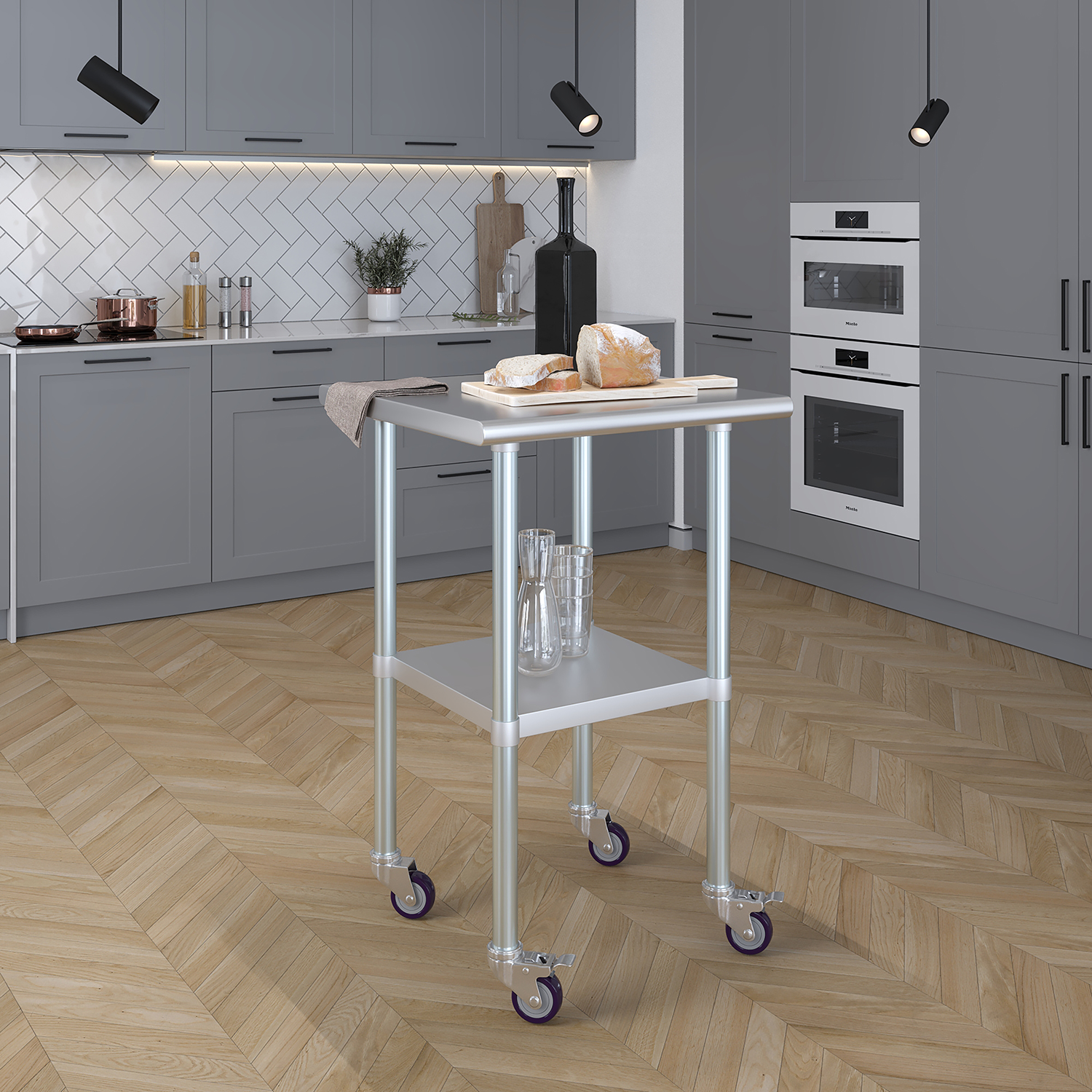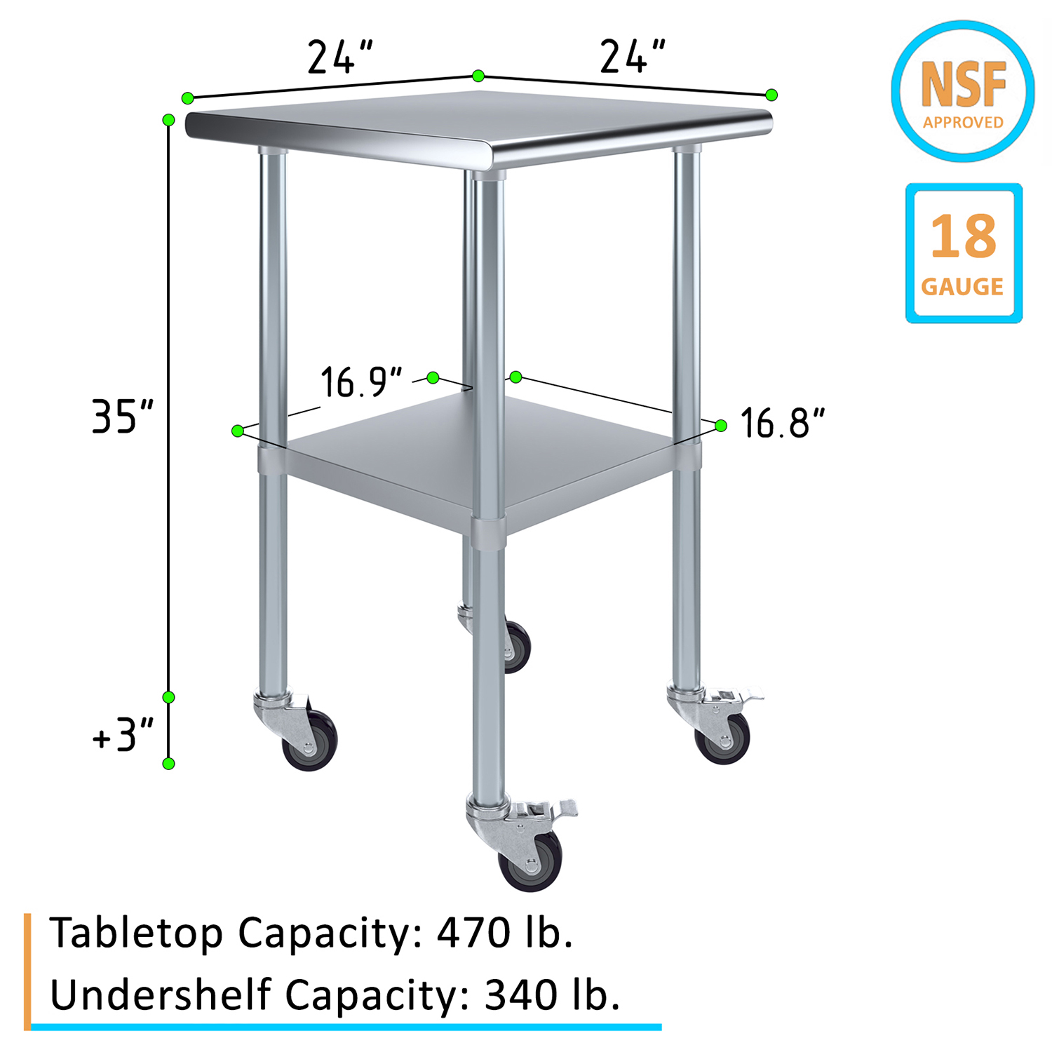 24″ X 24″ Stainless Steel Work Table With Undershelf & Wheels