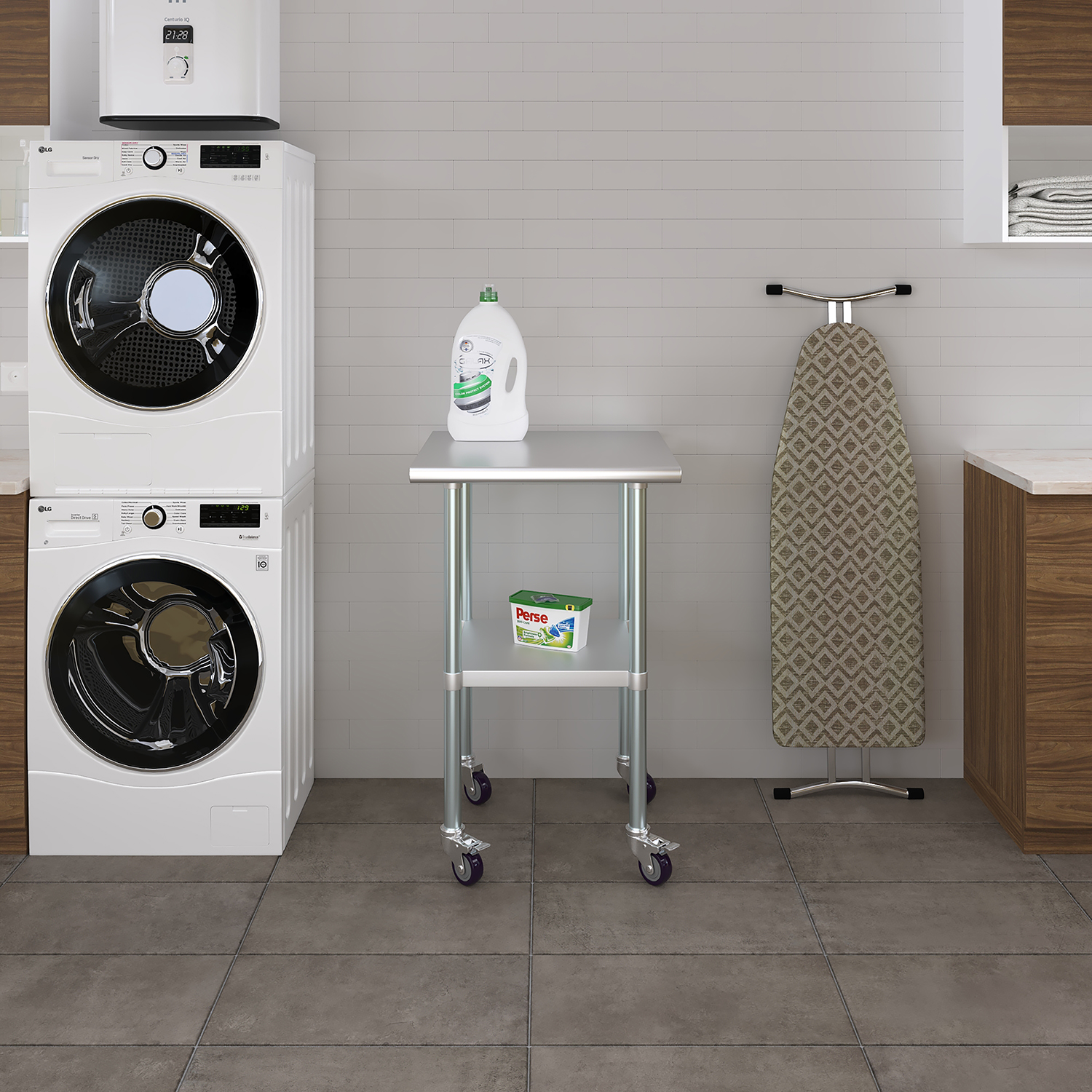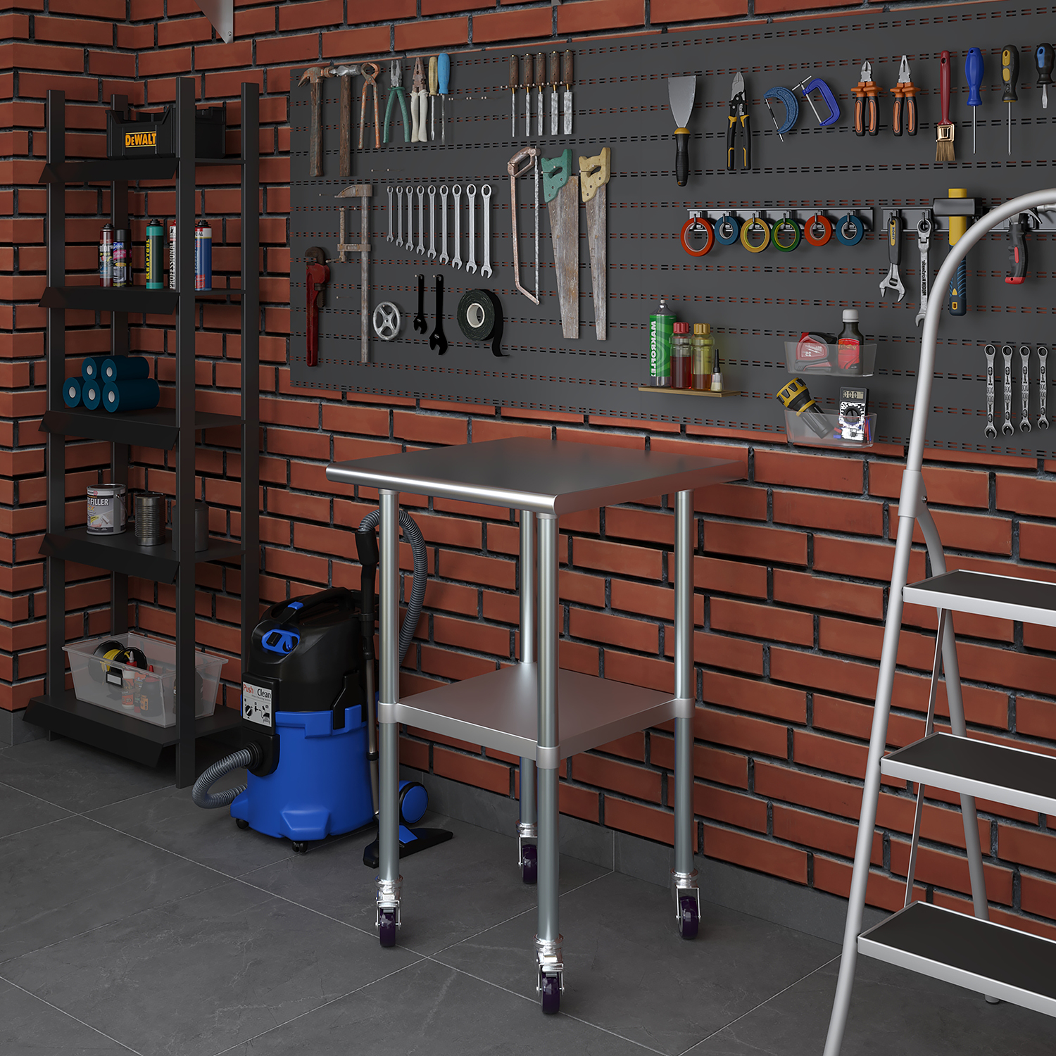 The compact dimensions of 24 inches by 24 inches make this work table an excellent choice for smaller spaces while still providing a robust and functional workspace. Despite its compact footprint, the table offers ample space for a variety of tasks, from food preparation and assembly work to scientific experiments and crafting projects.