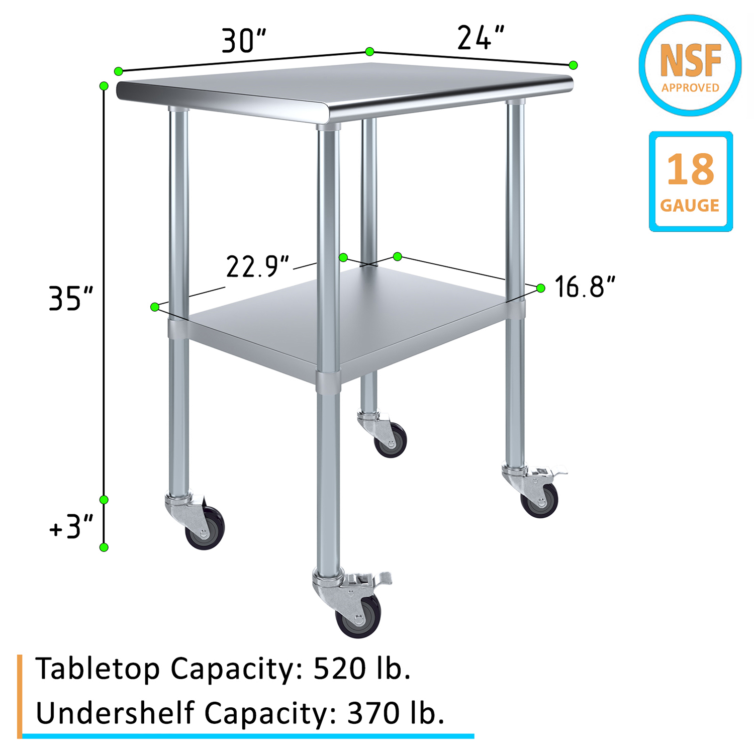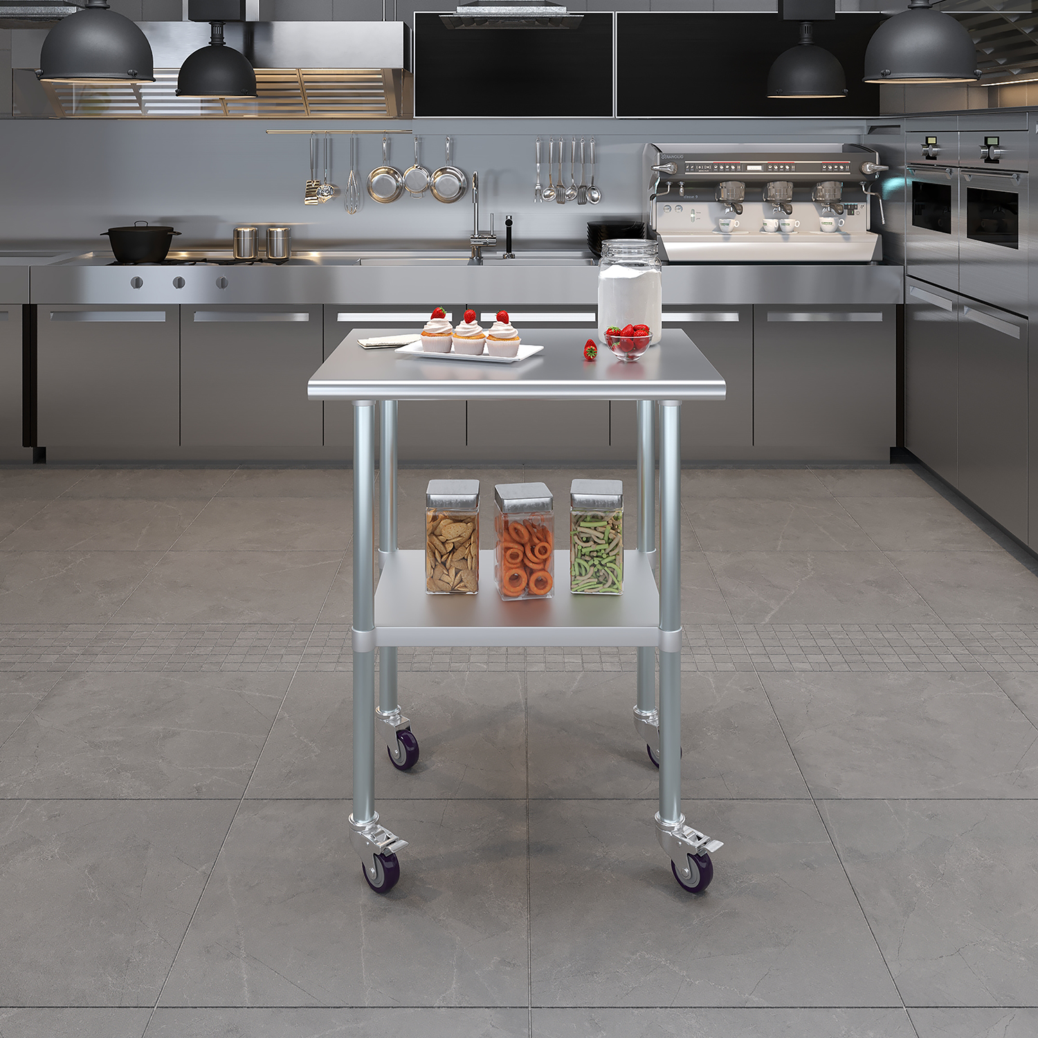 24″ X 30″ Stainless Steel Work Table With Undershelf & Wheels
