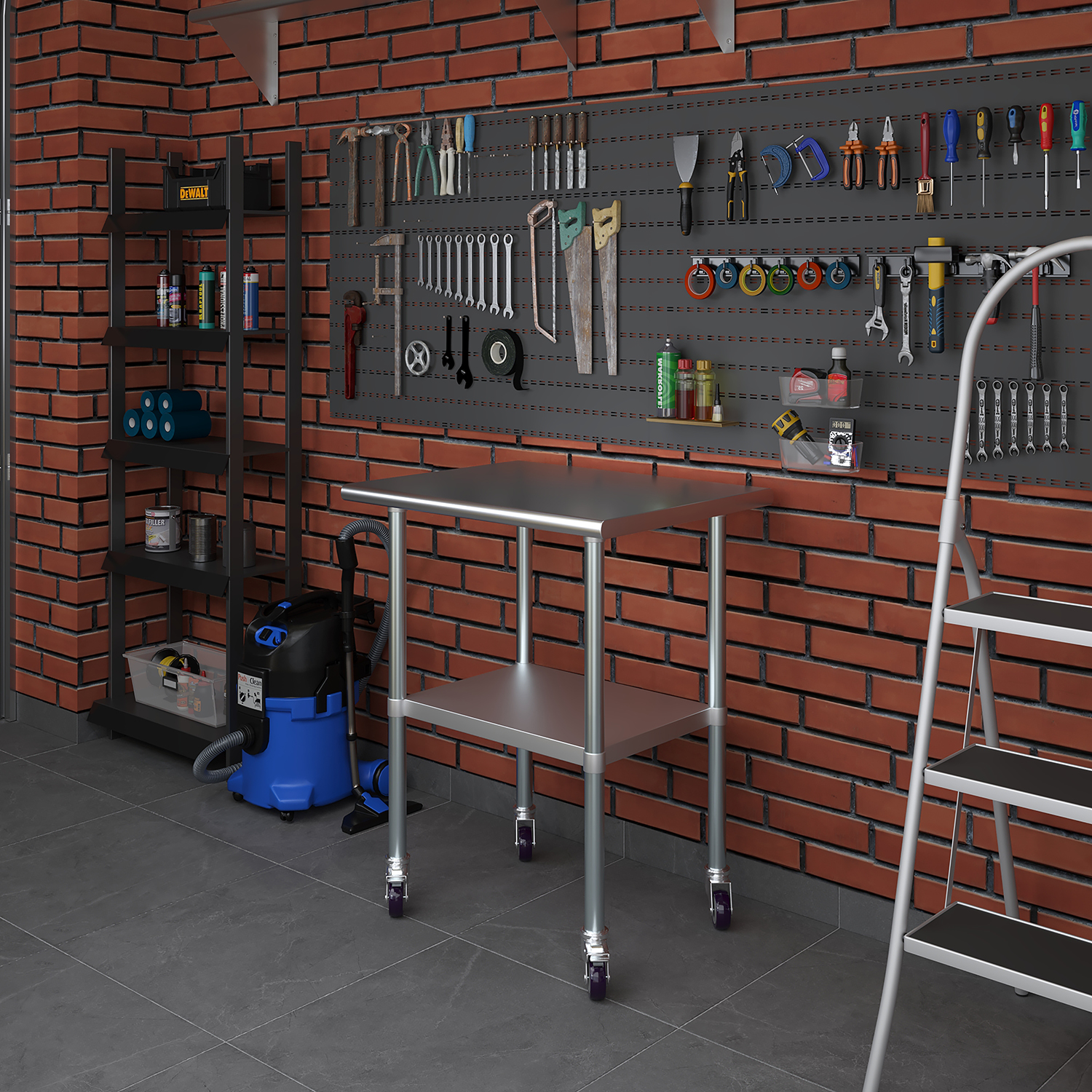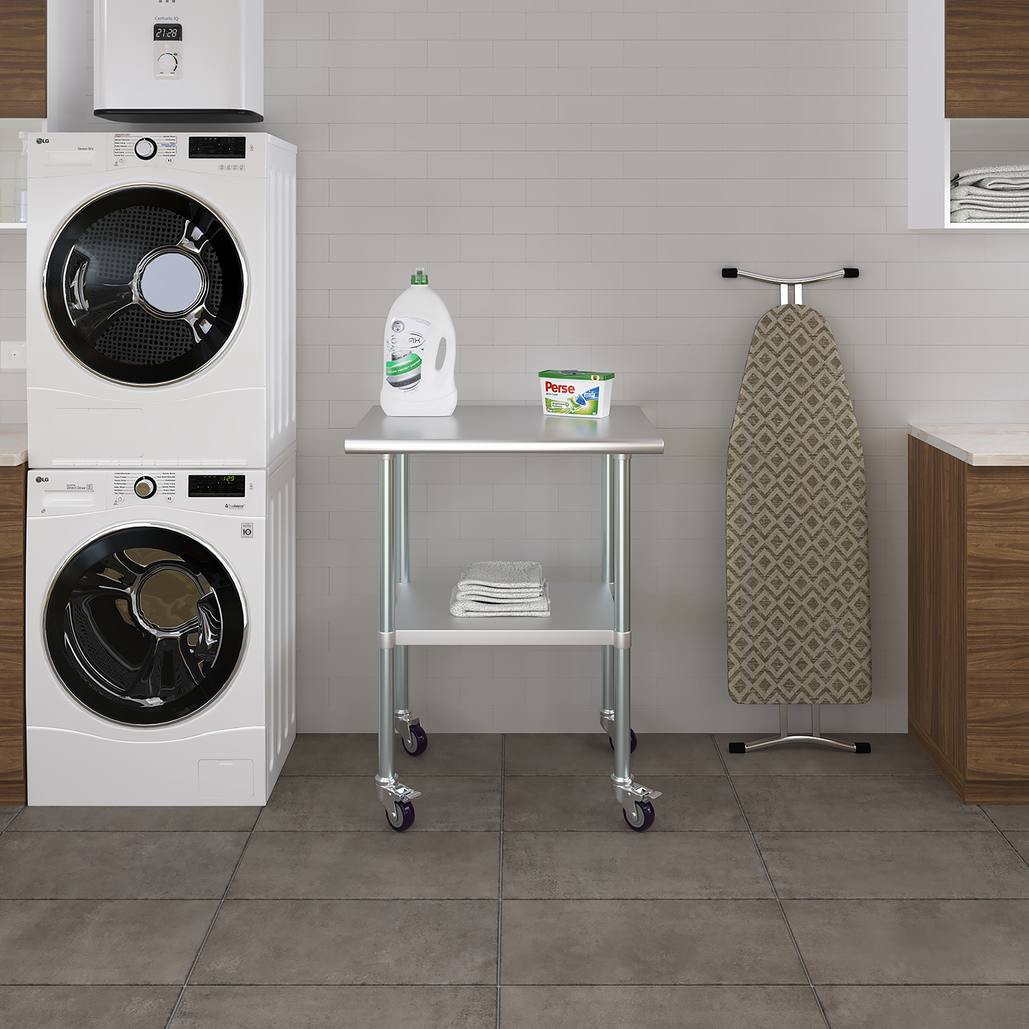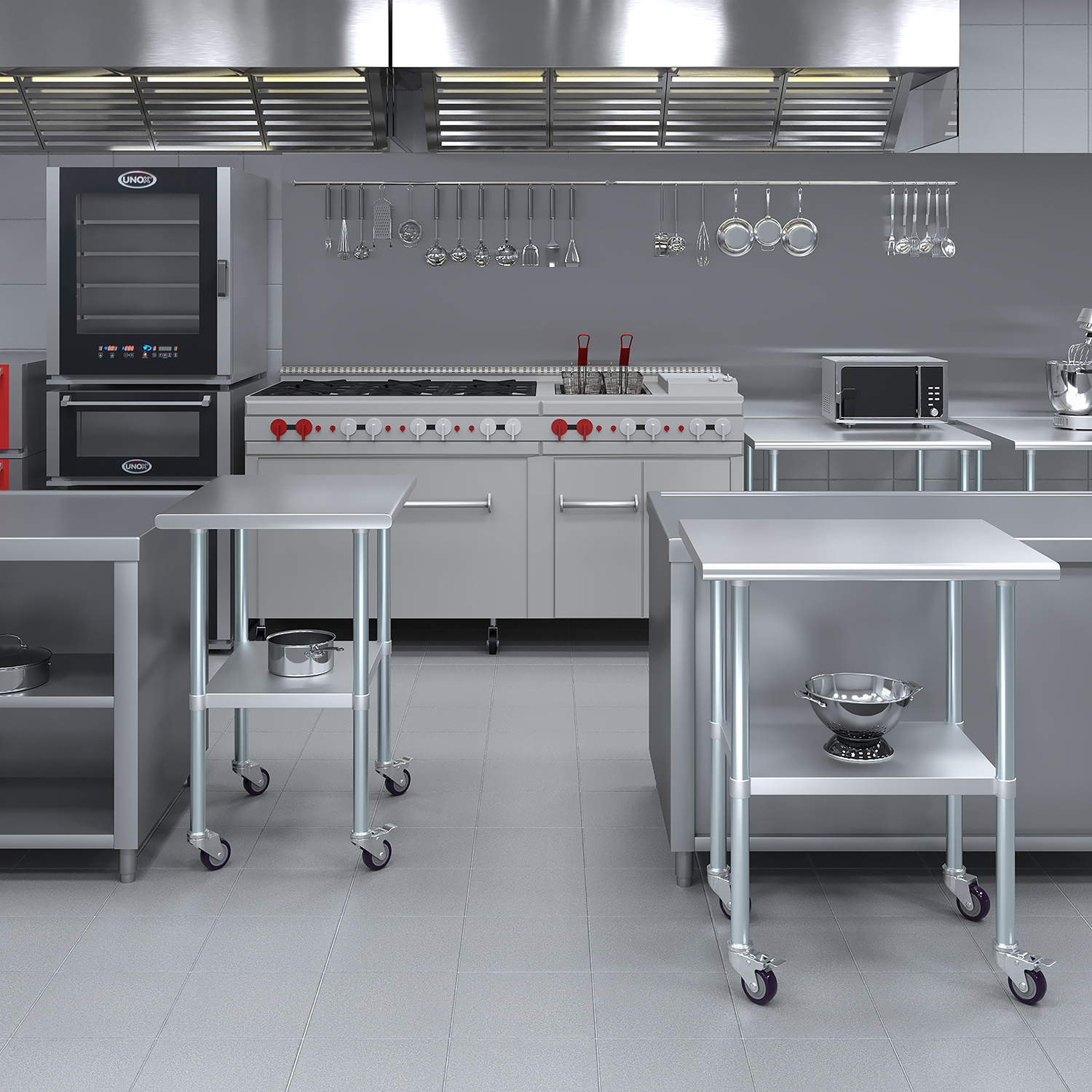 Upgrade your workspace with this versatile and practical work table that combines high functionality with contemporary design. Perfect for enhancing productivity and organization, the 24″ x 30″ Stainless Steel Work Table with Undershelf and Wheels is an indispensable asset for any professional setting, providing durability, convenience, and efficiency in a compact, mobile unit.