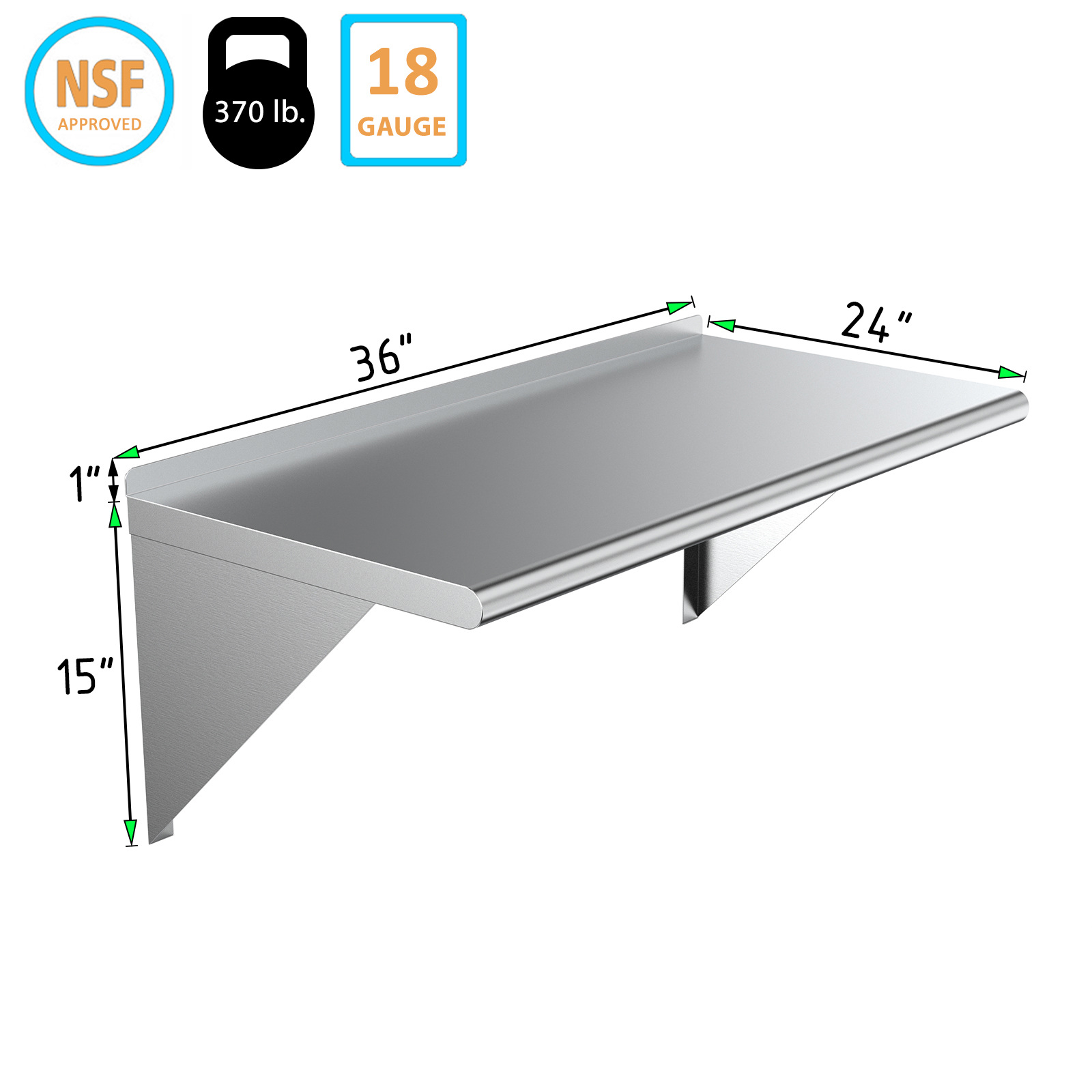 Enhance your space with our 24″ X 36″ Stainless Steel Wall Mount Shelf, a perfect blend of functionality and style. Designed for both residential and commercial use, this versatile shelf is ideal for kitchens, garages, workshops, and retail environments. Constructed from 18GA/430 stainless steel, it offers exceptional durability and a sleek, polished look that complements any décor.