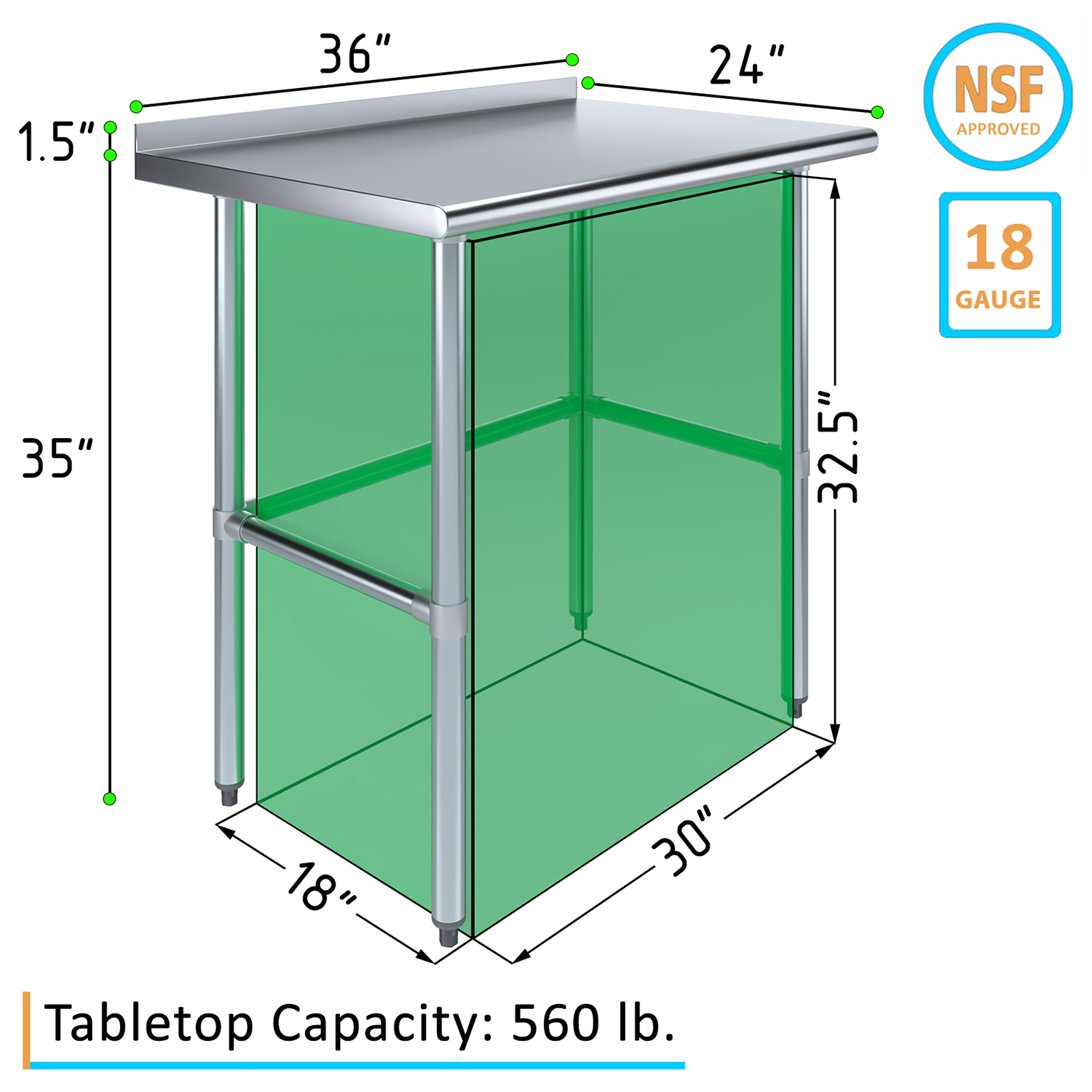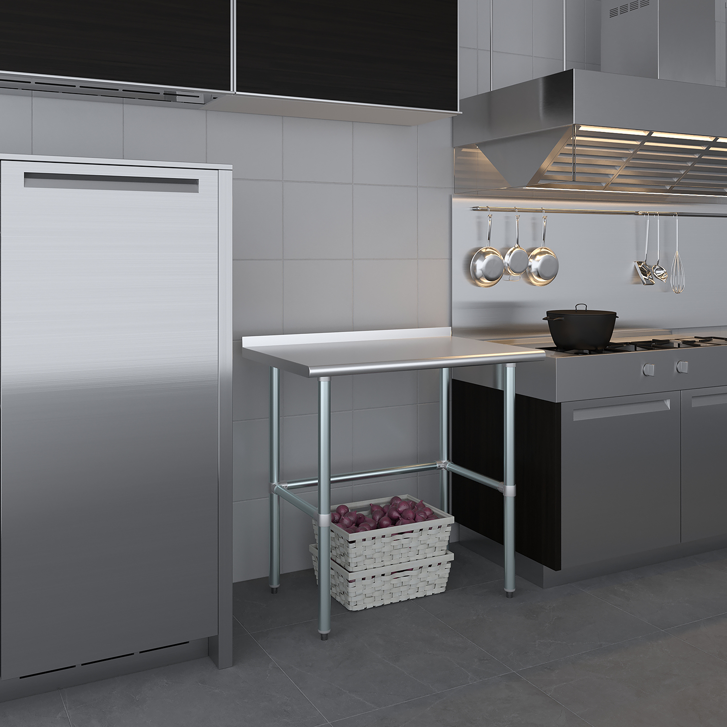 24″ X 36″ Stainless Steel Work Table Open Base with 1.5″ Backsplash