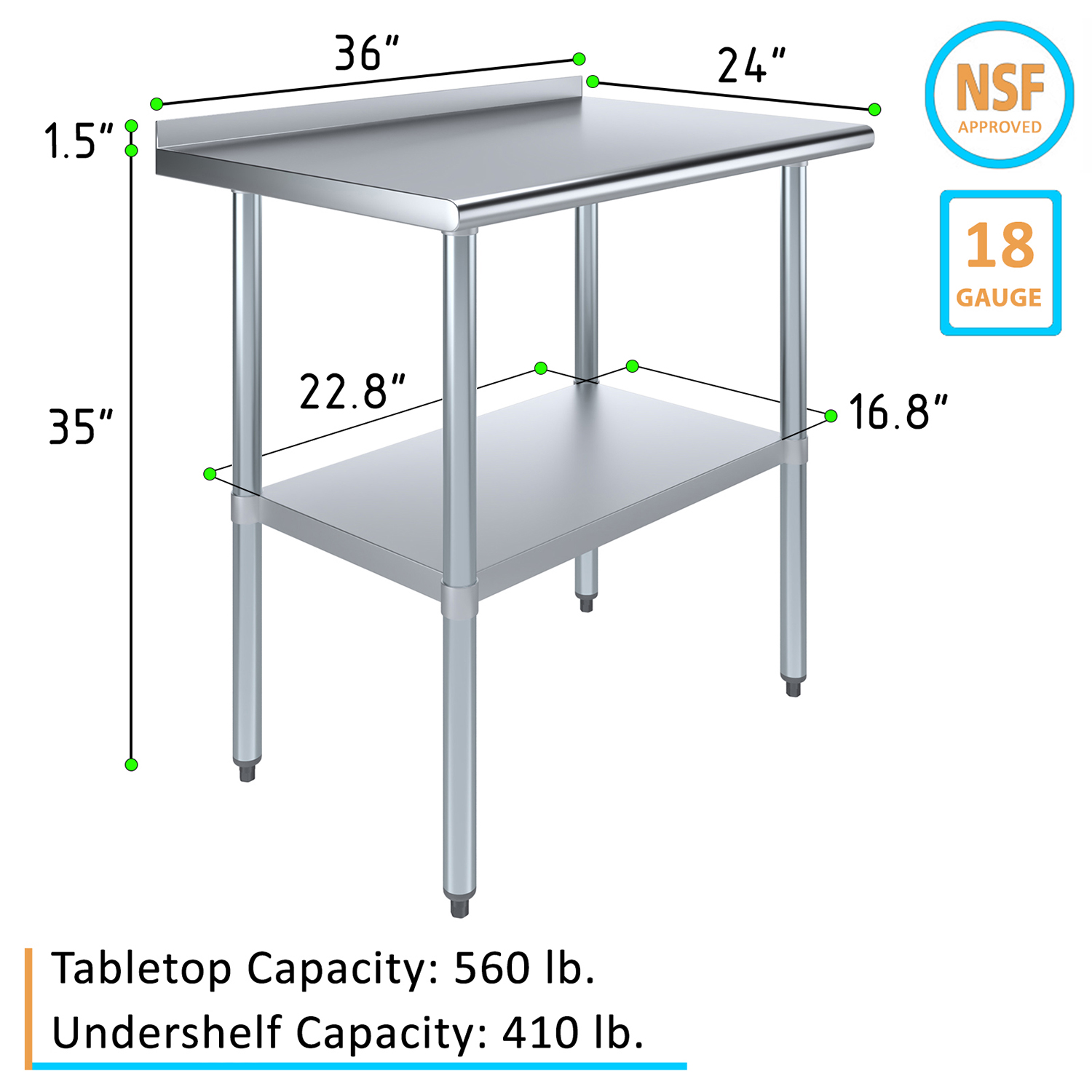 24″ X 36″ Stainless Steel Work Table with 1.5″ Backsplash