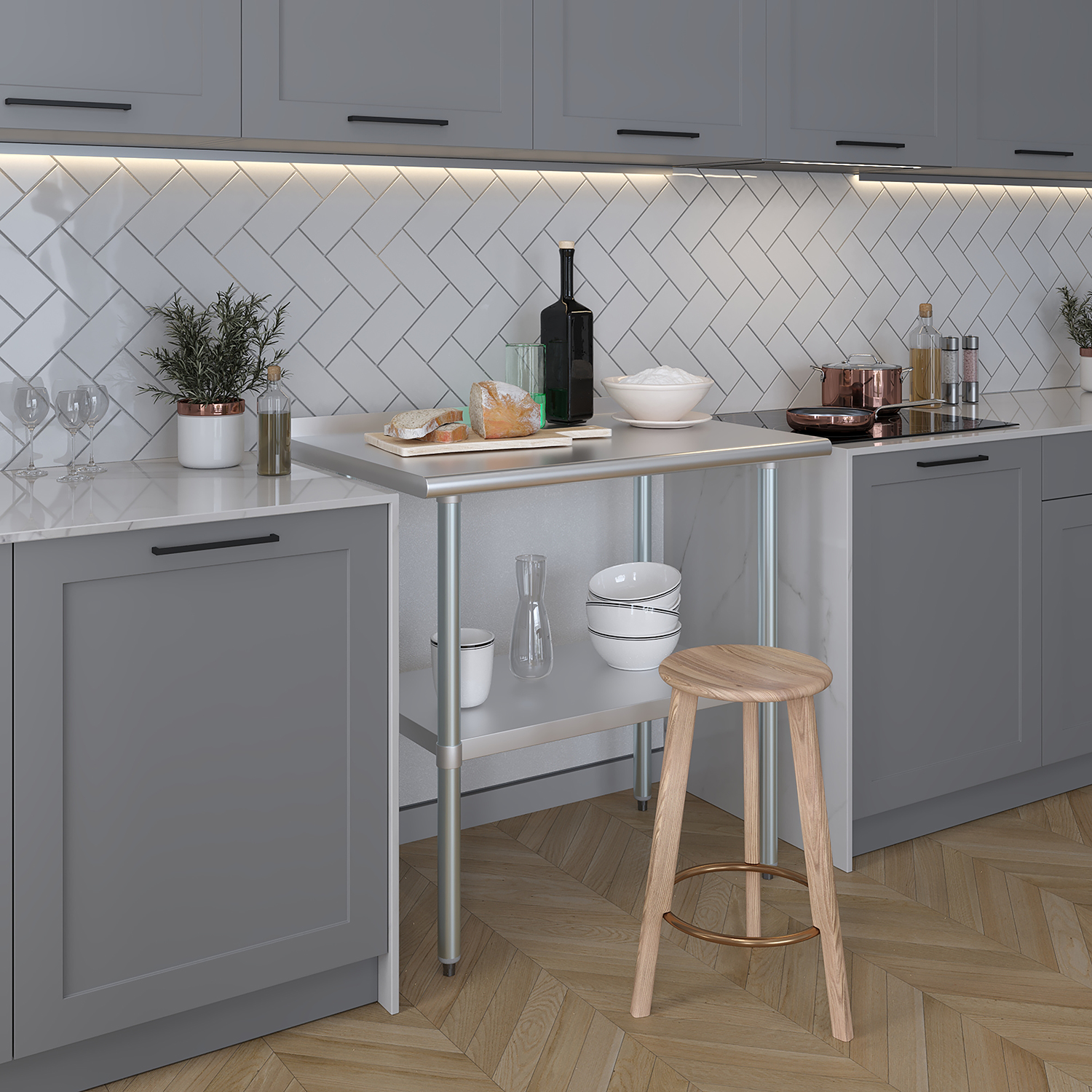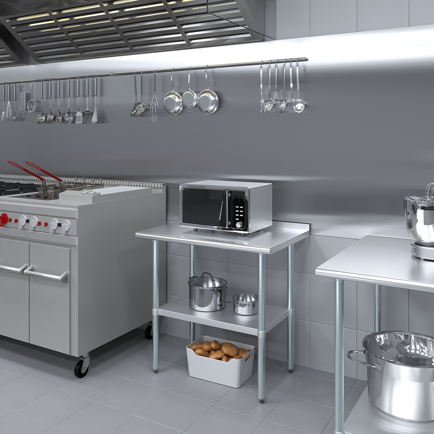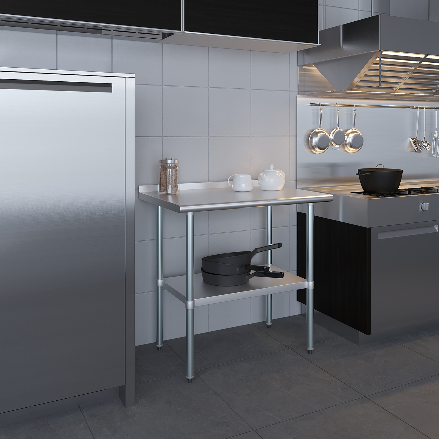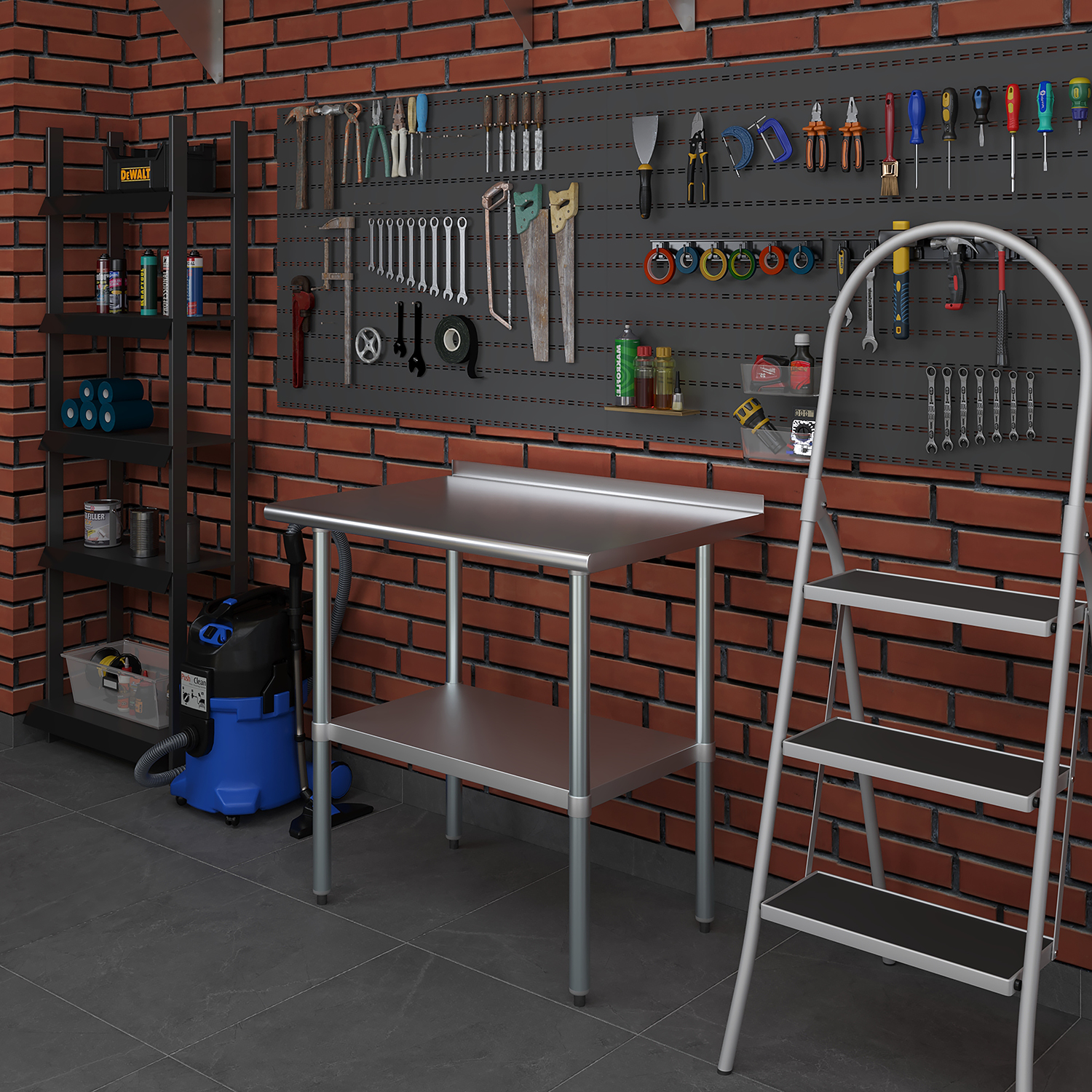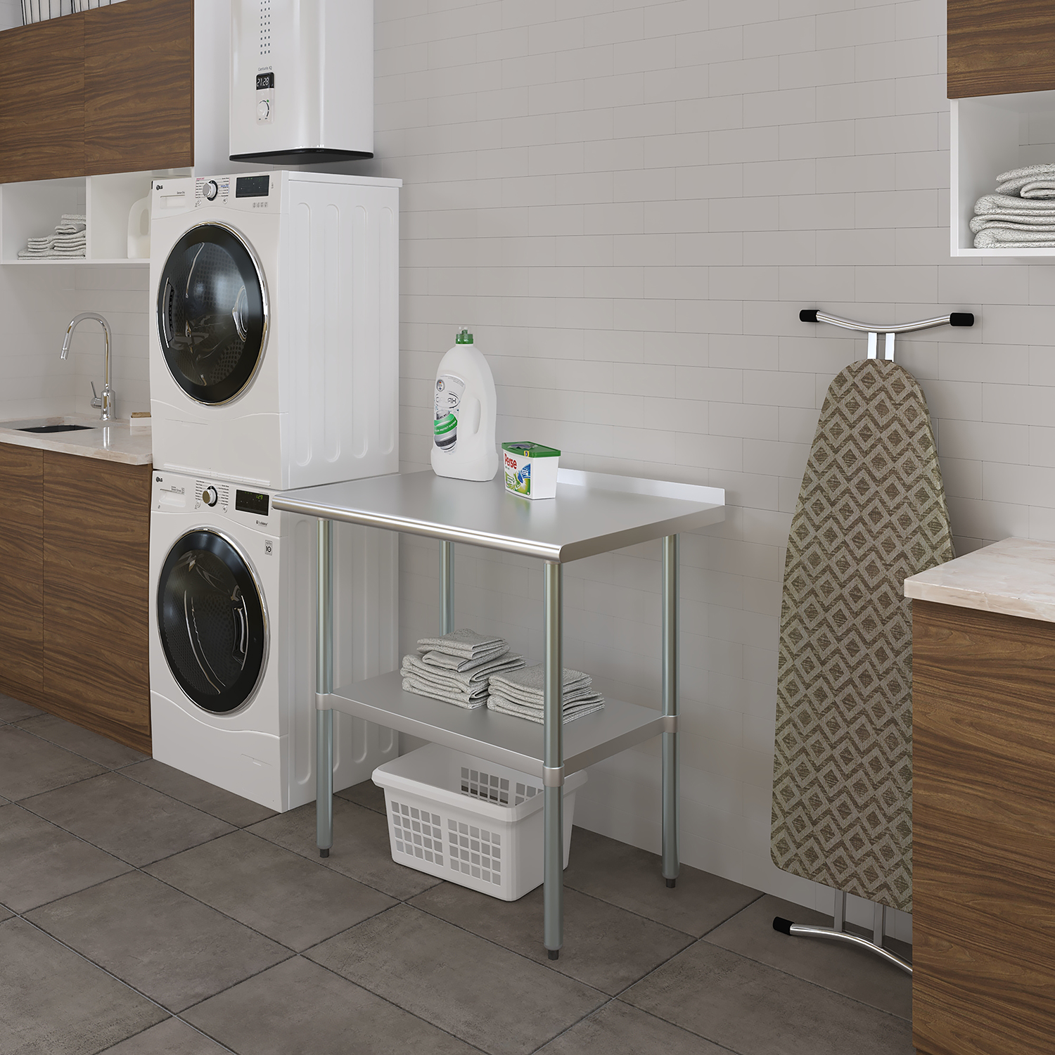 The 1.5″ backsplash is an essential feature, helping to contain spills and splashes, thus protecting your walls and maintaining a tidy and sanitary work area. This makes the table especially suitable for food preparation, as well as other tasks where cleanliness is paramount.