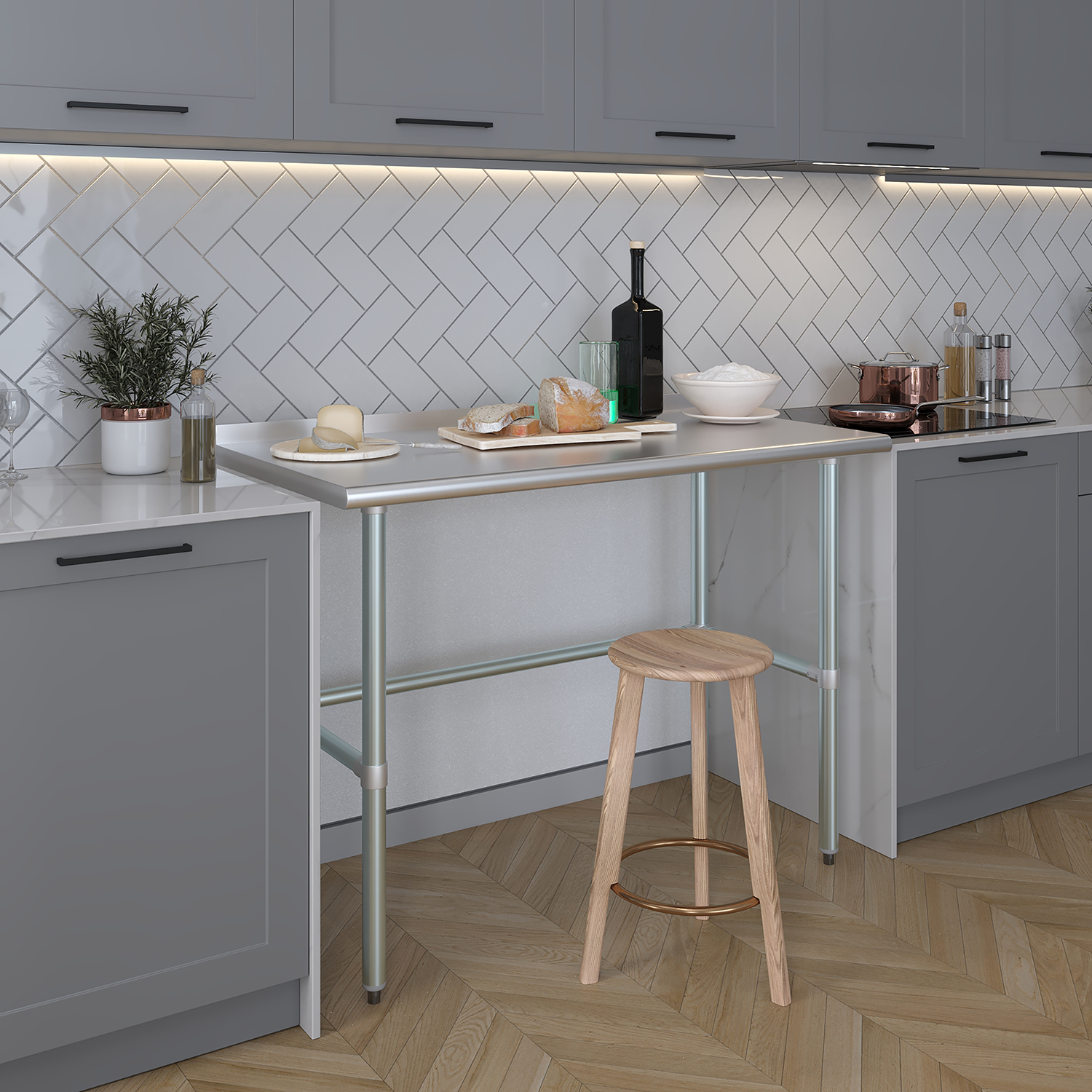 Measuring 24 inches by 48 inches, this work table provides an extended workspace that accommodates a variety of tasks. The generous length offers ample space for food preparation, assembly work, experiments, and other detailed projects. Despite its extensive size, the table maintains a compact design that fits well into different settings without occupying excessive space.