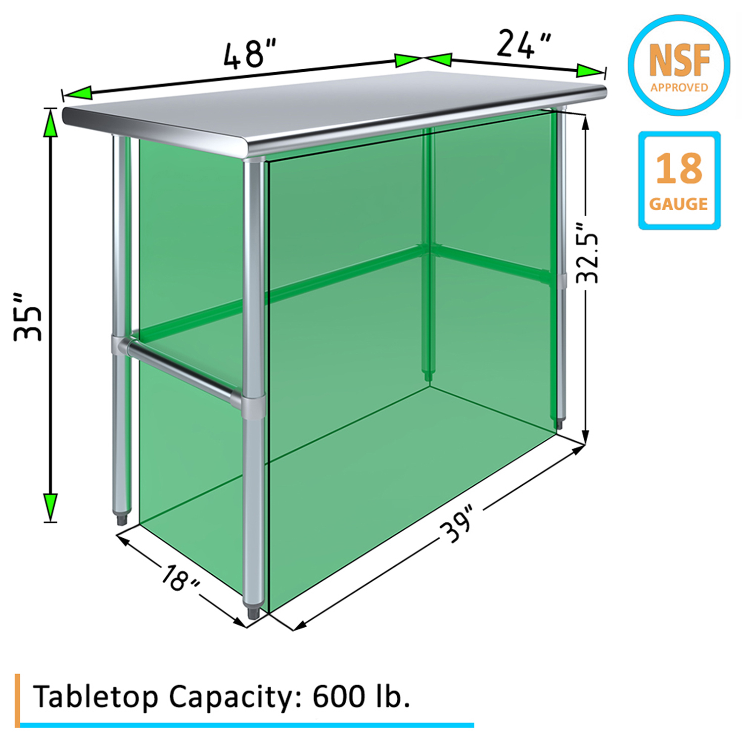 Enhance your workspace with the versatile and durable 24″ x 48″ Stainless Steel Work Table with Open Base. Crafted from 18GA/430 stainless steel, this work table is designed to withstand the rigors of daily use in commercial kitchens, workshops, laboratories, and other demanding environments. Its sleek, smooth surface is not only easy to clean but also resistant, ensuring long-lasting performance and hygiene.