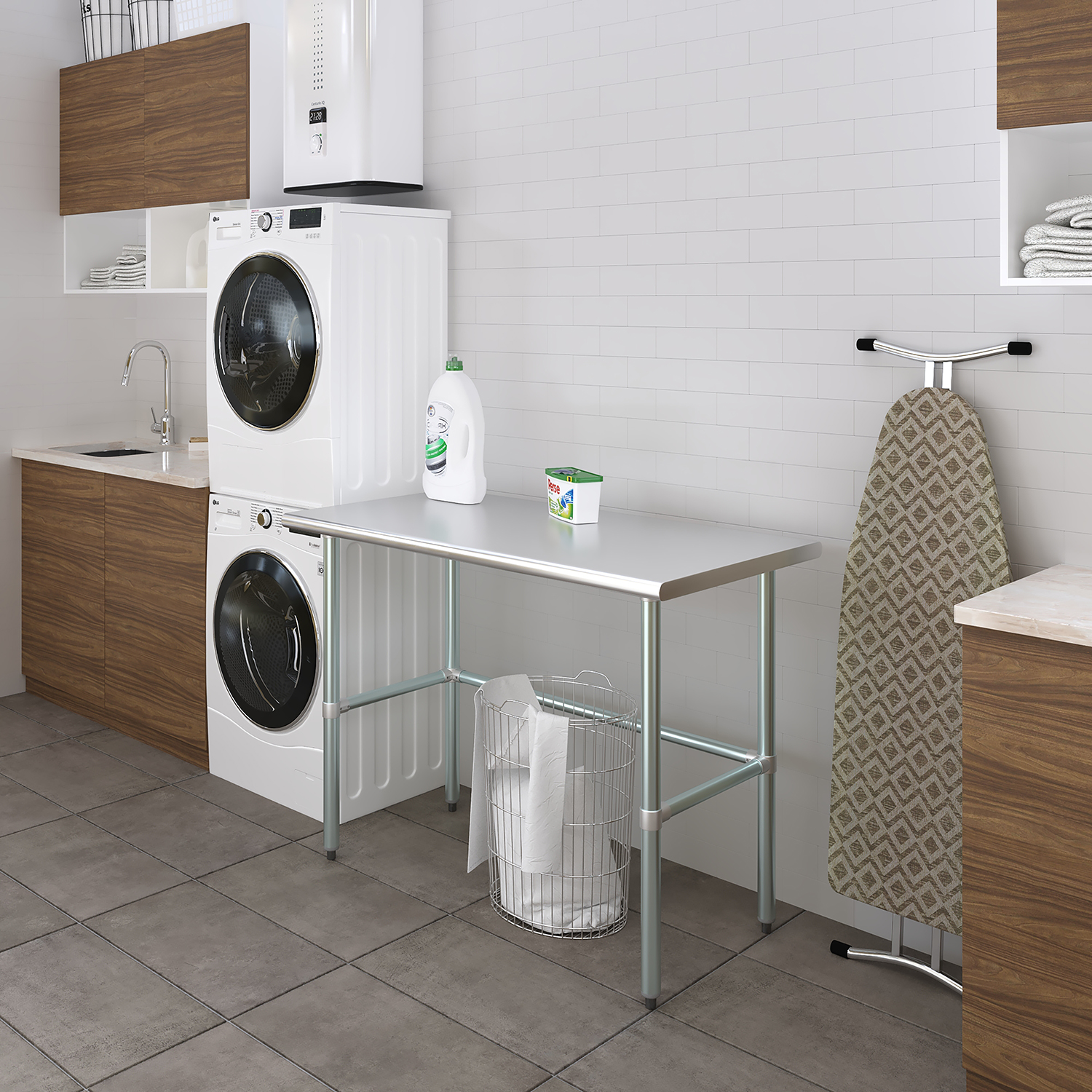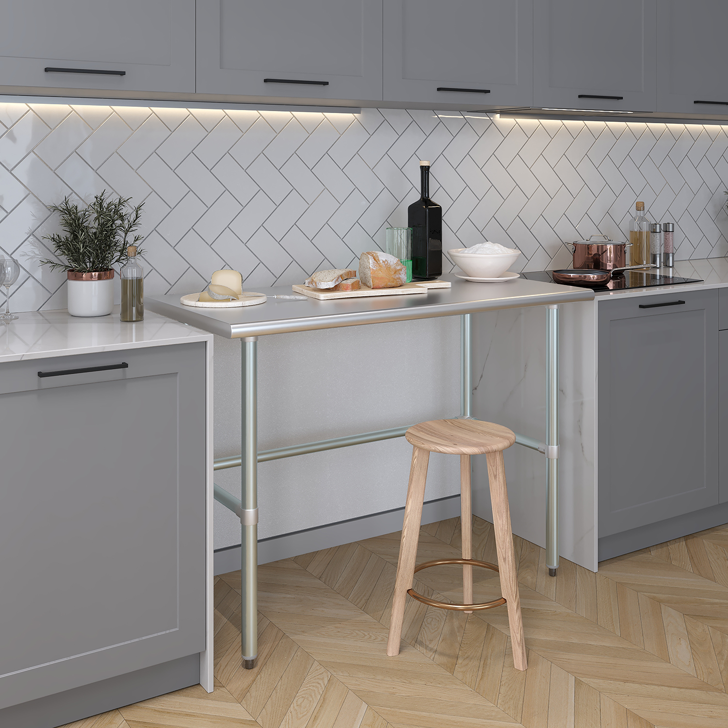 Measuring 24 inches by 48 inches, this work table offers a compact footprint that fits seamlessly into smaller spaces while still providing ample workspace for your projects. The clean, modern design complements any setting, adding a touch of professionalism to your environment. Whether you’re slicing ingredients in a busy kitchen, assembling components in a workshop, or conducting experiments in a lab, this stainless steel work table is a reliable and stylish addition to your workspace.