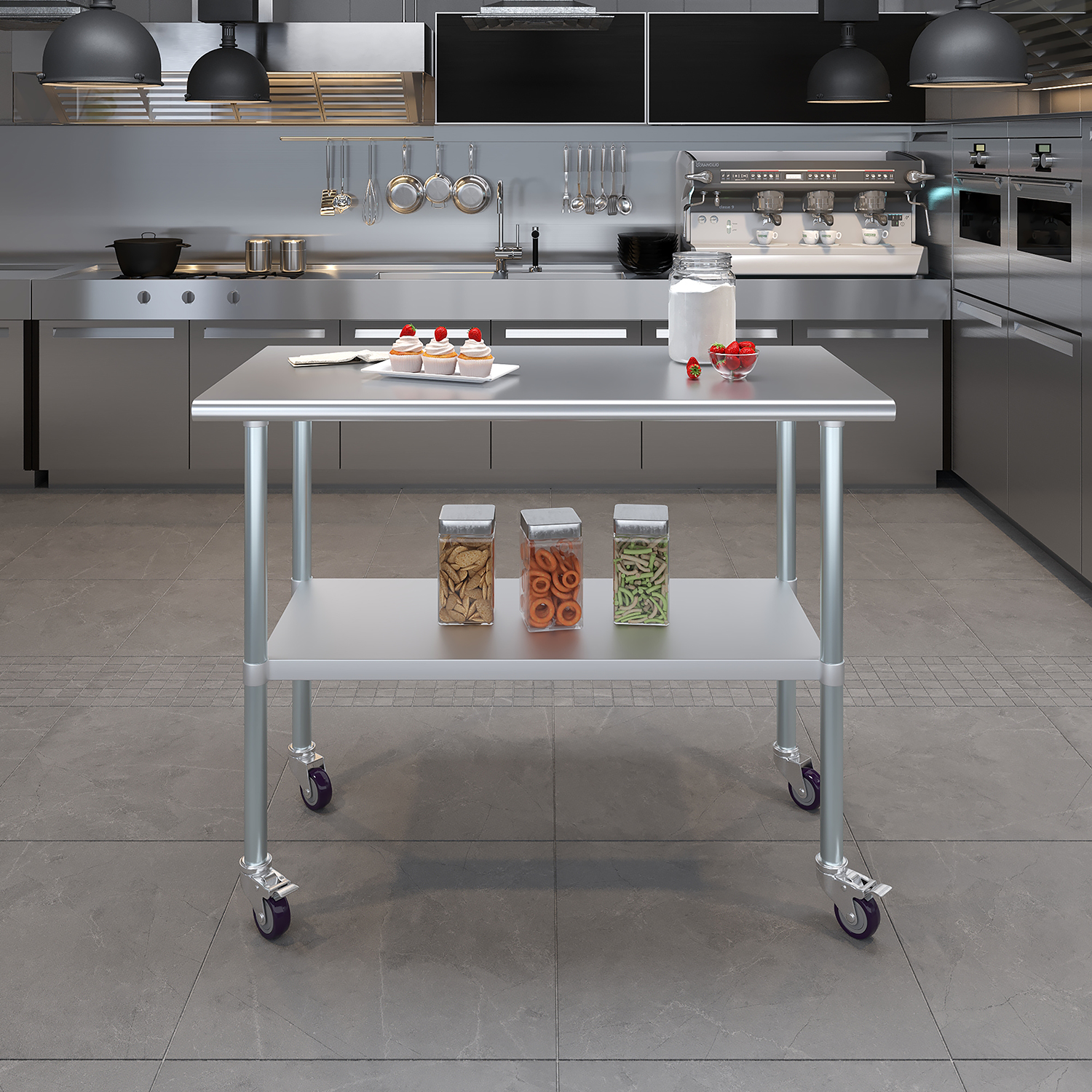 24″ X 48″ Stainless Steel Work Table With Undershelf & Wheels